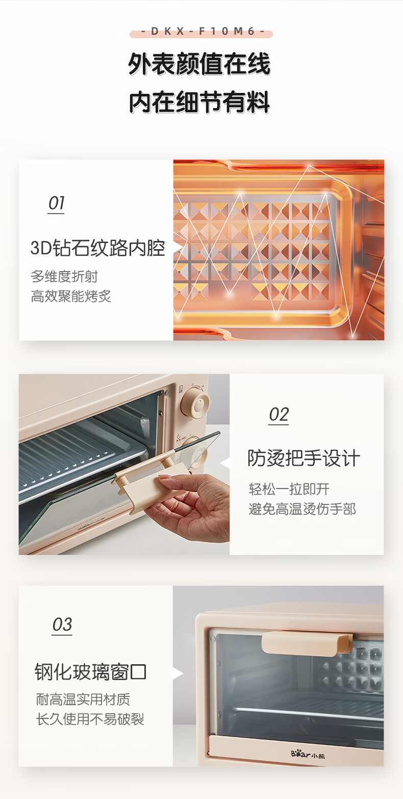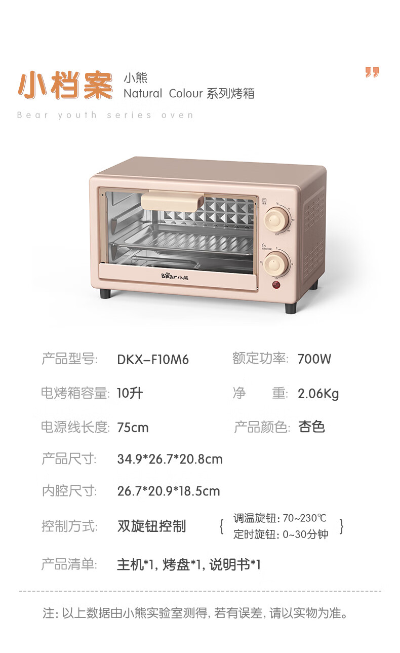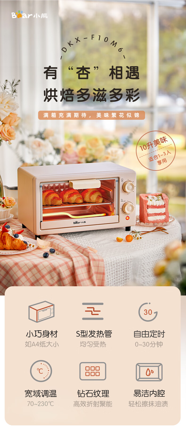 小熊(Bear) 电烤箱迷你烤箱多用10L家用容量独立控温控时烘烤 DKX-F10M6