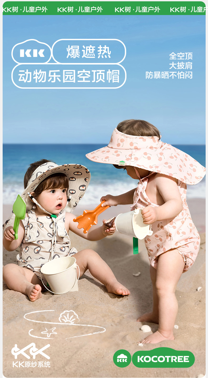 KK树宝宝帽子春秋季婴儿防晒帽男孩遮阳帽女童夏季太阳帽2025新款动物乐园空顶帽