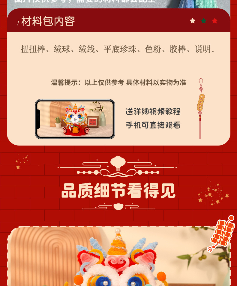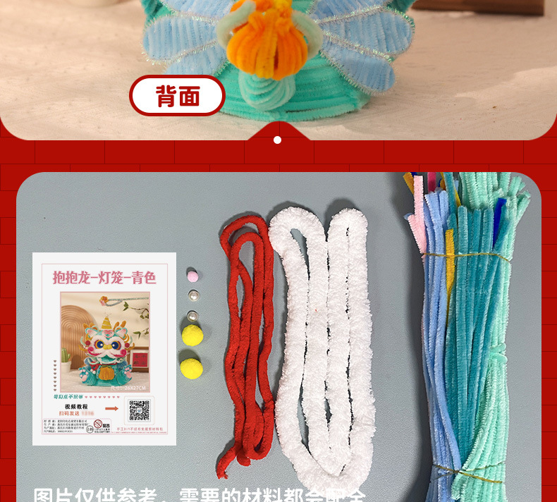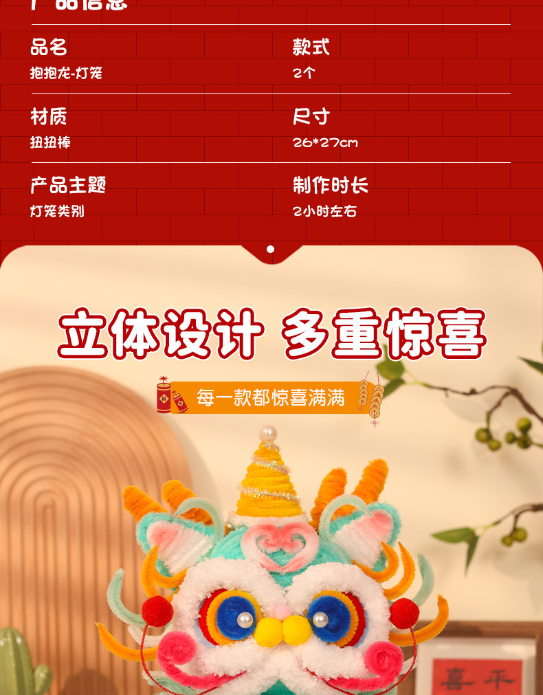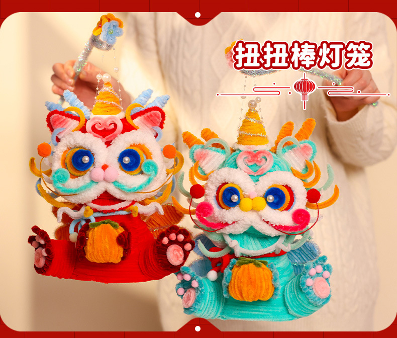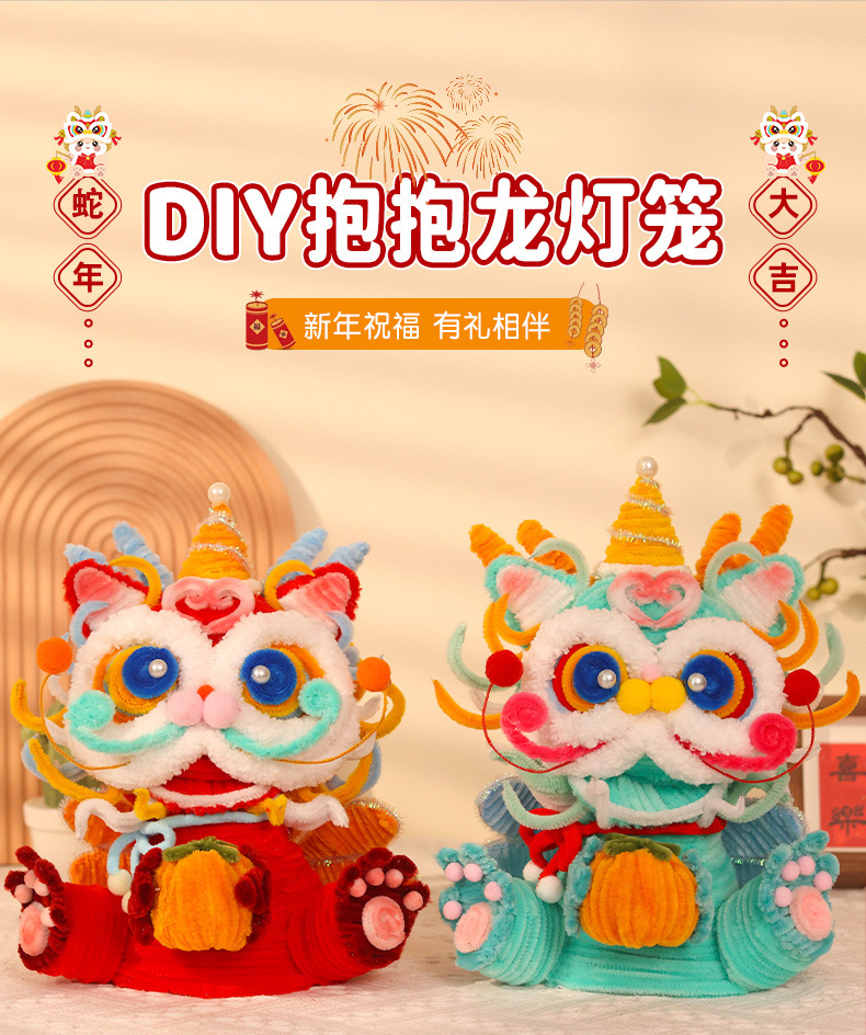 【赠视频教程】立体抱抱龙灯笼 新年灯笼春节儿童手提龙灯蛇年装饰品扭扭棒手工编织diy材料包