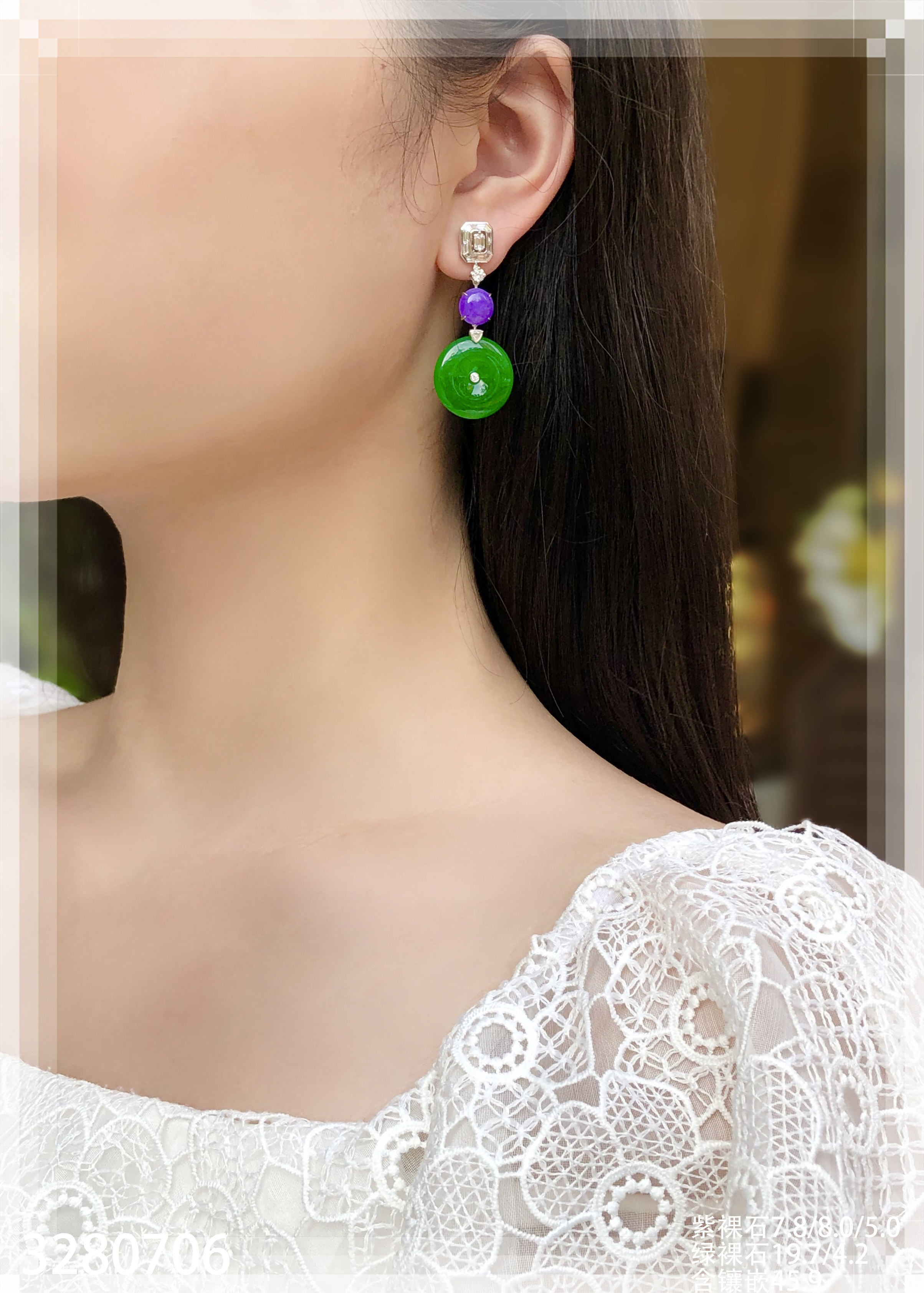 高冰帝王绿平安扣耳坠【3280706】具体价格微信咨询