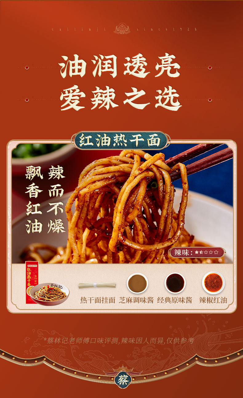 【满99-50 满199-100】蔡林记热干面一人份红油味×3包