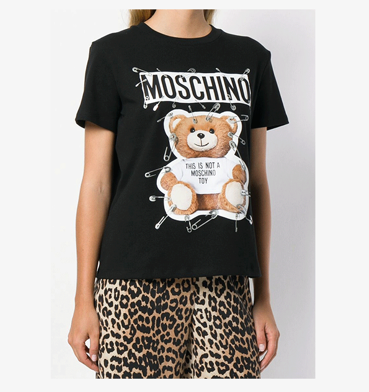 MOSCHINO 莫斯奇诺 女士棉质短袖印花T恤衫 黑色 0712 5526 1555