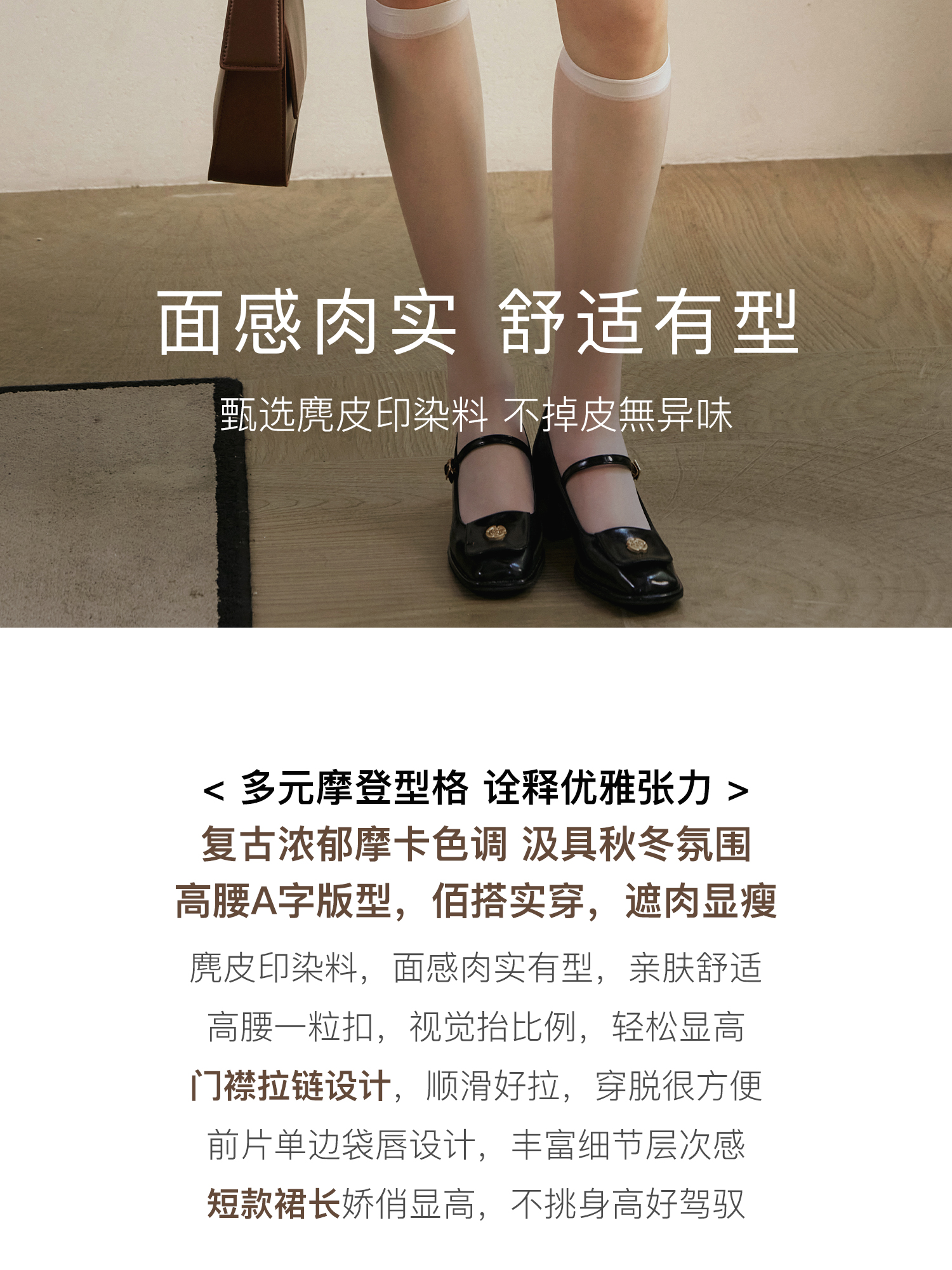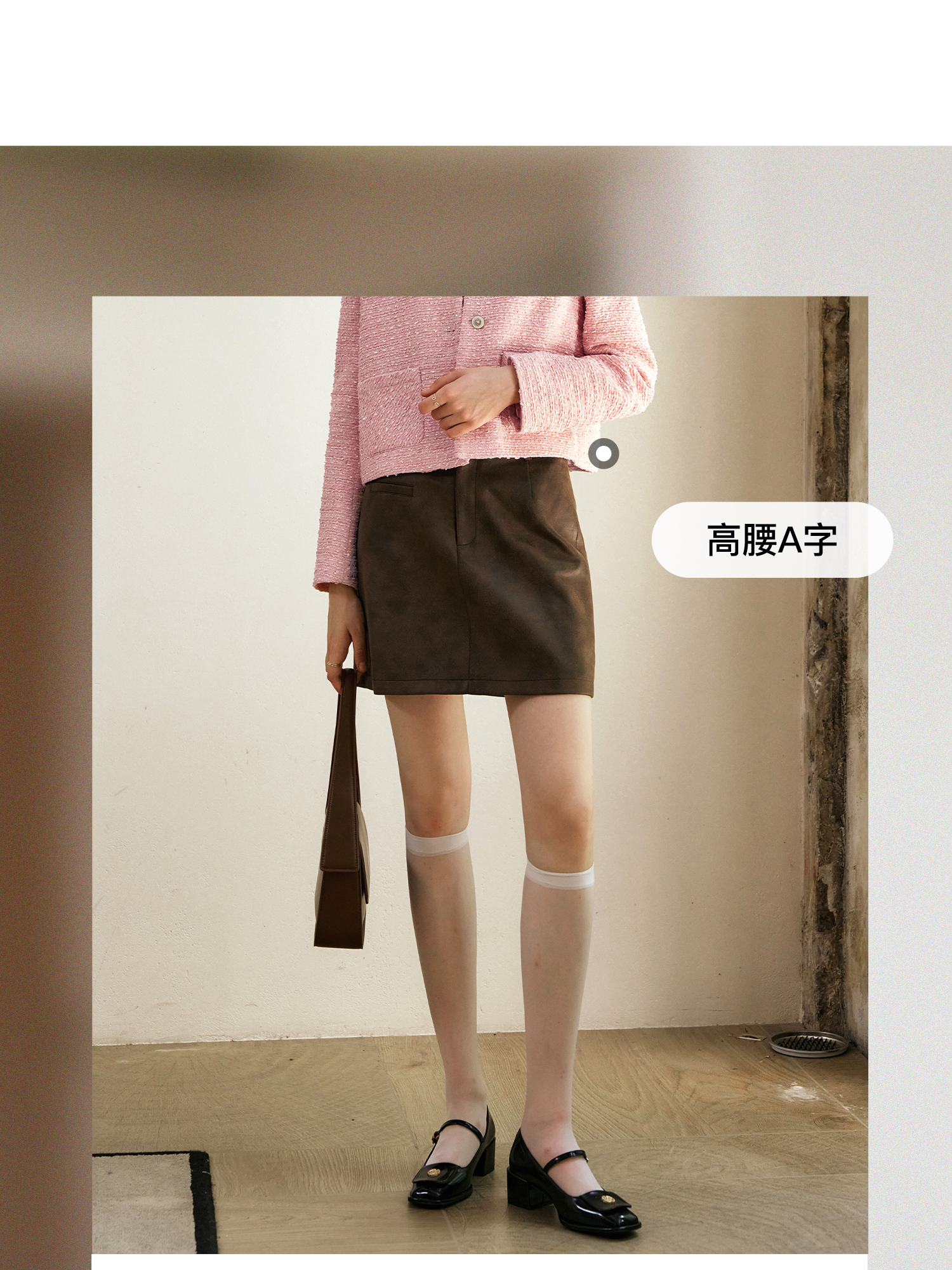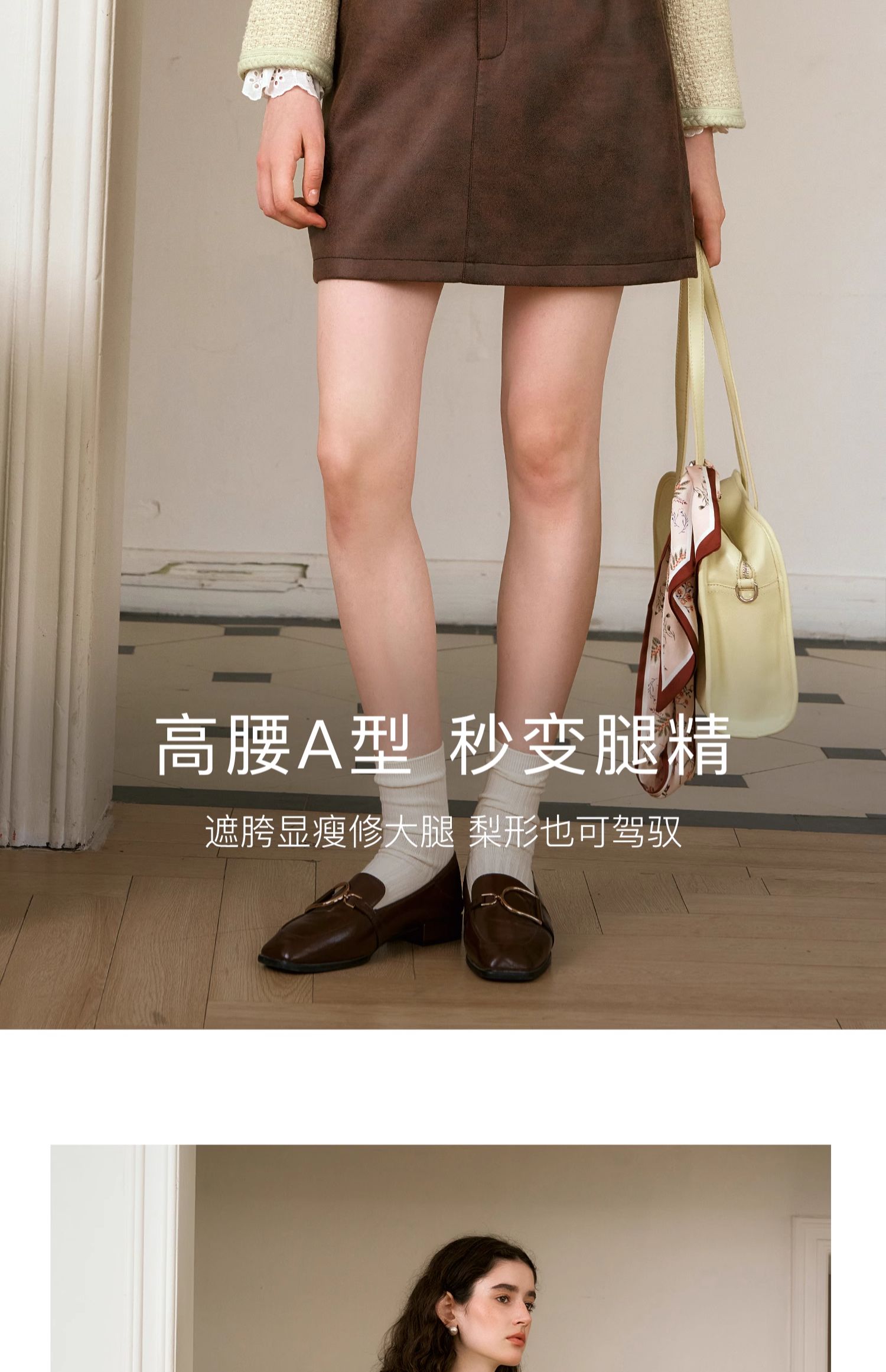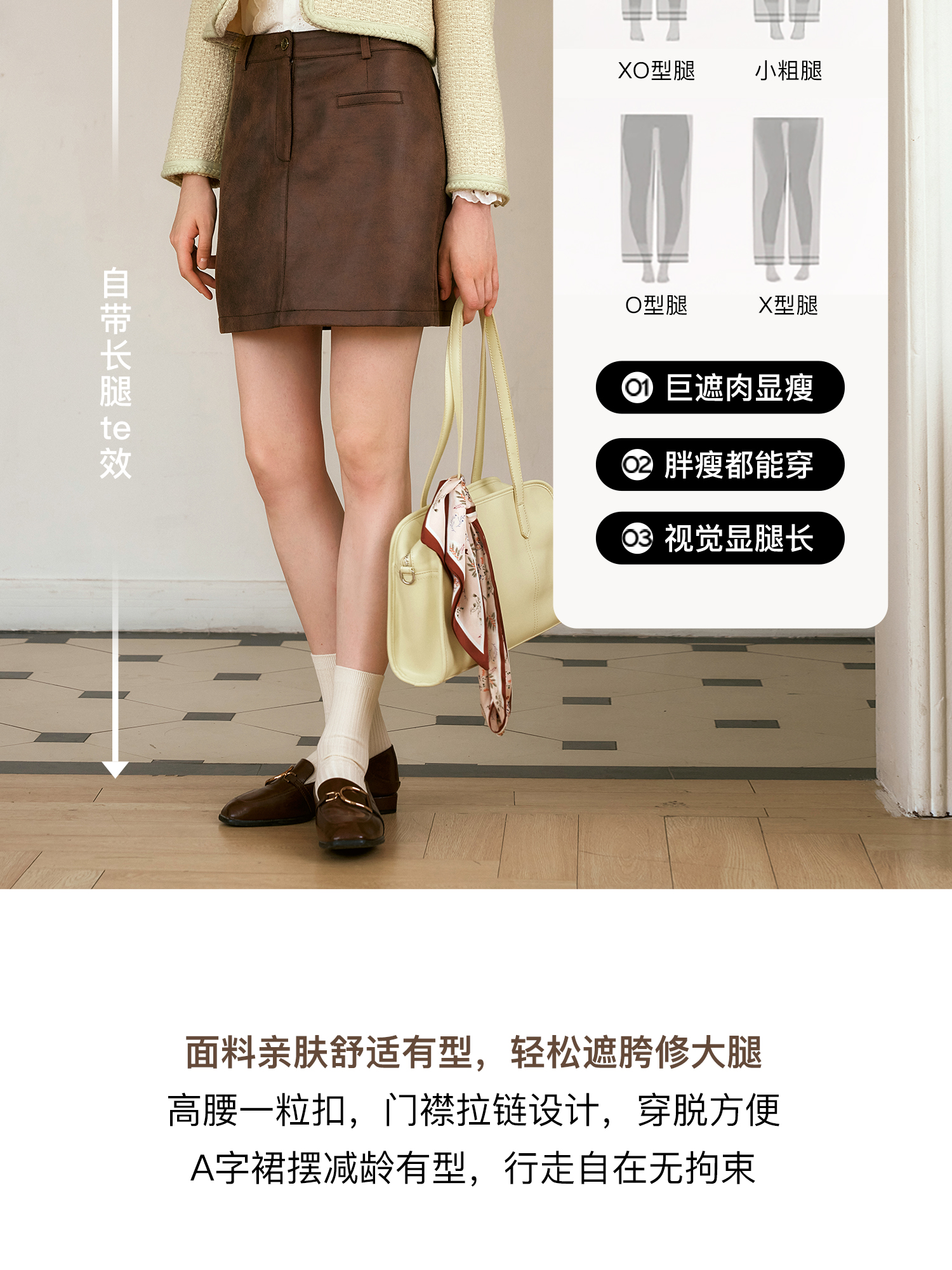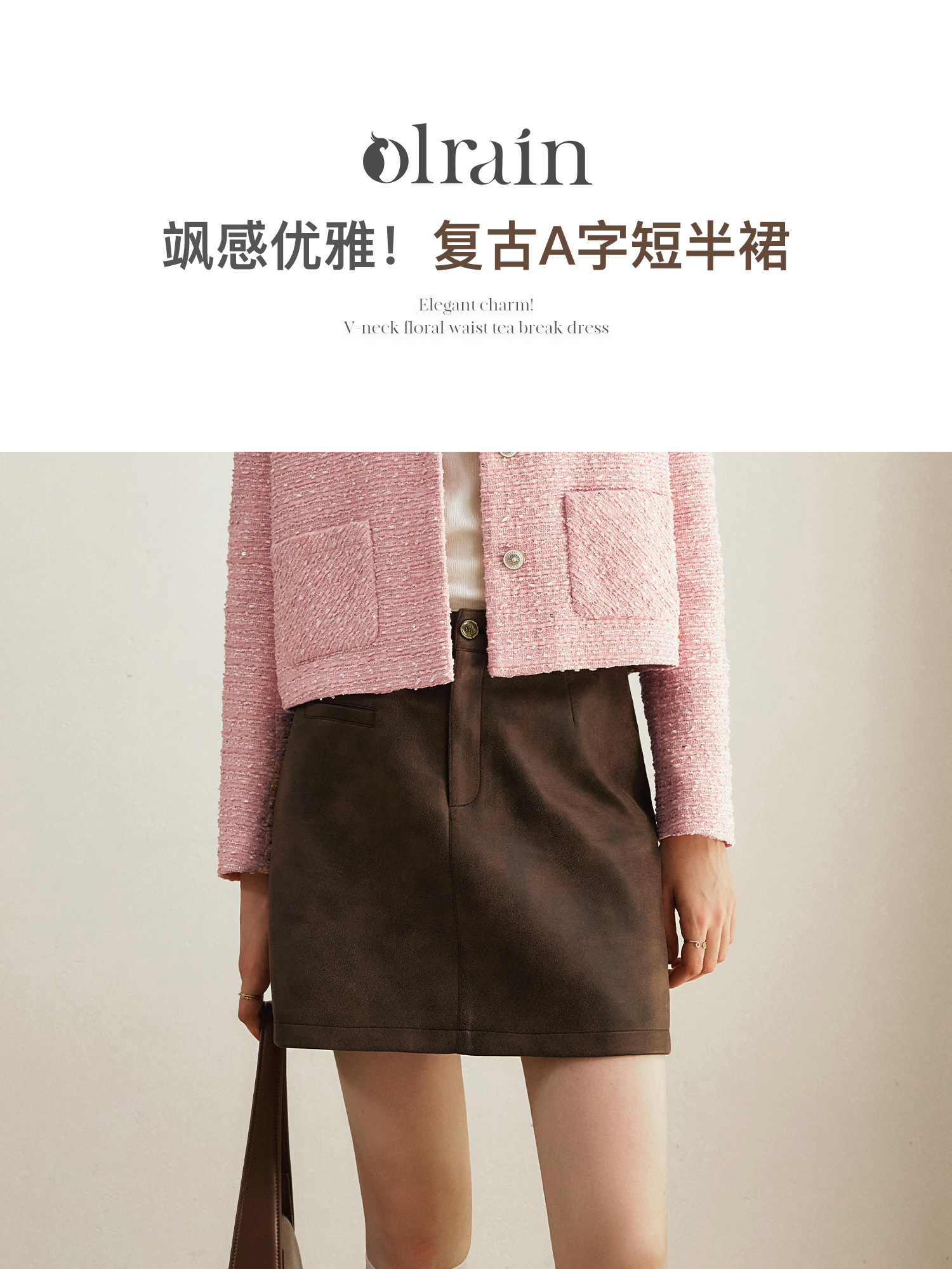 OLrain欧芮儿摩卡色半身裙女秋季2024年新款复古麂皮印染A字短裙