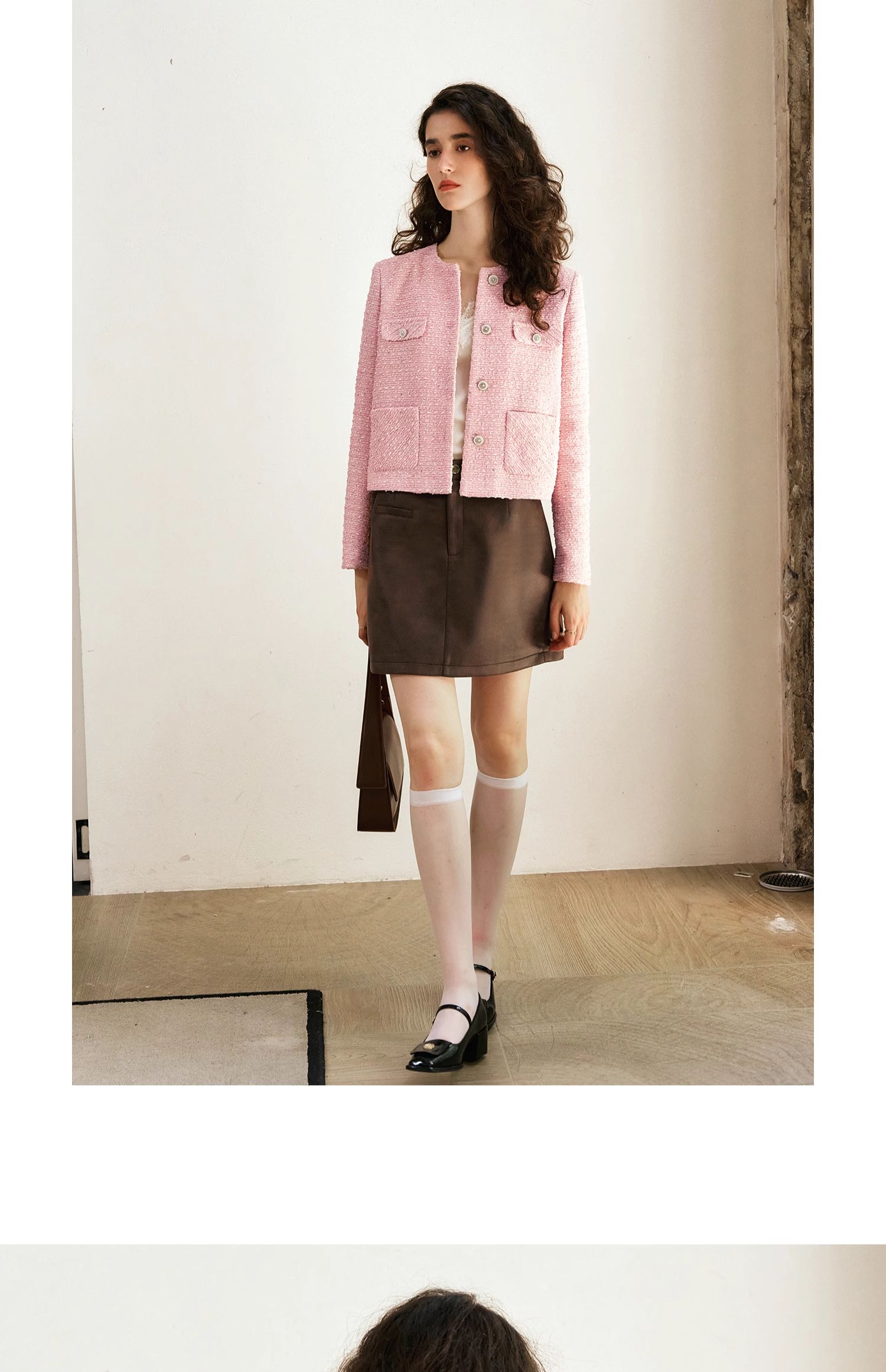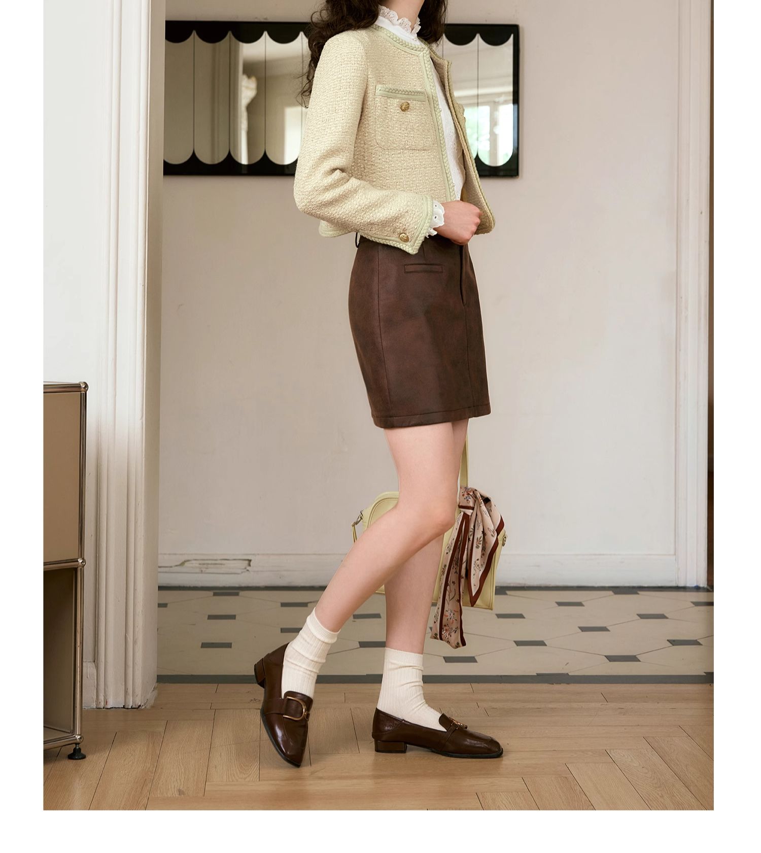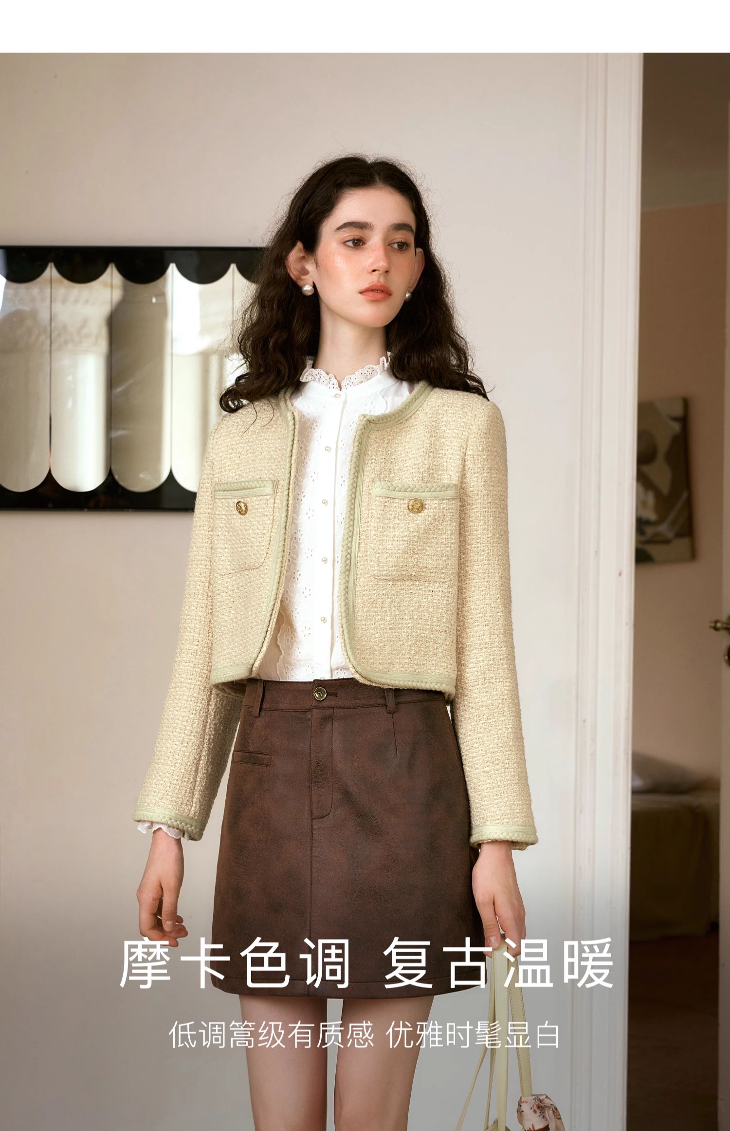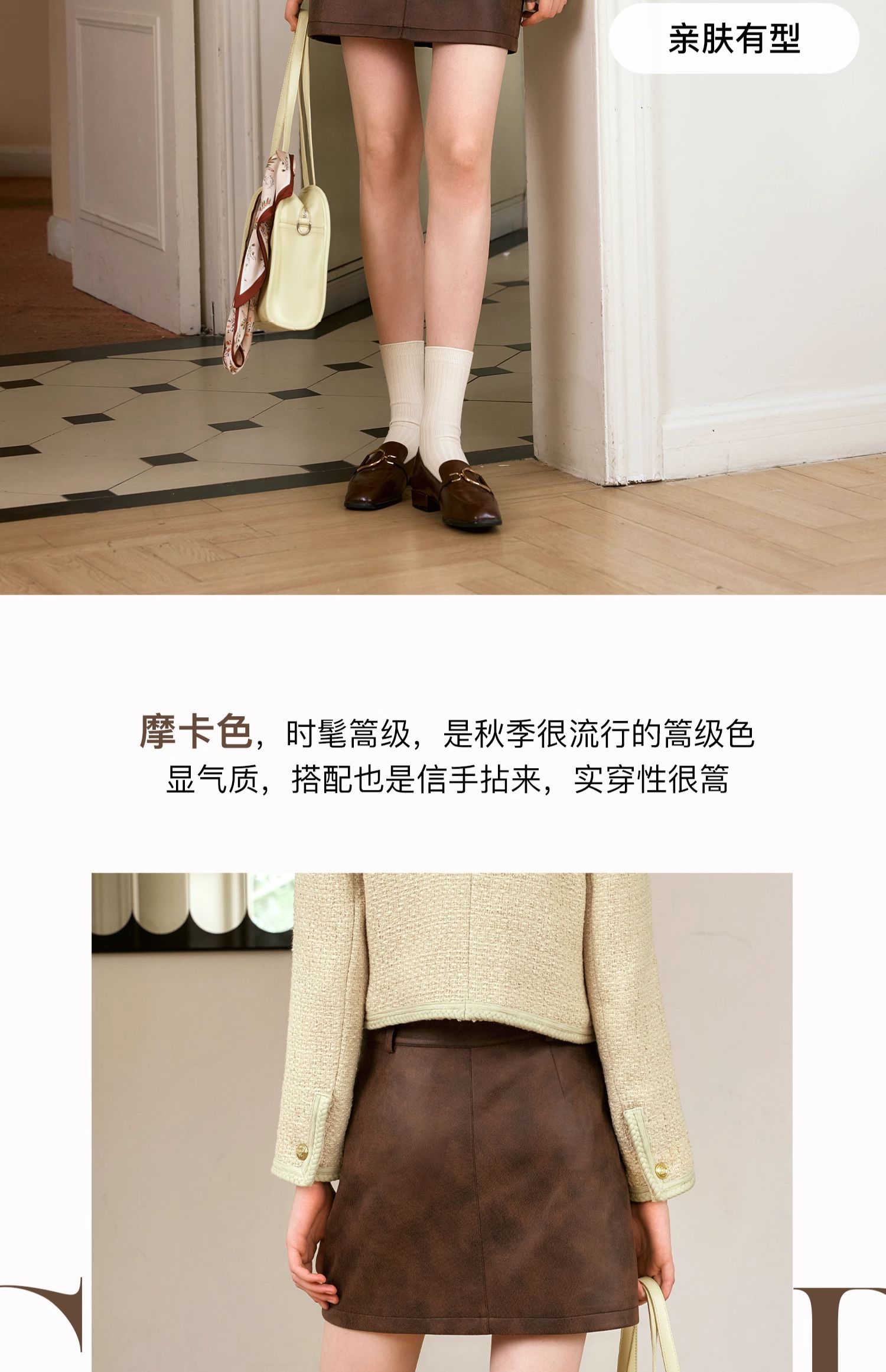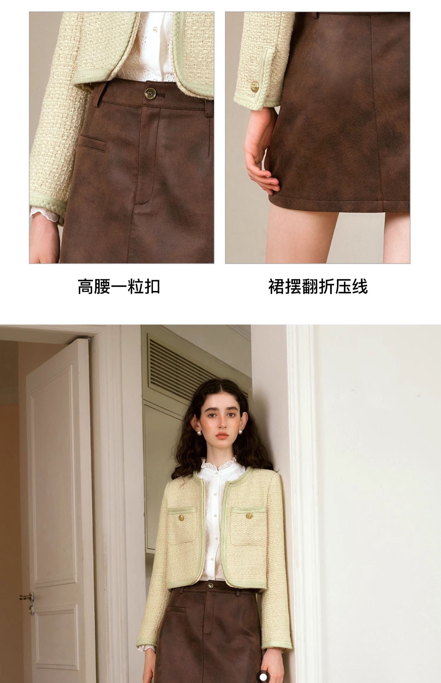 OLrain欧芮儿摩卡色半身裙女秋季2024年新款复古麂皮印染A字短裙