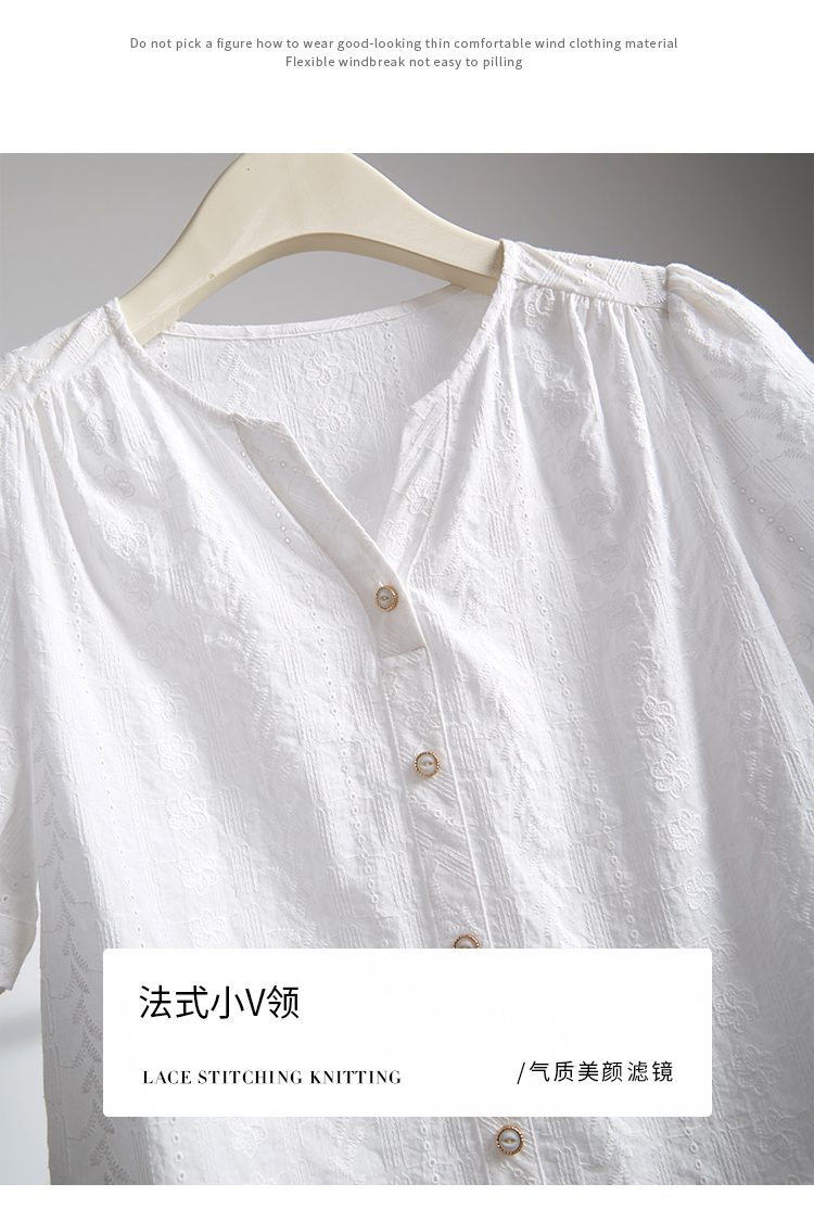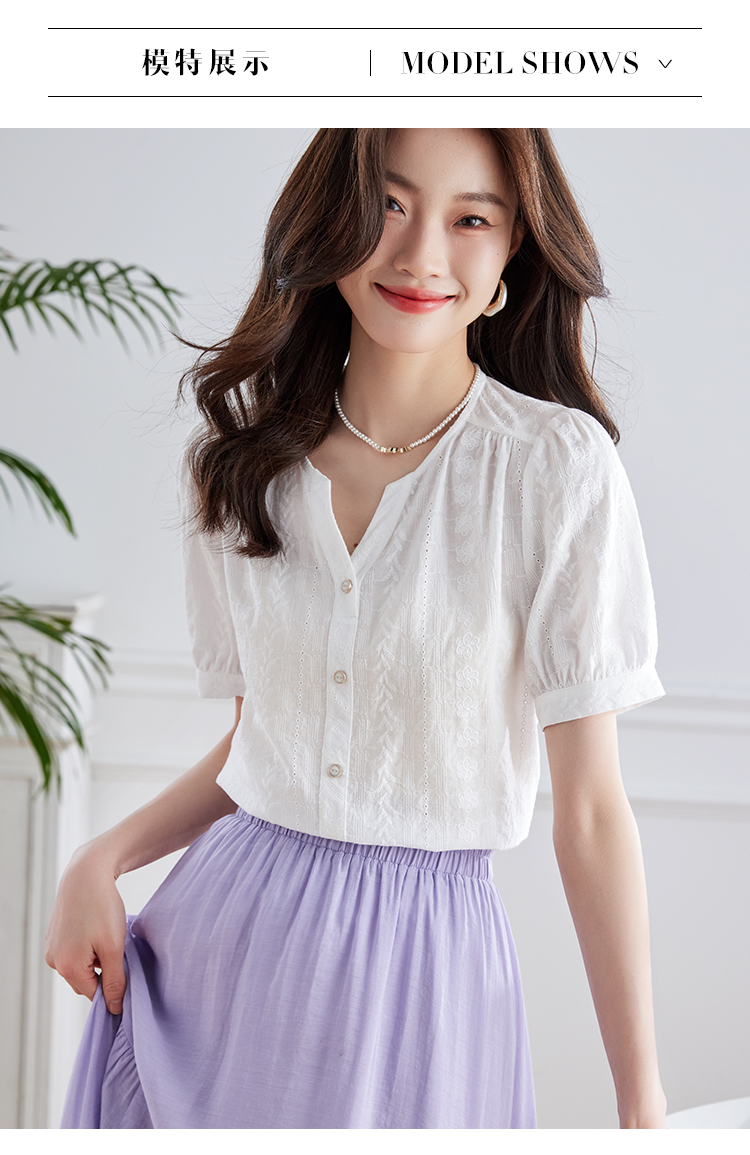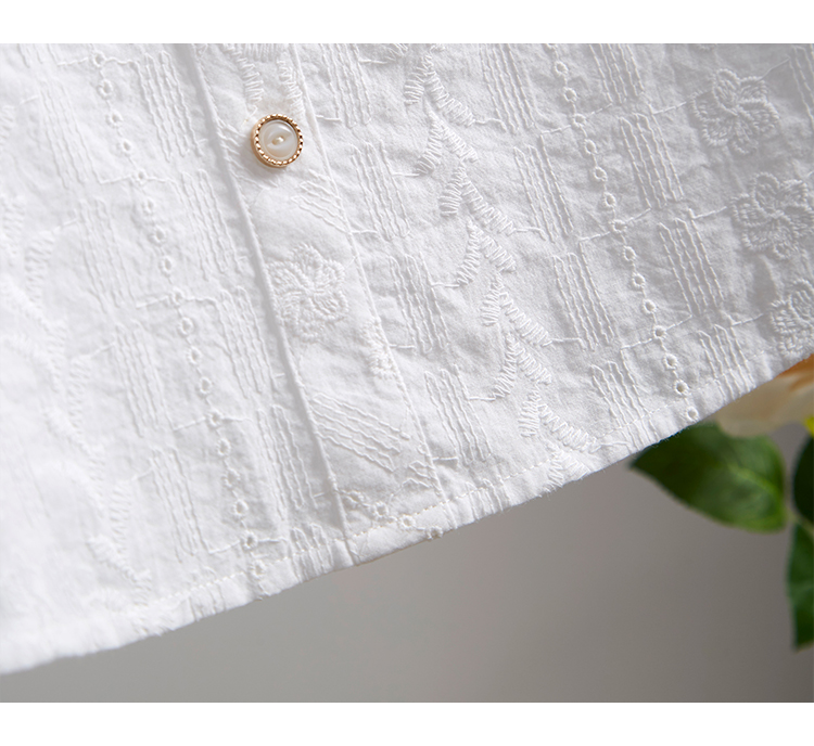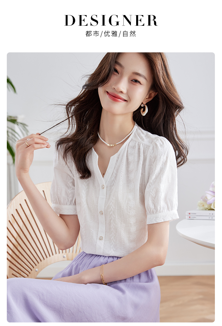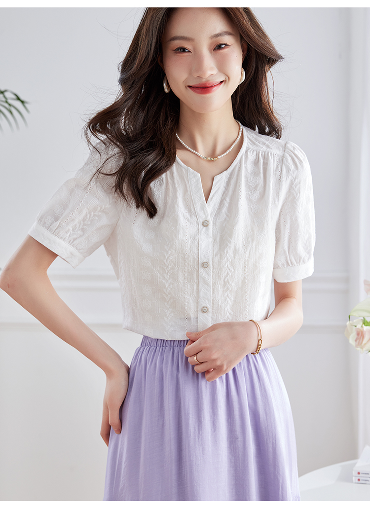 【断码清仓】熙世界法式刺绣纯棉白衬衫女时尚洋气小衫泡泡袖上衣2024夏季新款