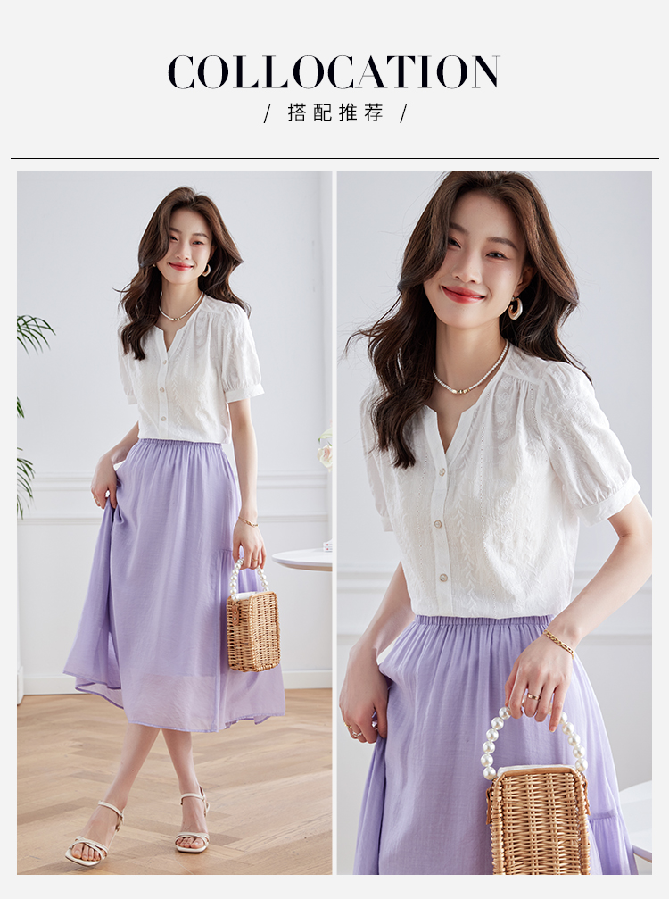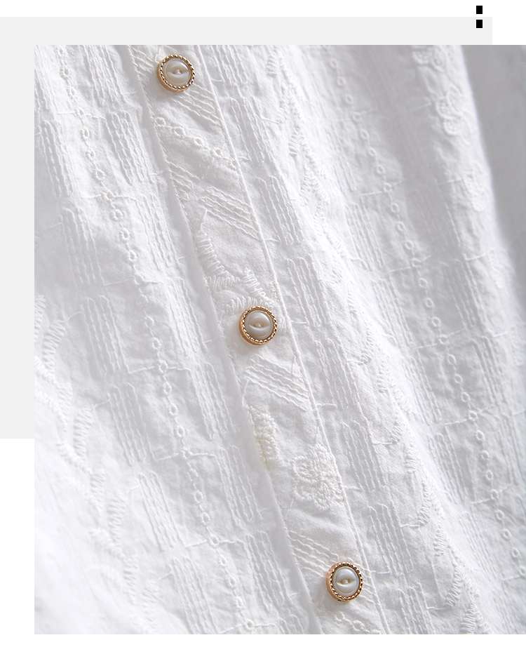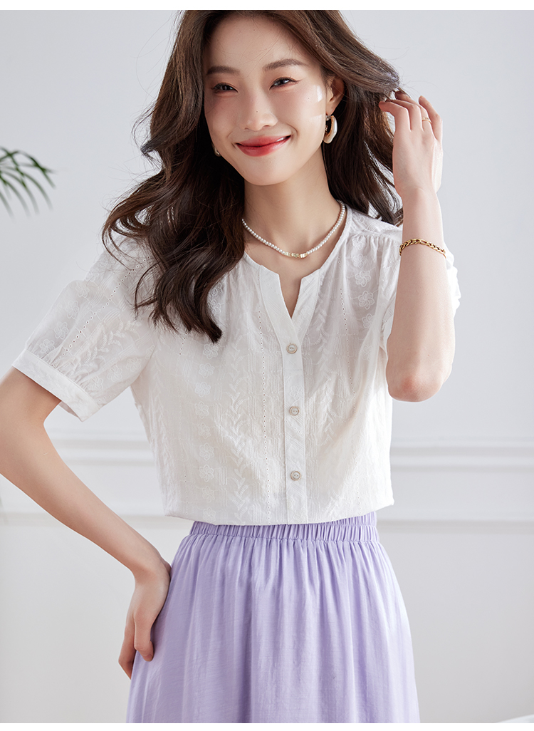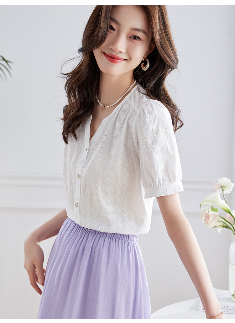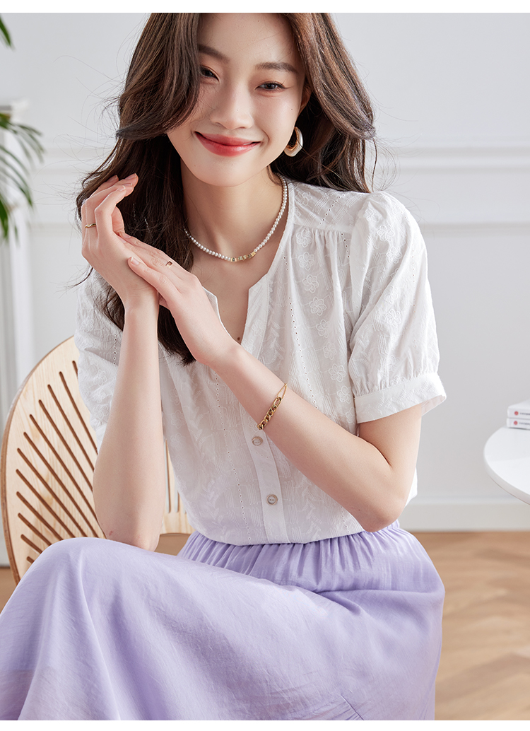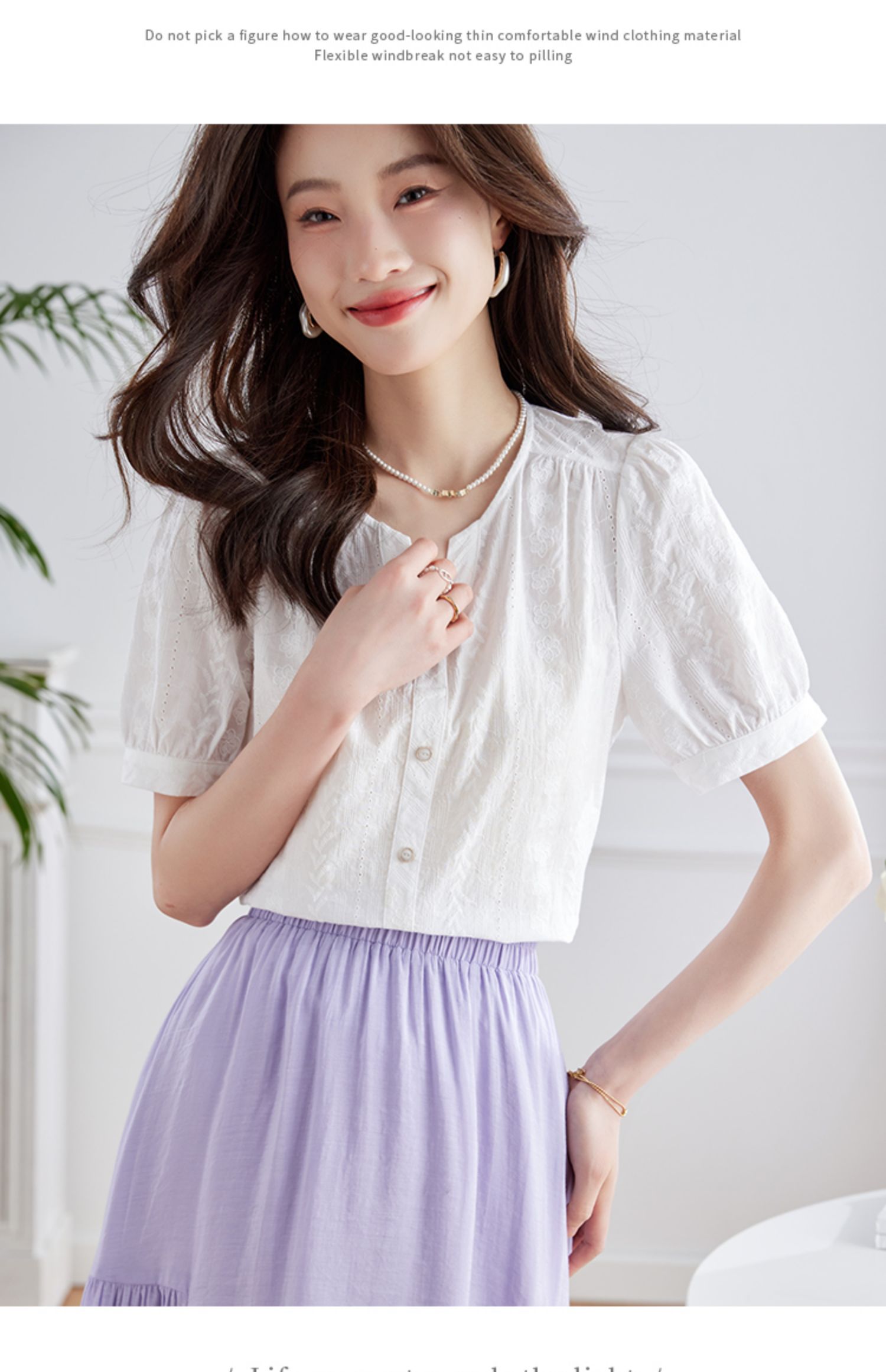 【断码清仓】熙世界法式刺绣纯棉白衬衫女时尚洋气小衫泡泡袖上衣2024夏季新款