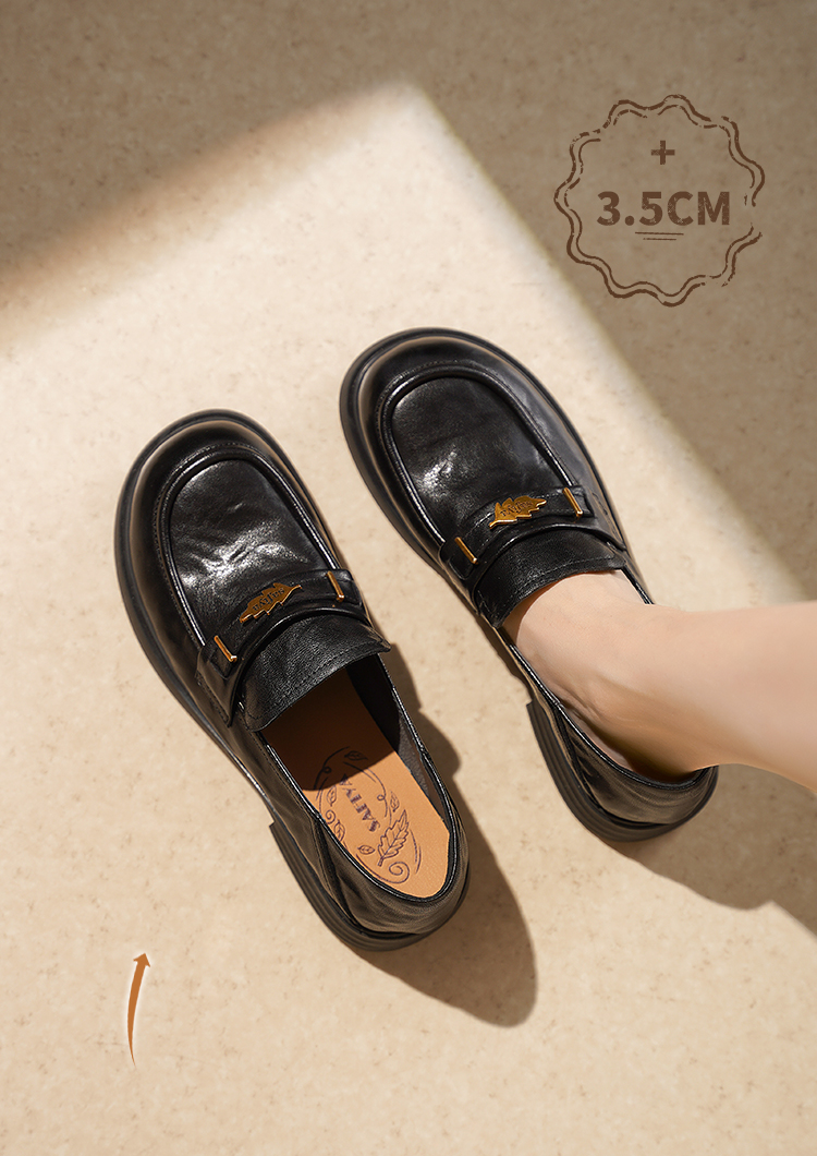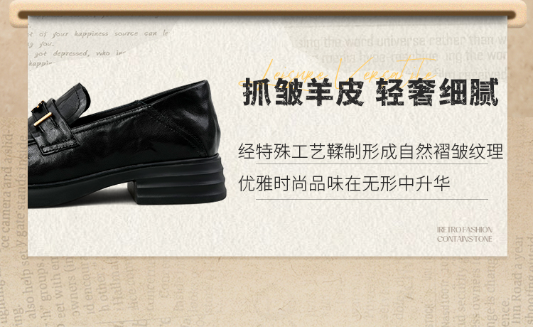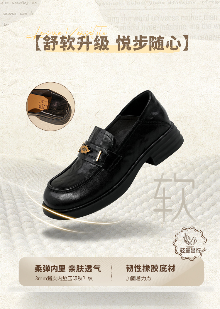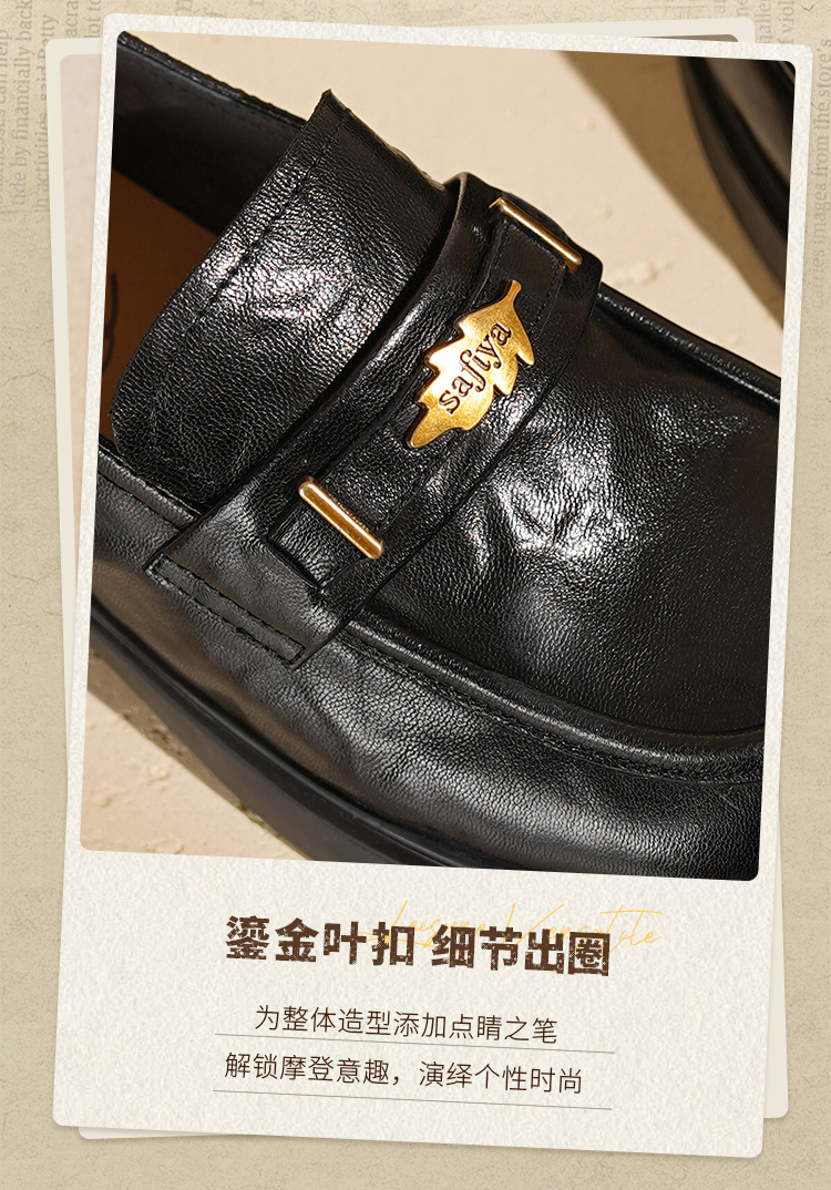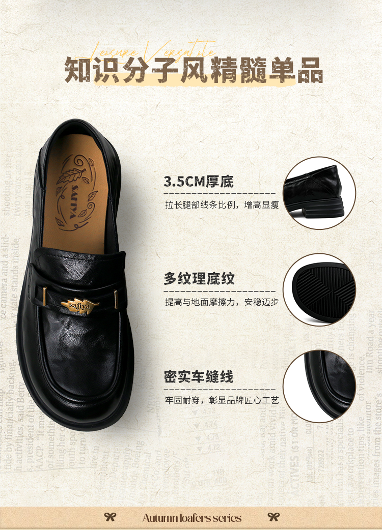 Safiya/索菲娅2025羊皮软底不累脚英伦复古百搭粗跟深口乐福鞋SFD3112141