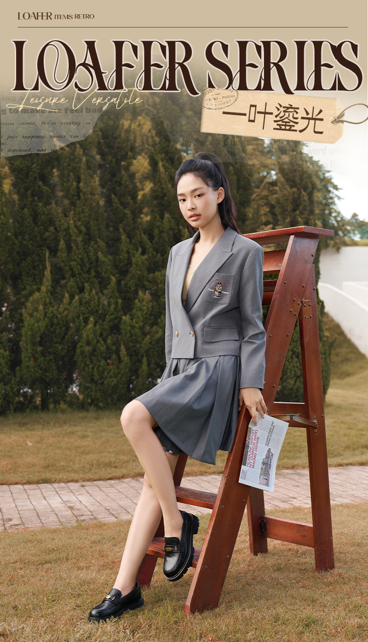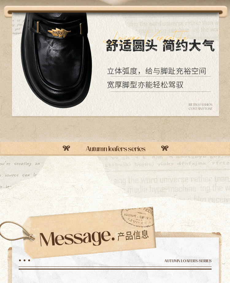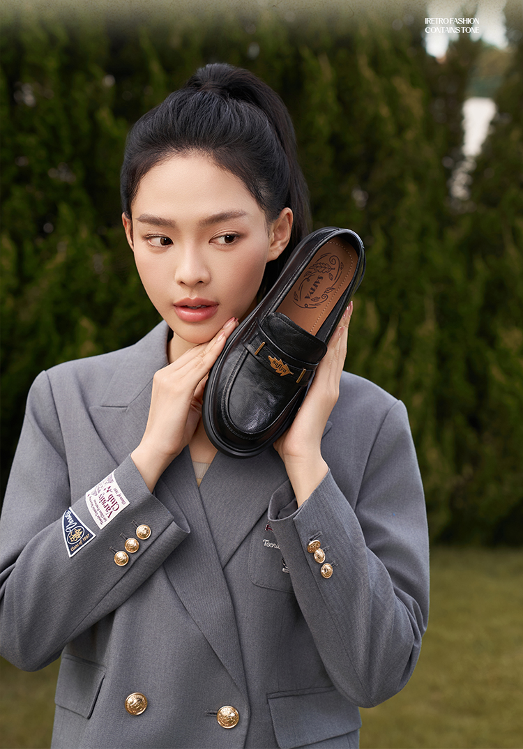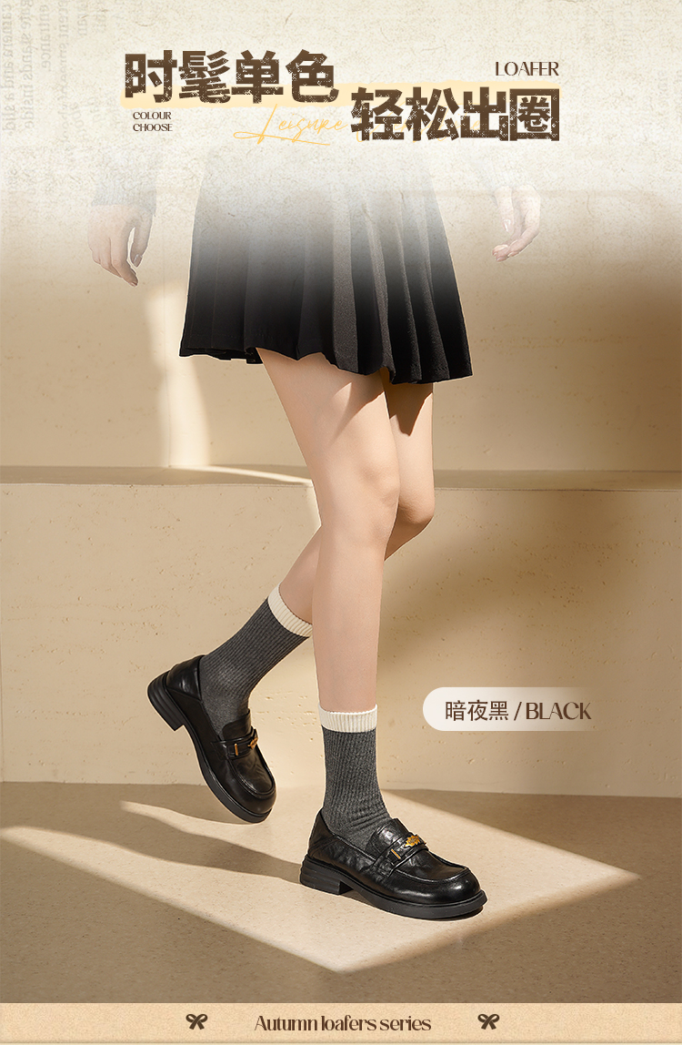Safiya/索菲娅2025羊皮软底不累脚英伦复古百搭粗跟深口乐福鞋SFD3112141
