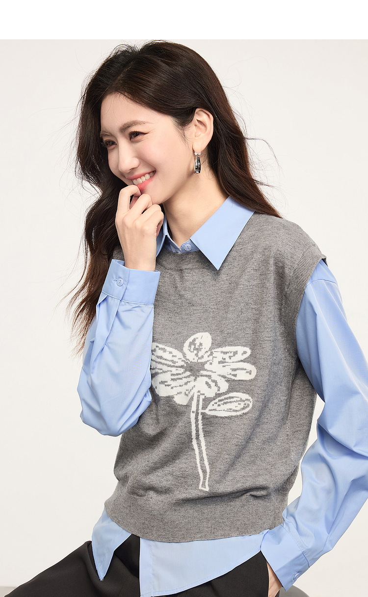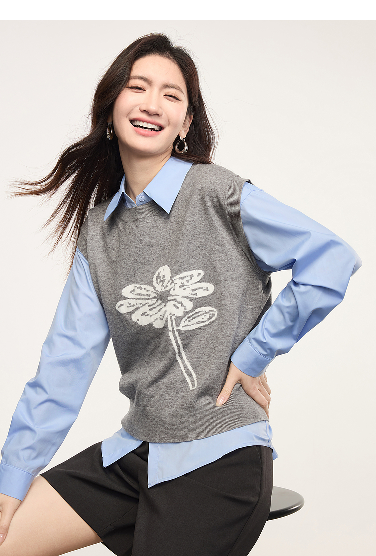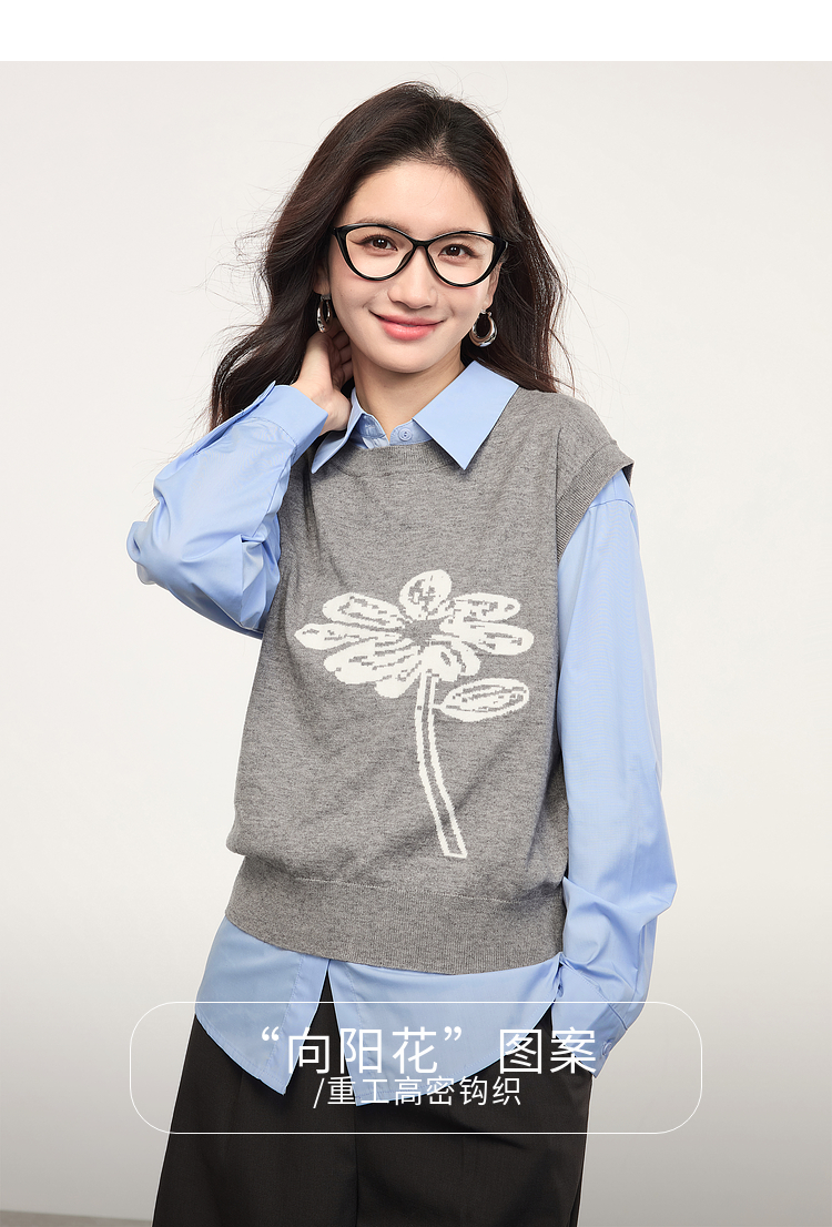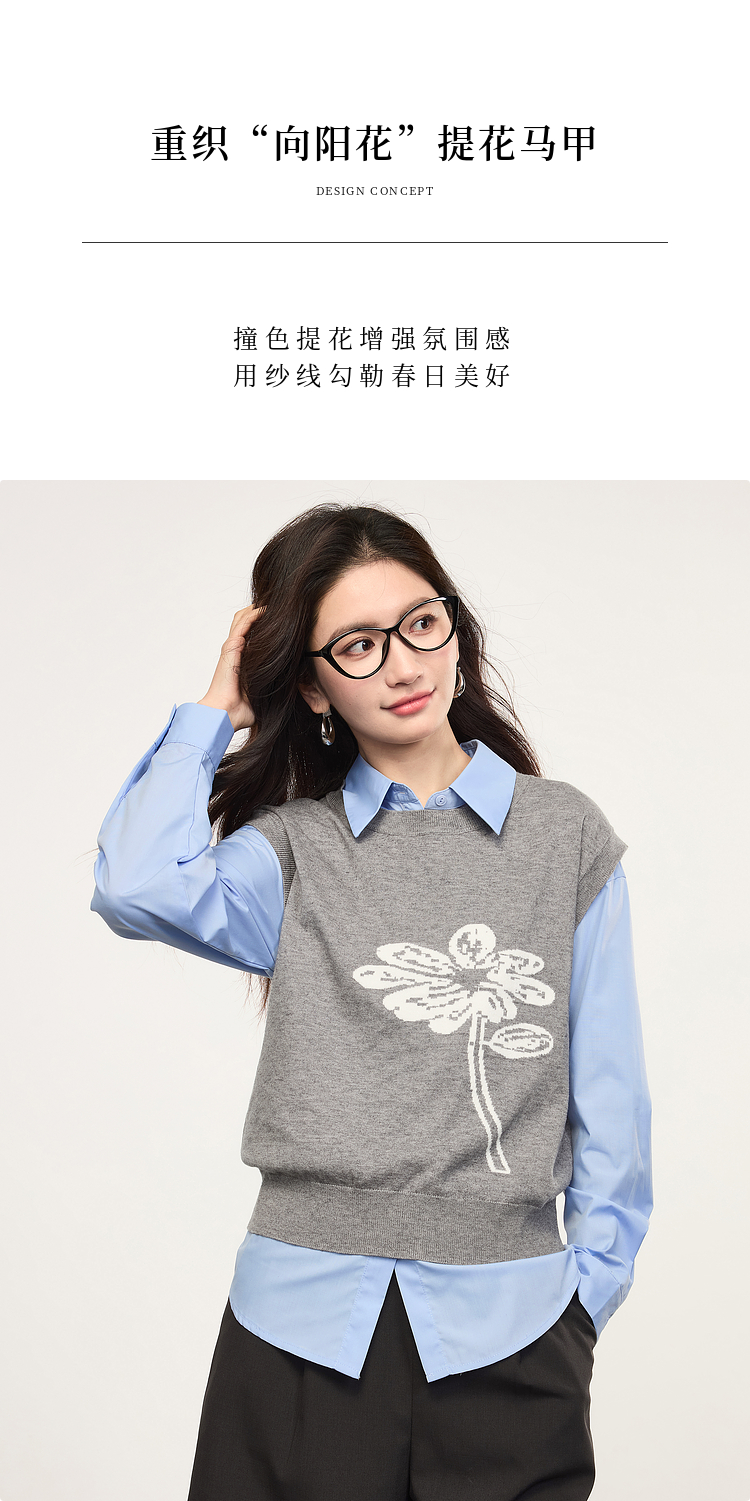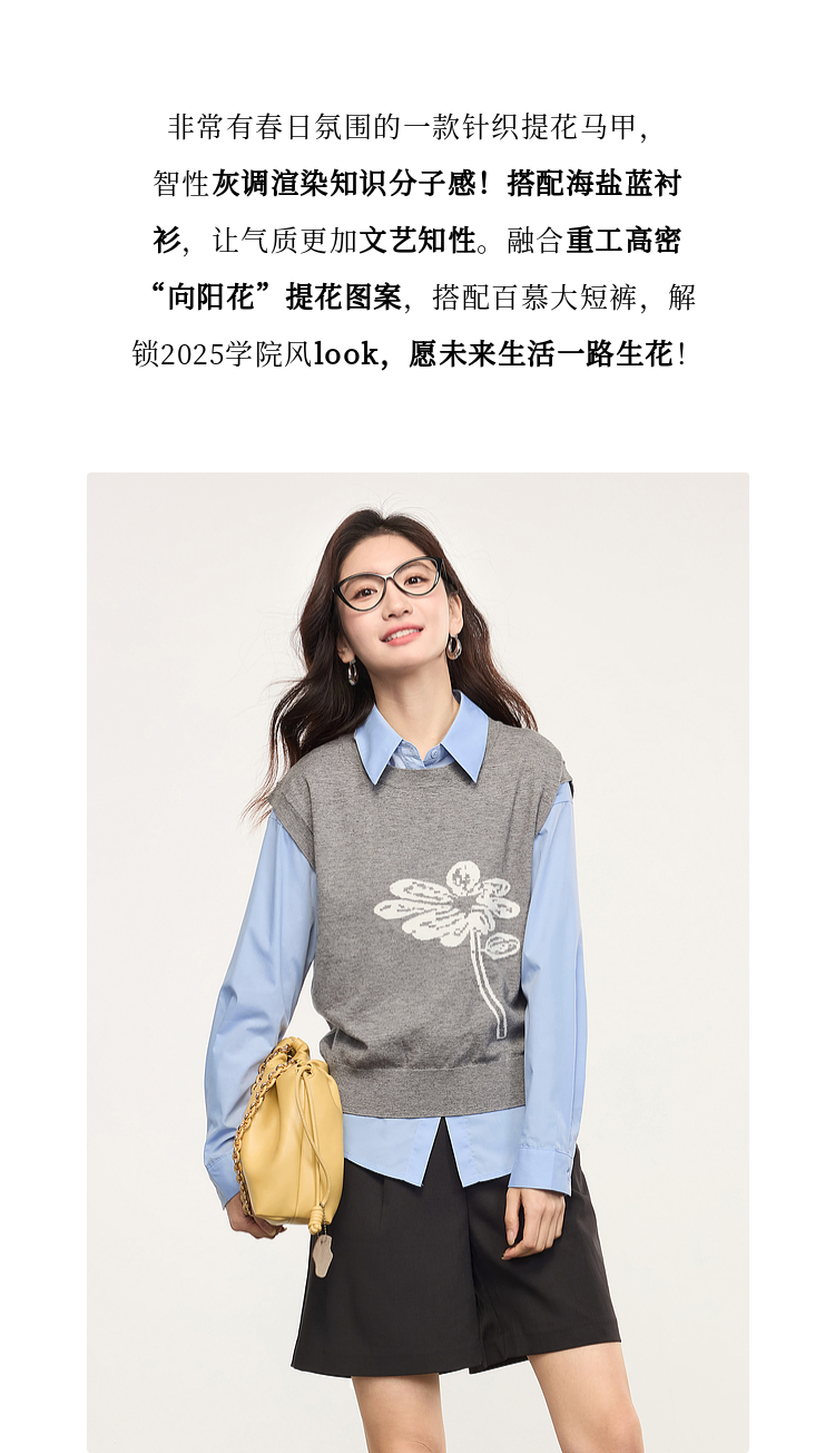 【年货节】熙世界向阳花提花针织马甲背心女春季2025年新款叠穿无袖坎肩上衣