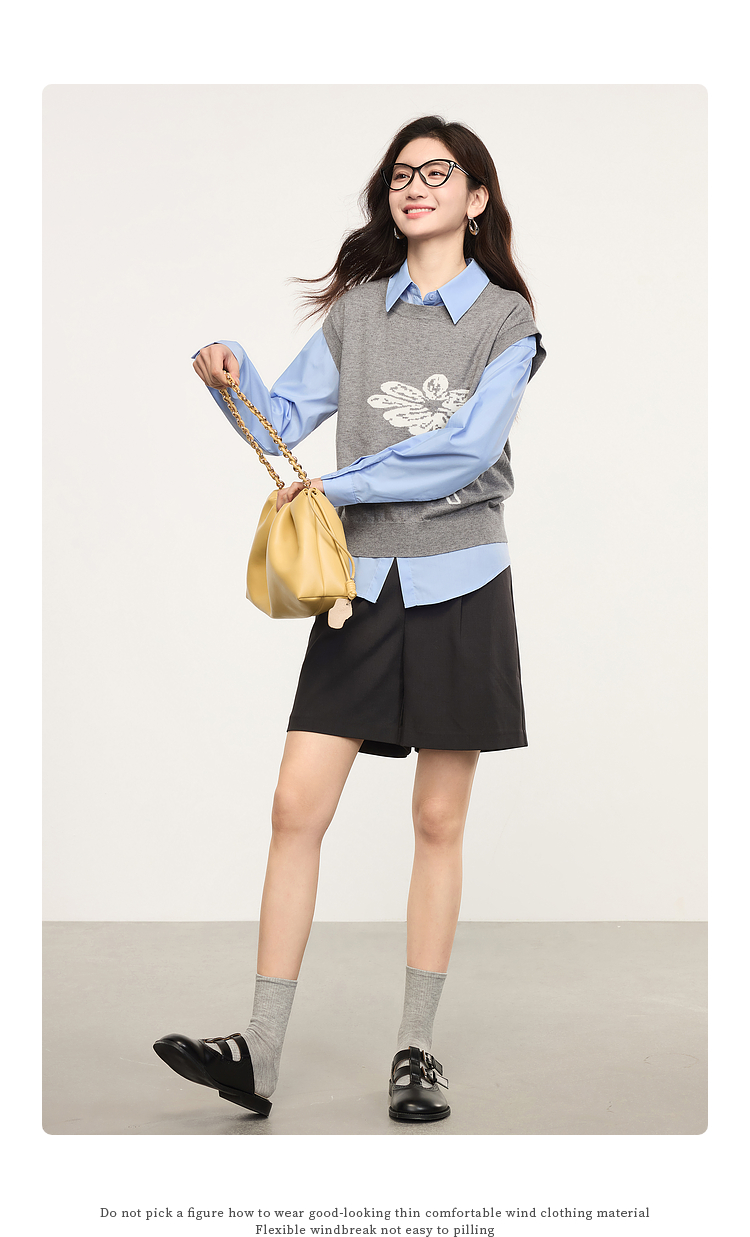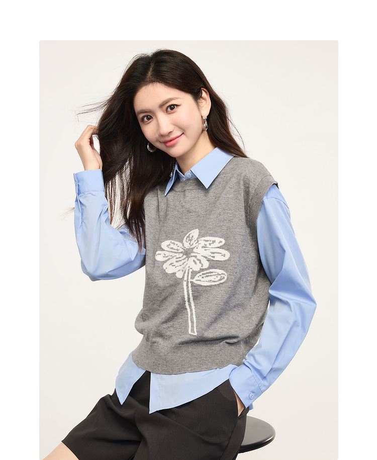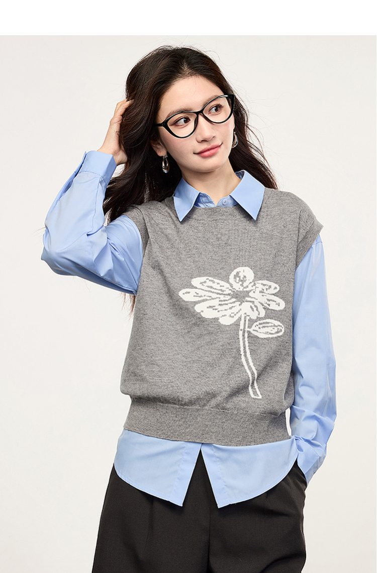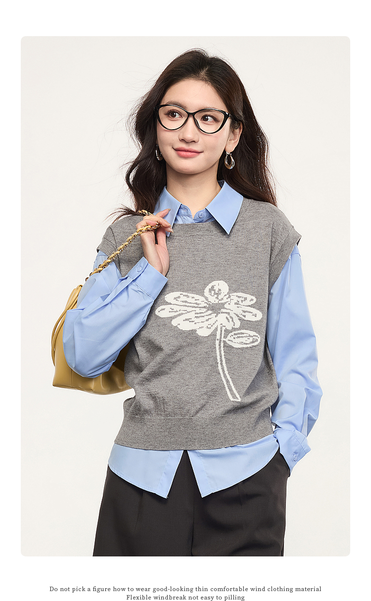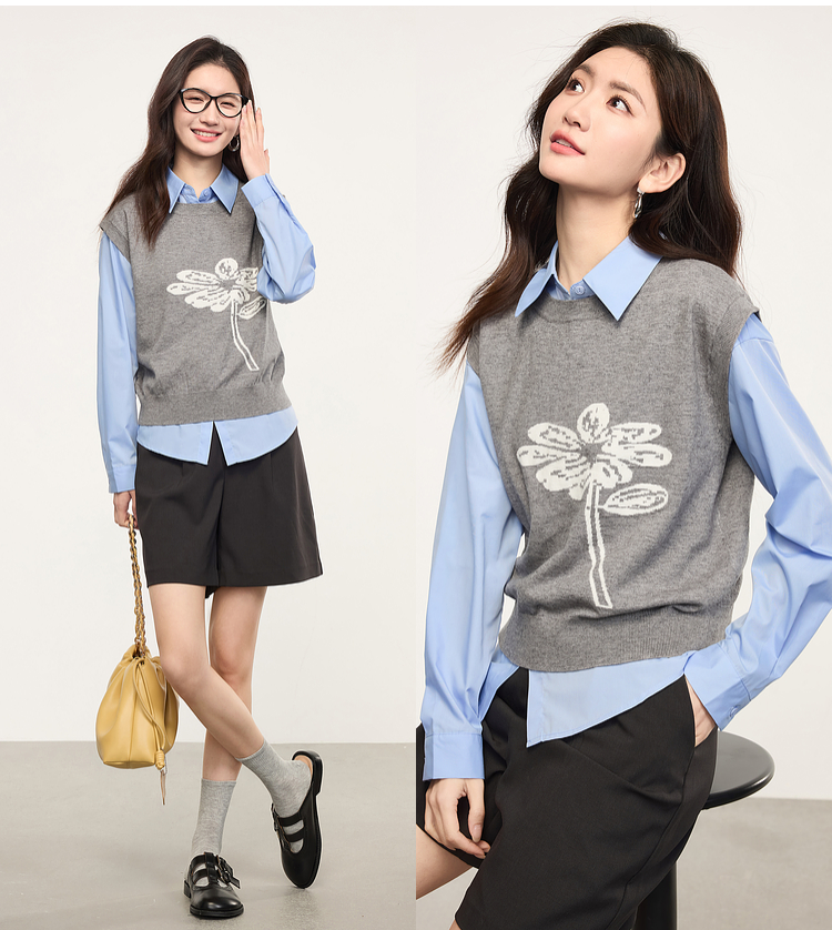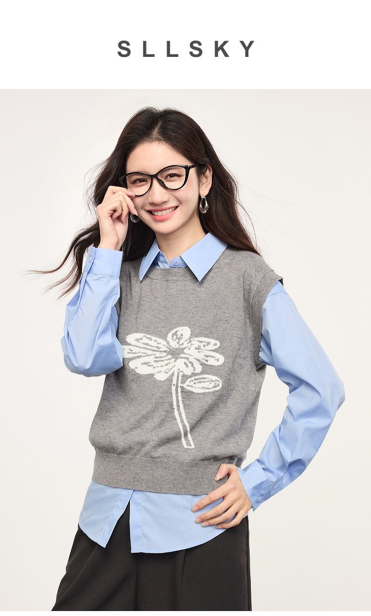 【年货节】熙世界向阳花提花针织马甲背心女春季2025年新款叠穿无袖坎肩上衣