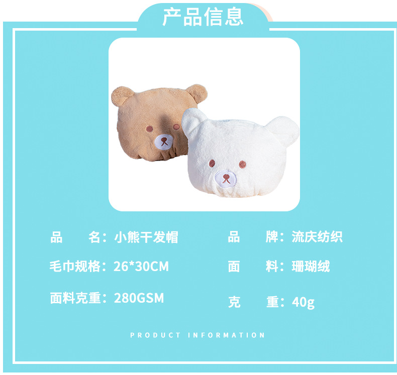 「熊熊浴帽!数色可选」珊瑚绒小熊干发帽女吸水毛巾可爱浴帽儿童干发帽子擦头包头巾居家布艺