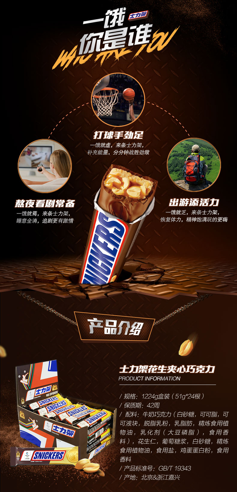 士力架牛奶花生夹心巧克力51g/条 新老包装随机发货 送礼盒装休闲食品家庭喜糖果 补充能量 整盒分享更尽兴