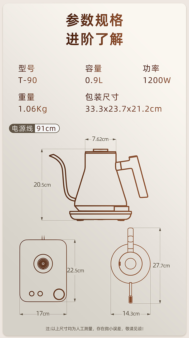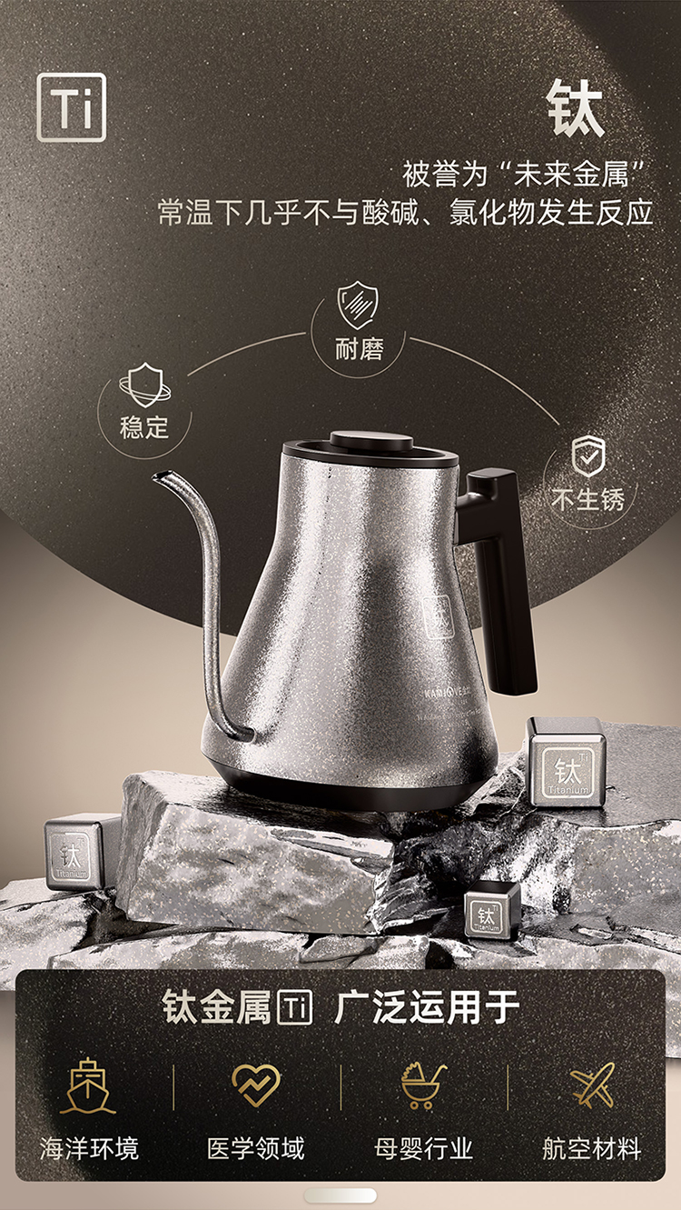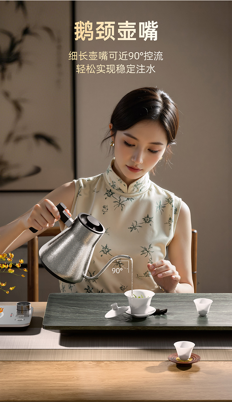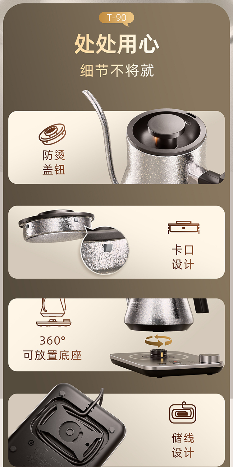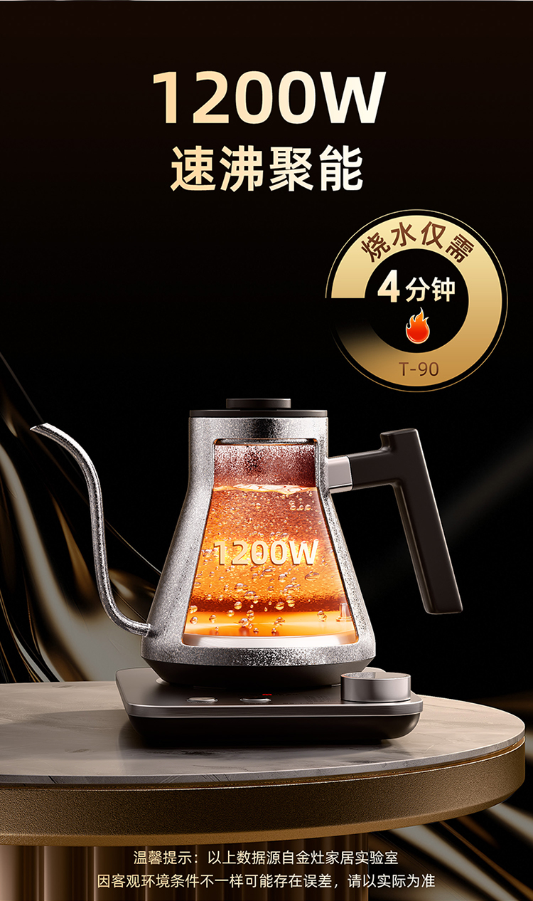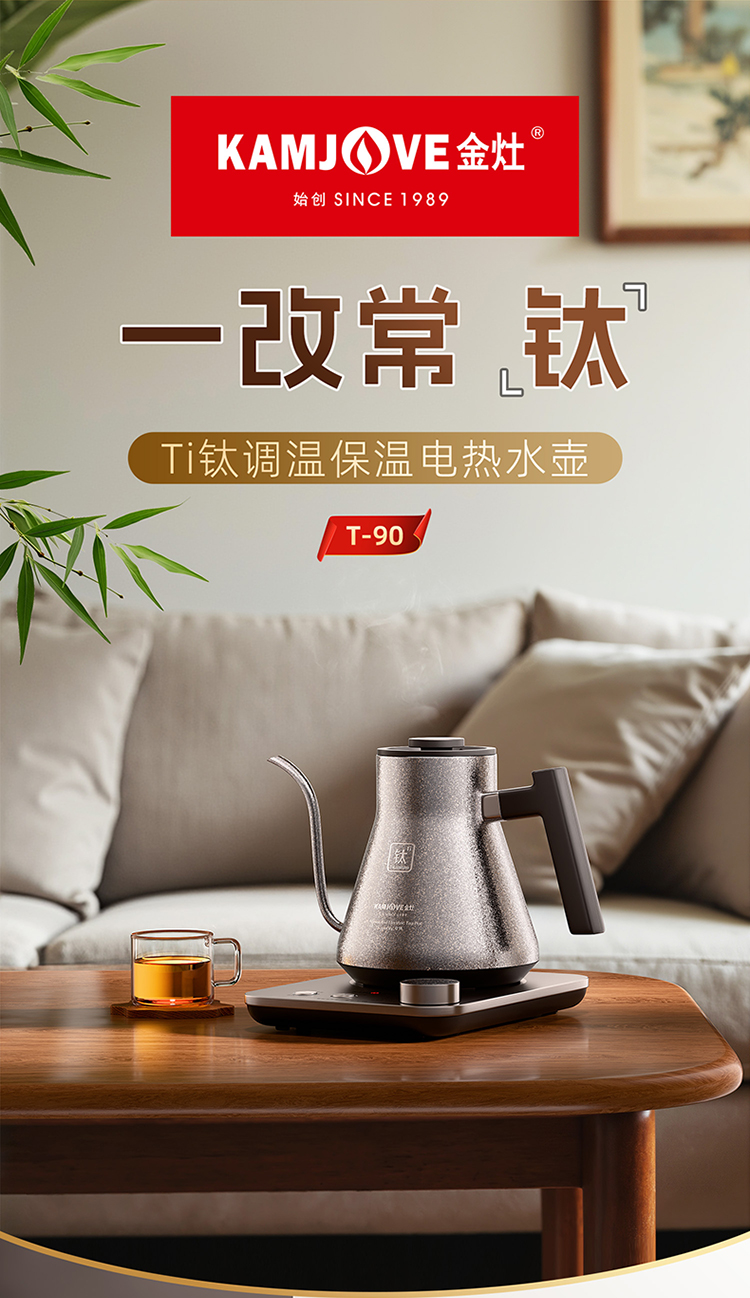 金灶T-90钛电热水壶家用智能烧水壶保温旋钮式水壶泡茶专用煮水壶