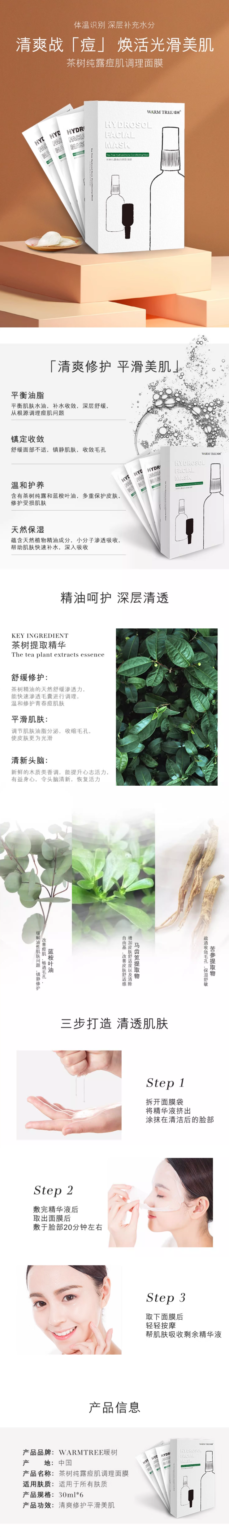 【99元会员福利】暖树·茶树纯露痘肌调理面膜30ml*6片/盒