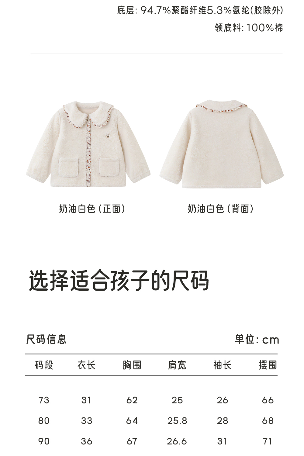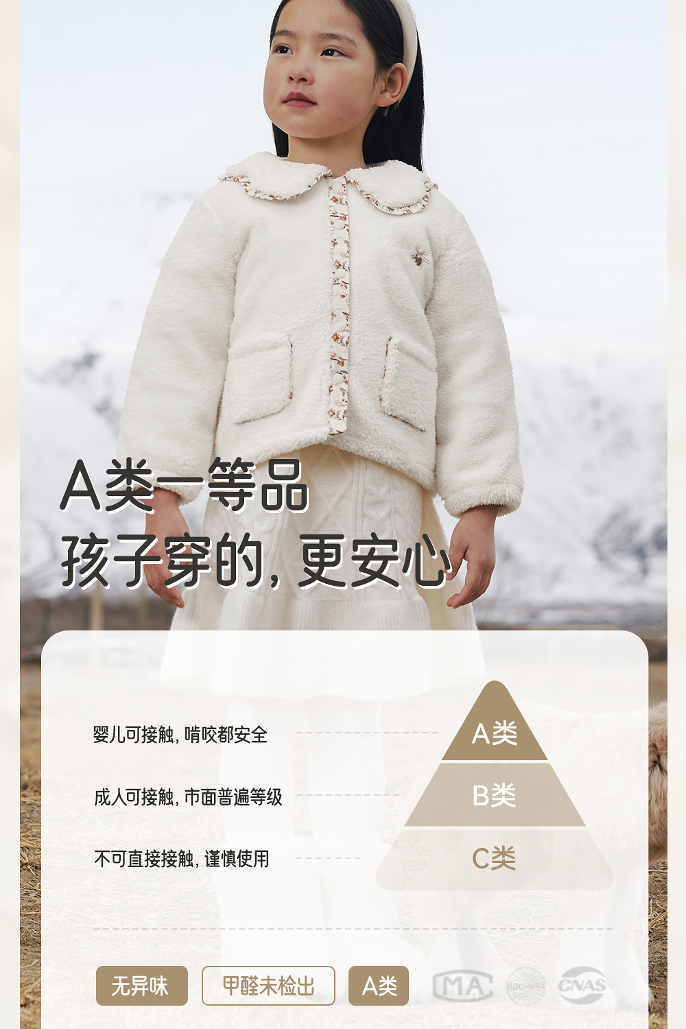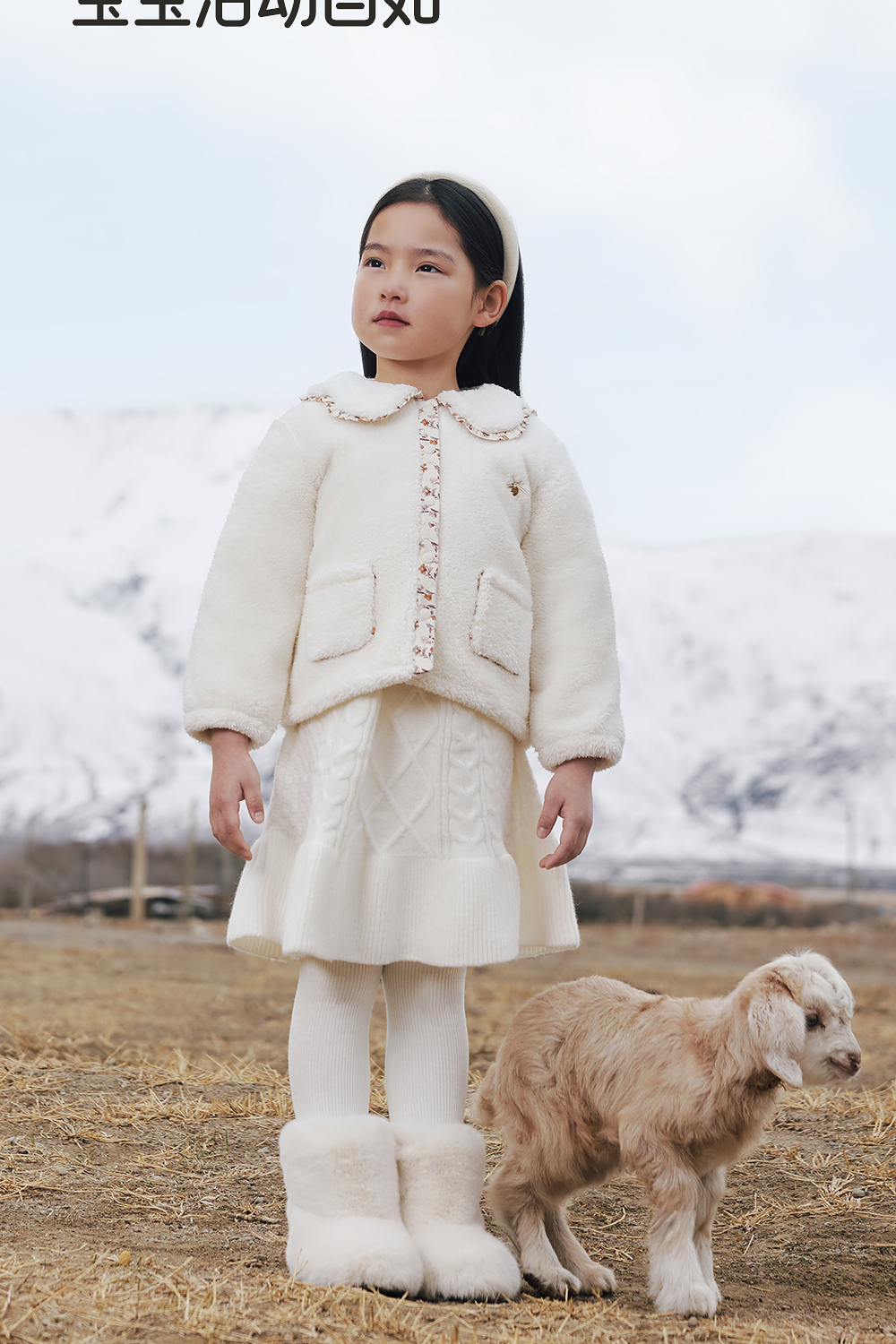 英氏女童翻领外套冬季加绒保暖时髦洋气女宝宝上衣YRWBJ4R032A