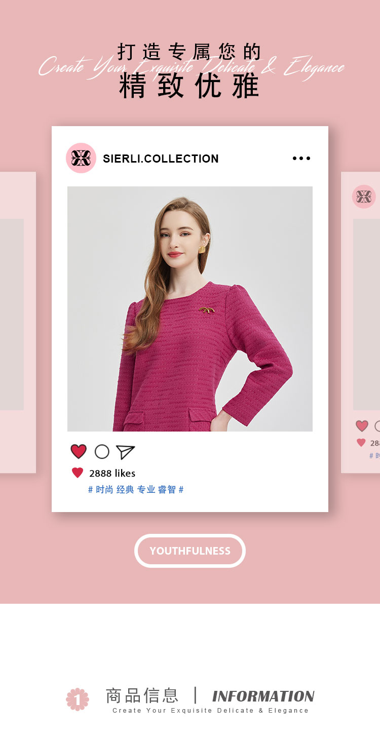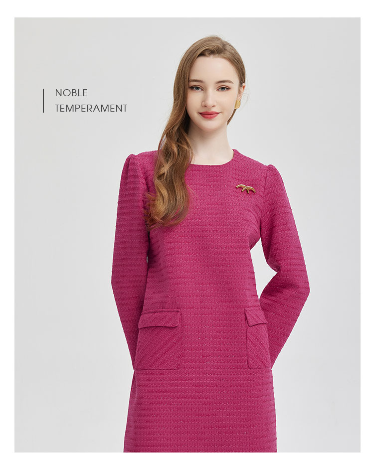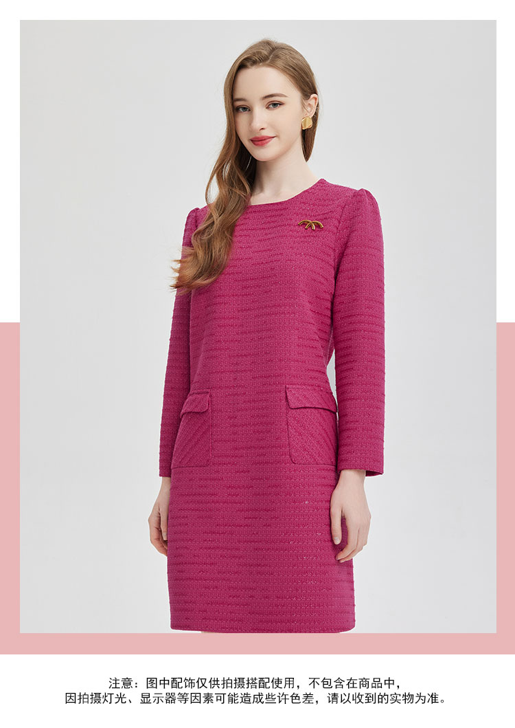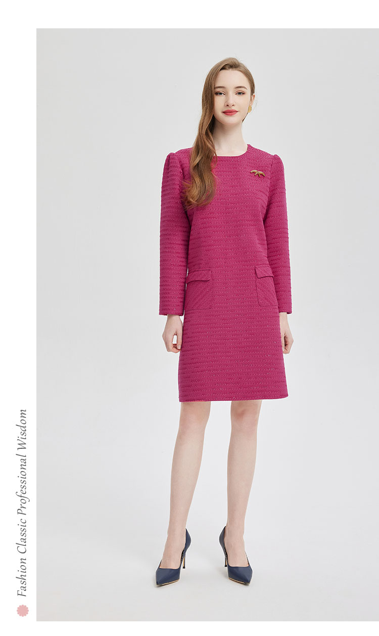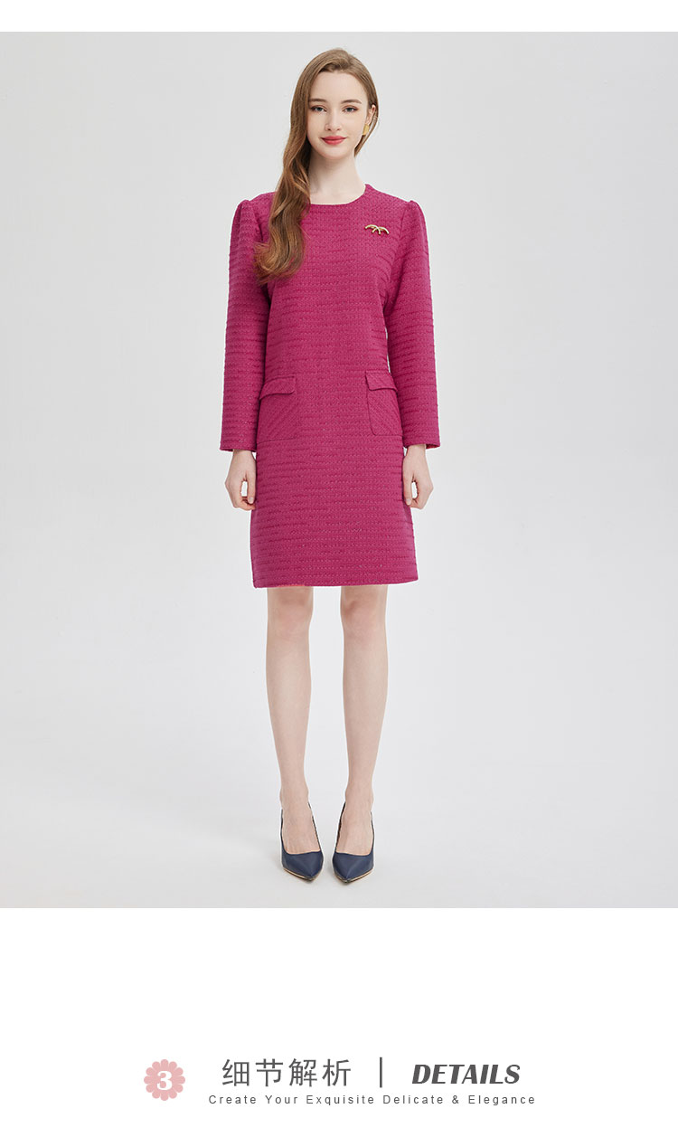 PE847斯尔丽2024新款俏皮小香风配胸针连衣裙