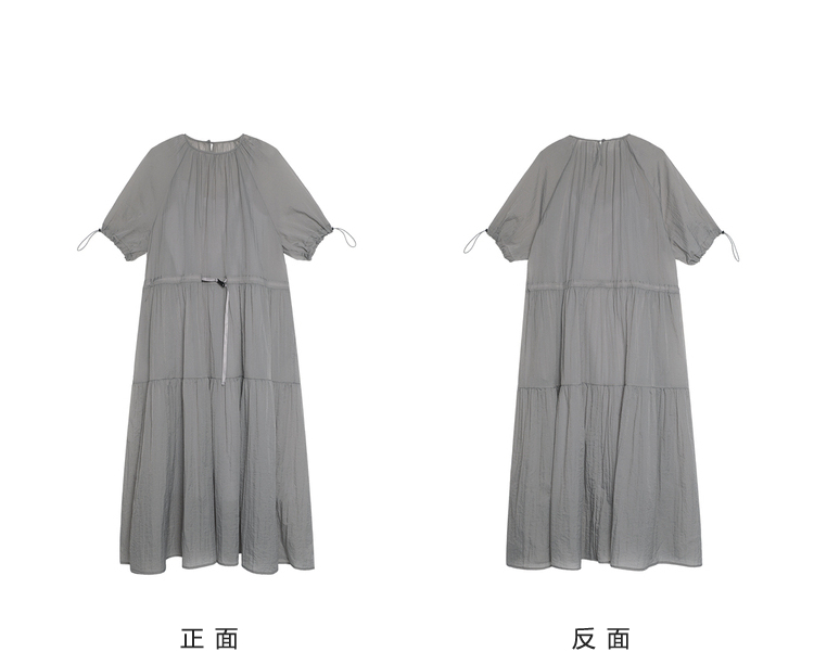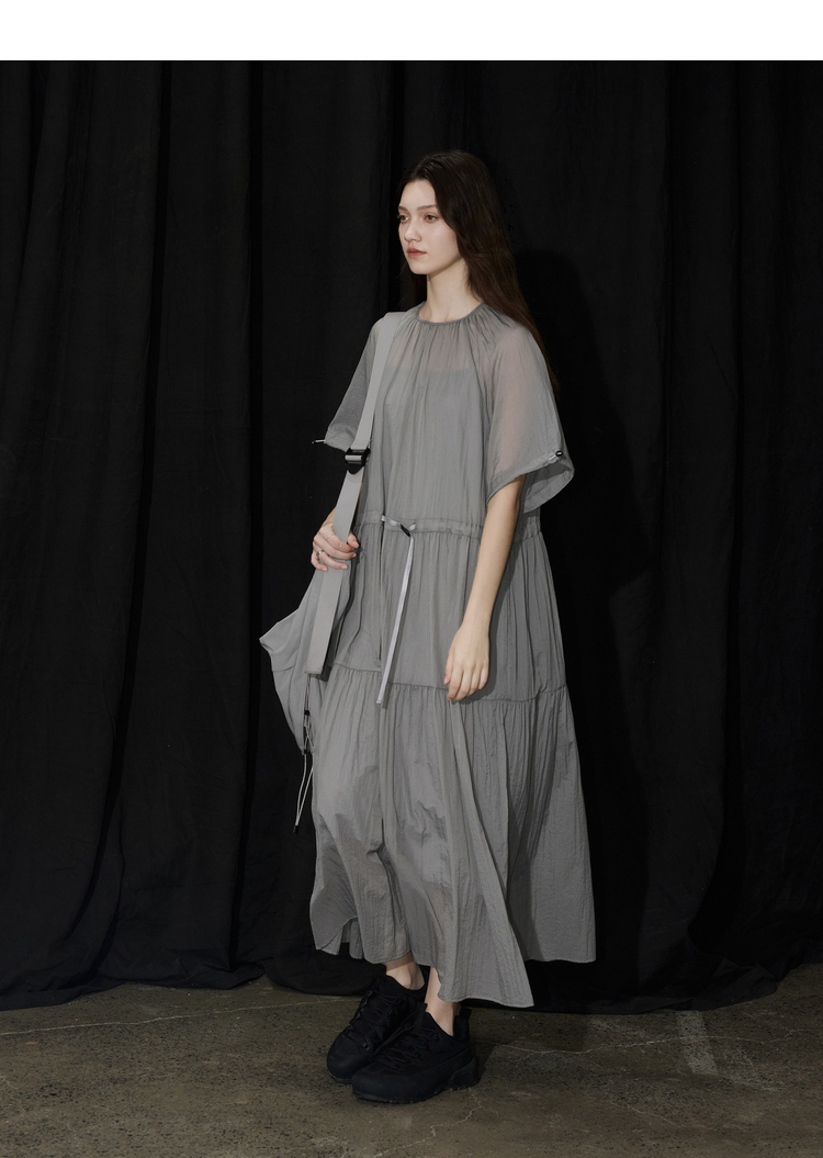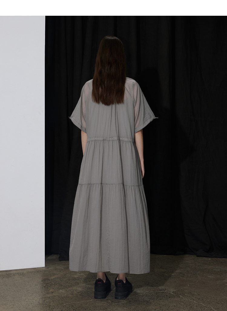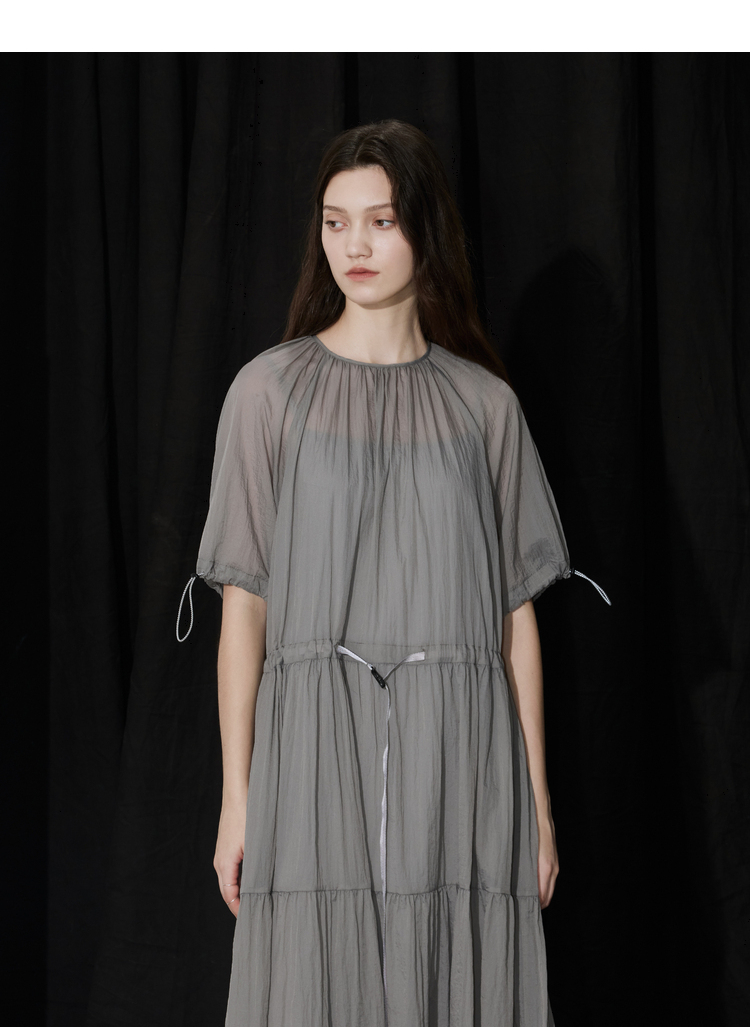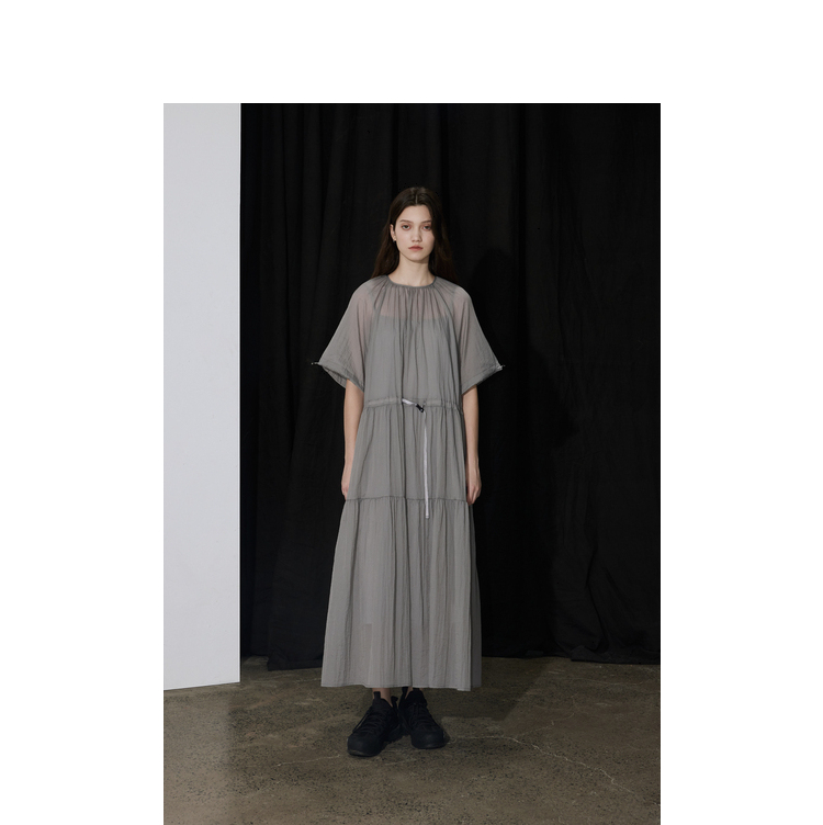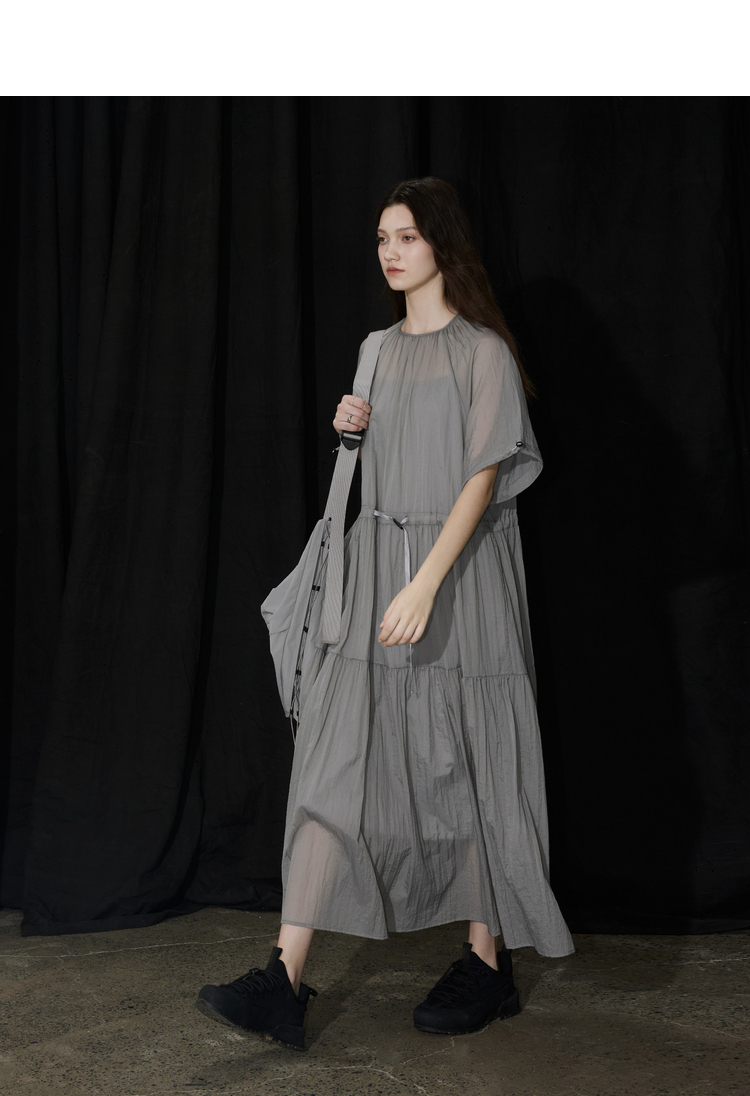 半圆/D24204347/宽松抽皱圆领轻运动连衣裙