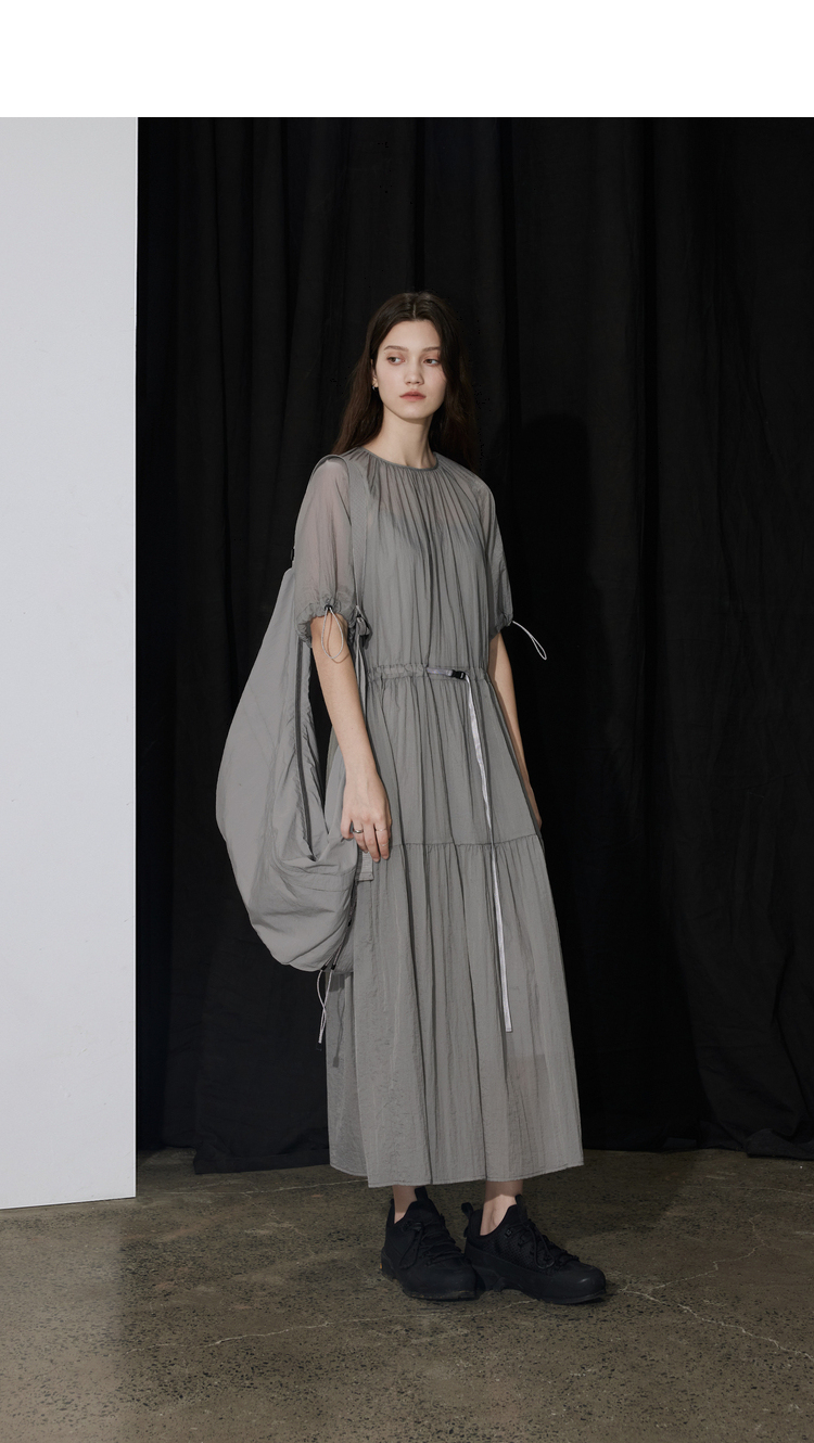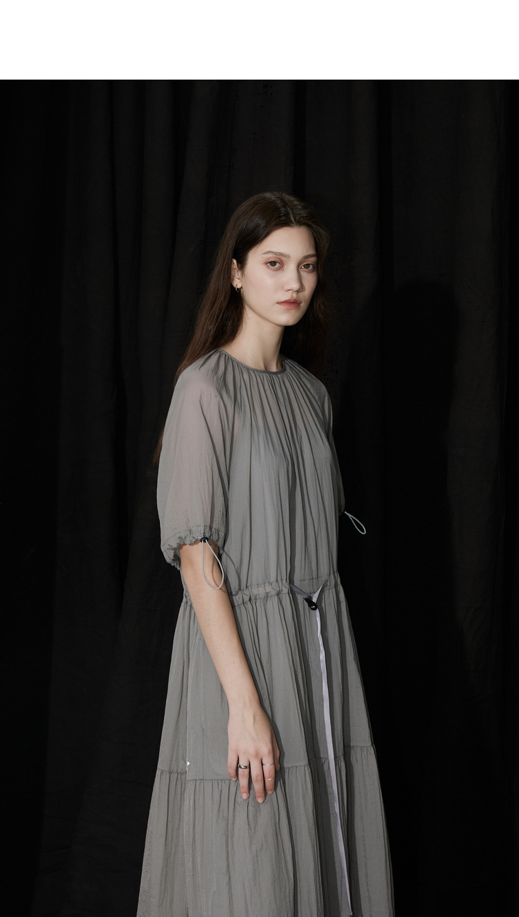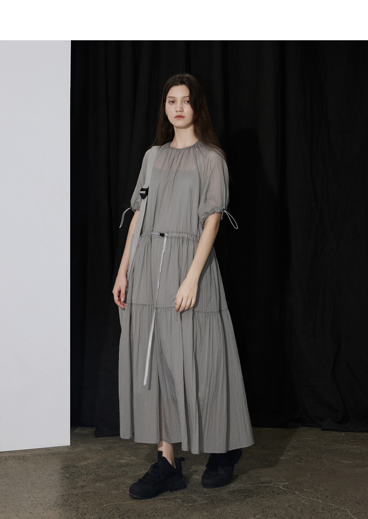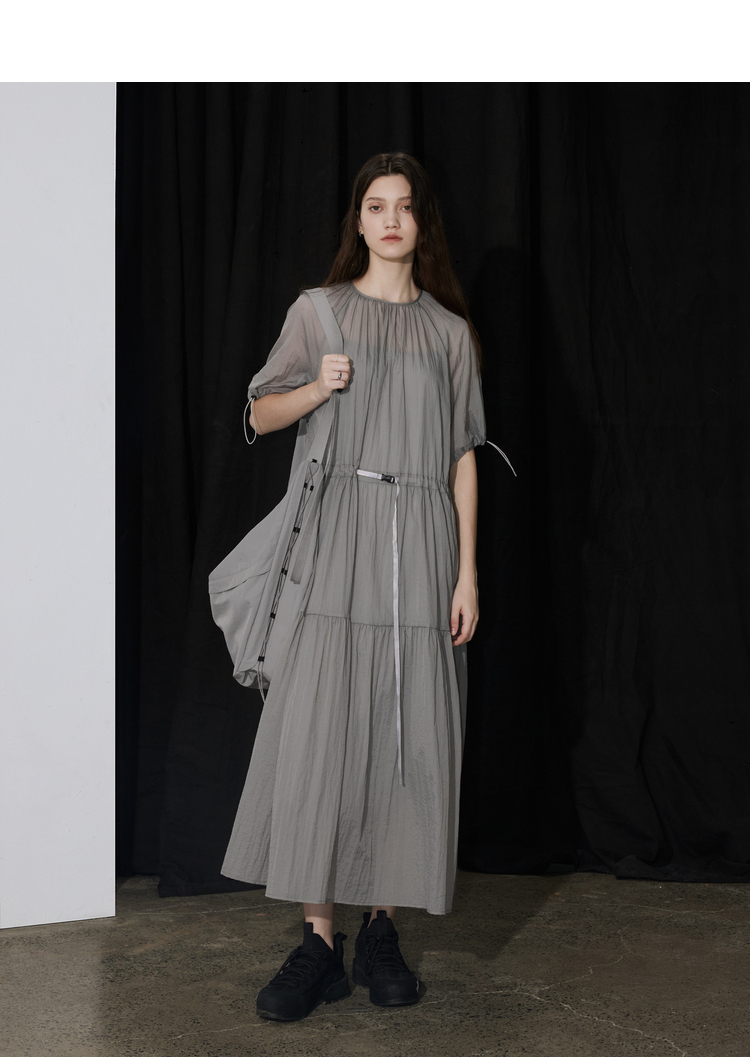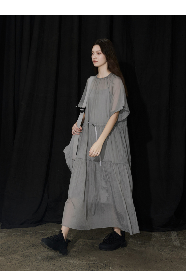 半圆/D24204347/宽松抽皱圆领轻运动连衣裙