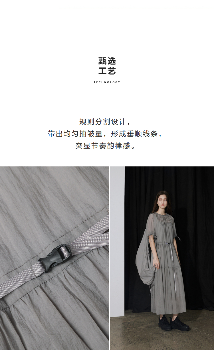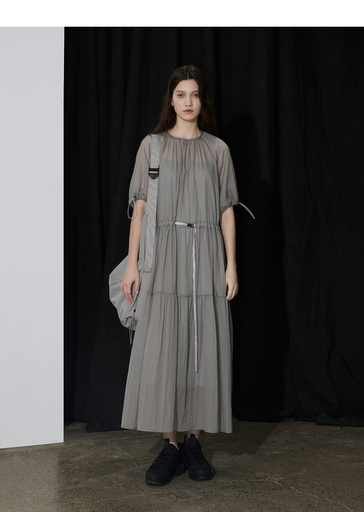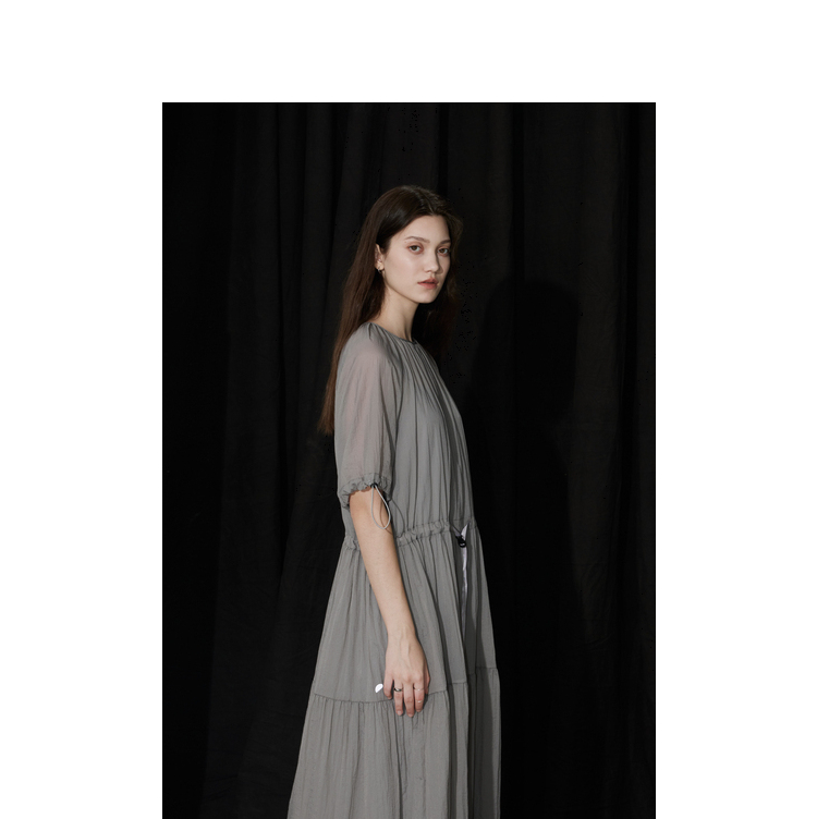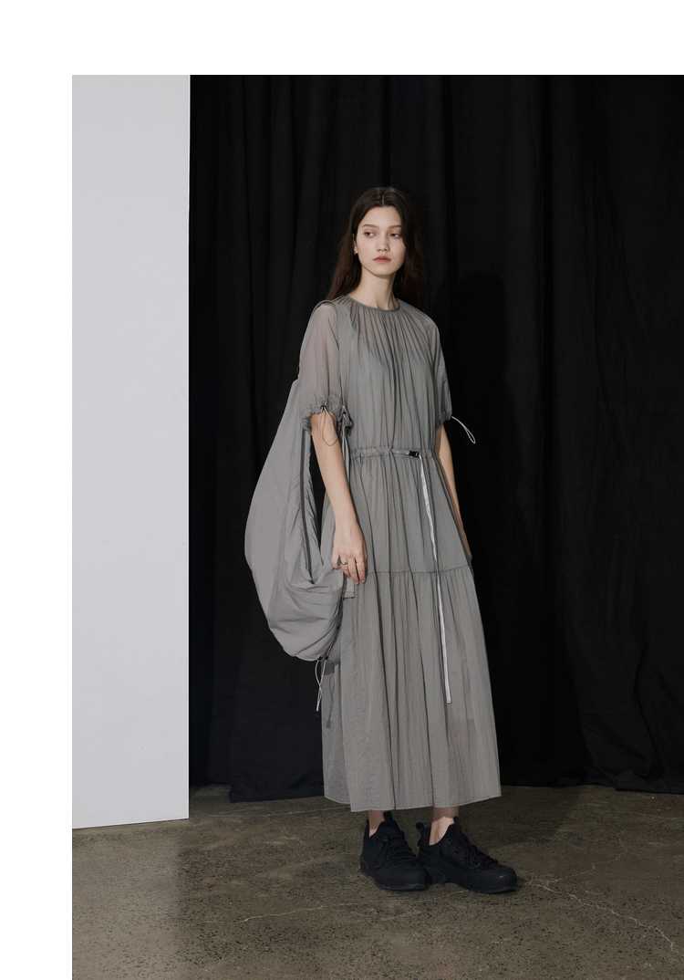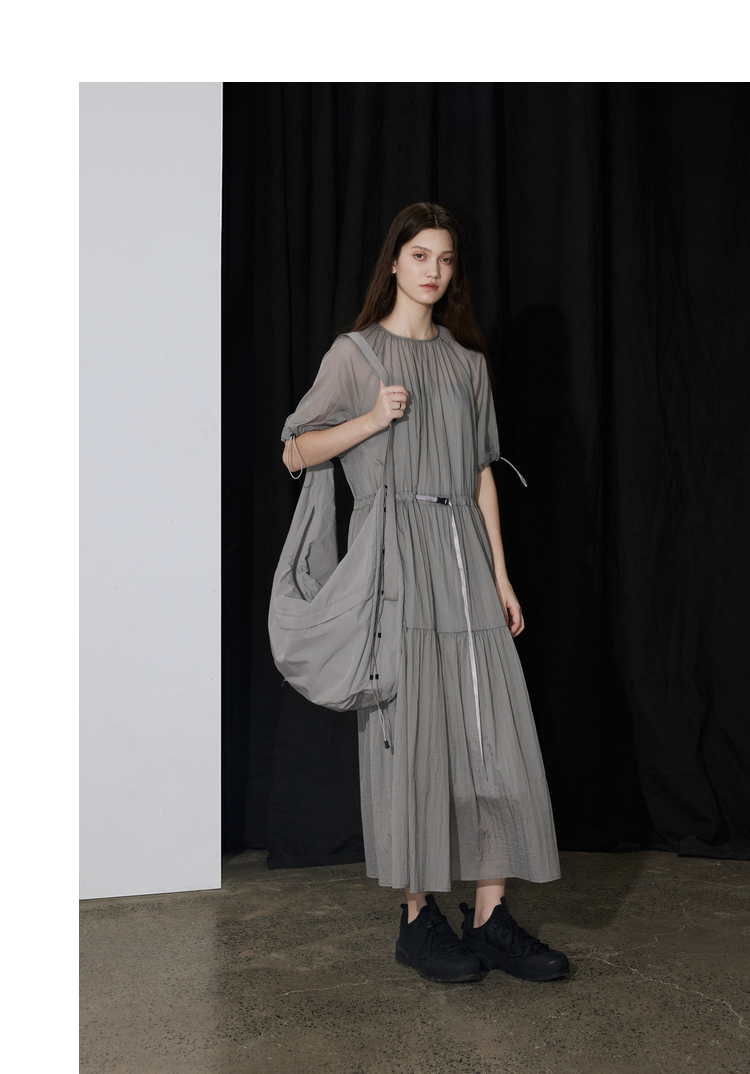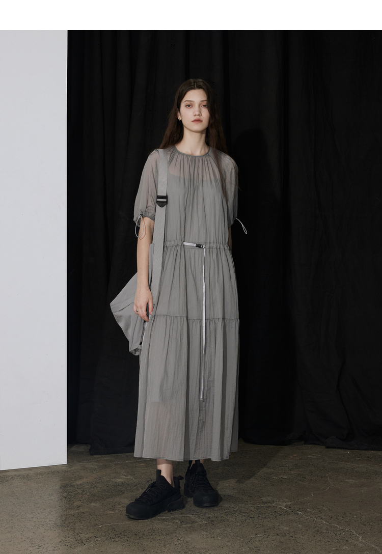 半圆/D24204347/宽松抽皱圆领轻运动连衣裙