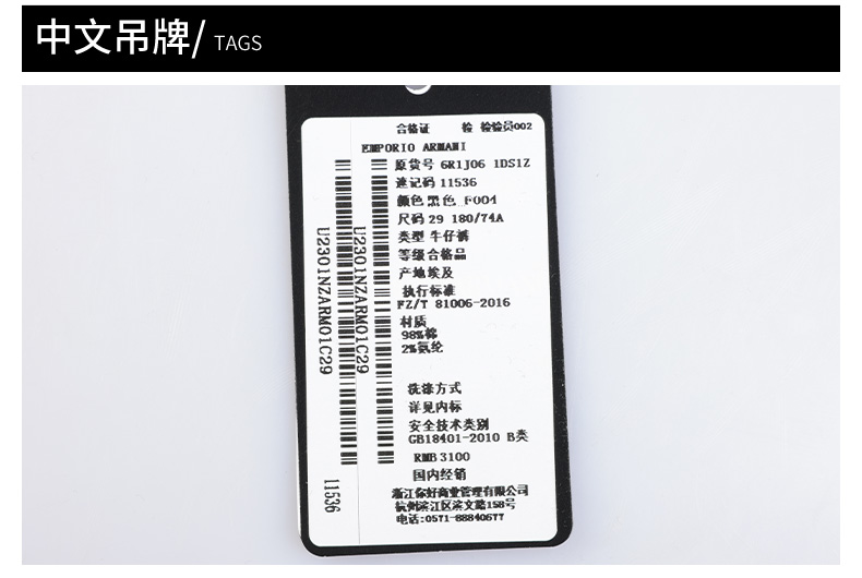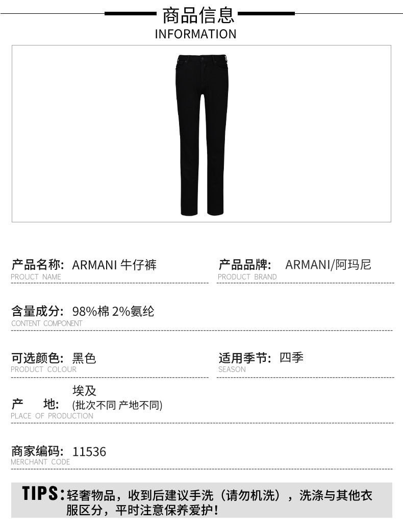 超惠秒】Emporio Armani 男士刺绣字母飞鹰logo弹棉休闲牛仔长裤 11536
