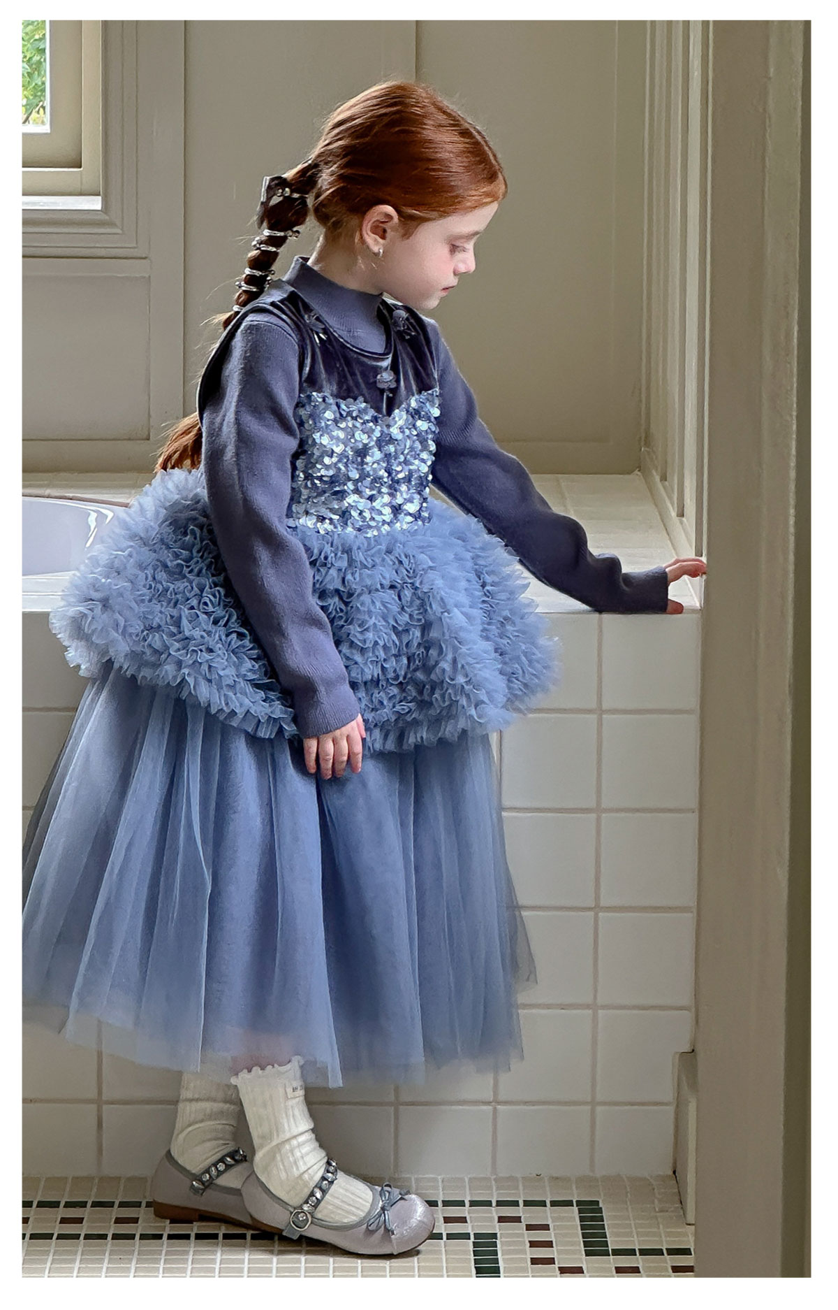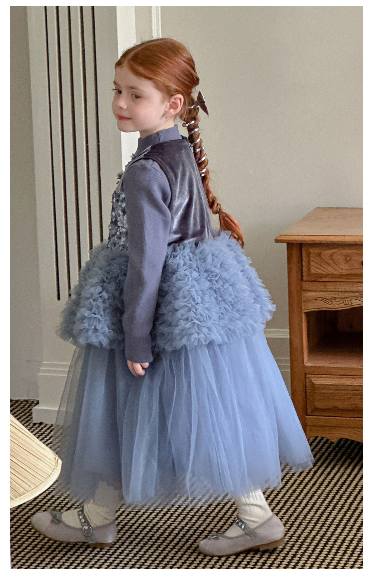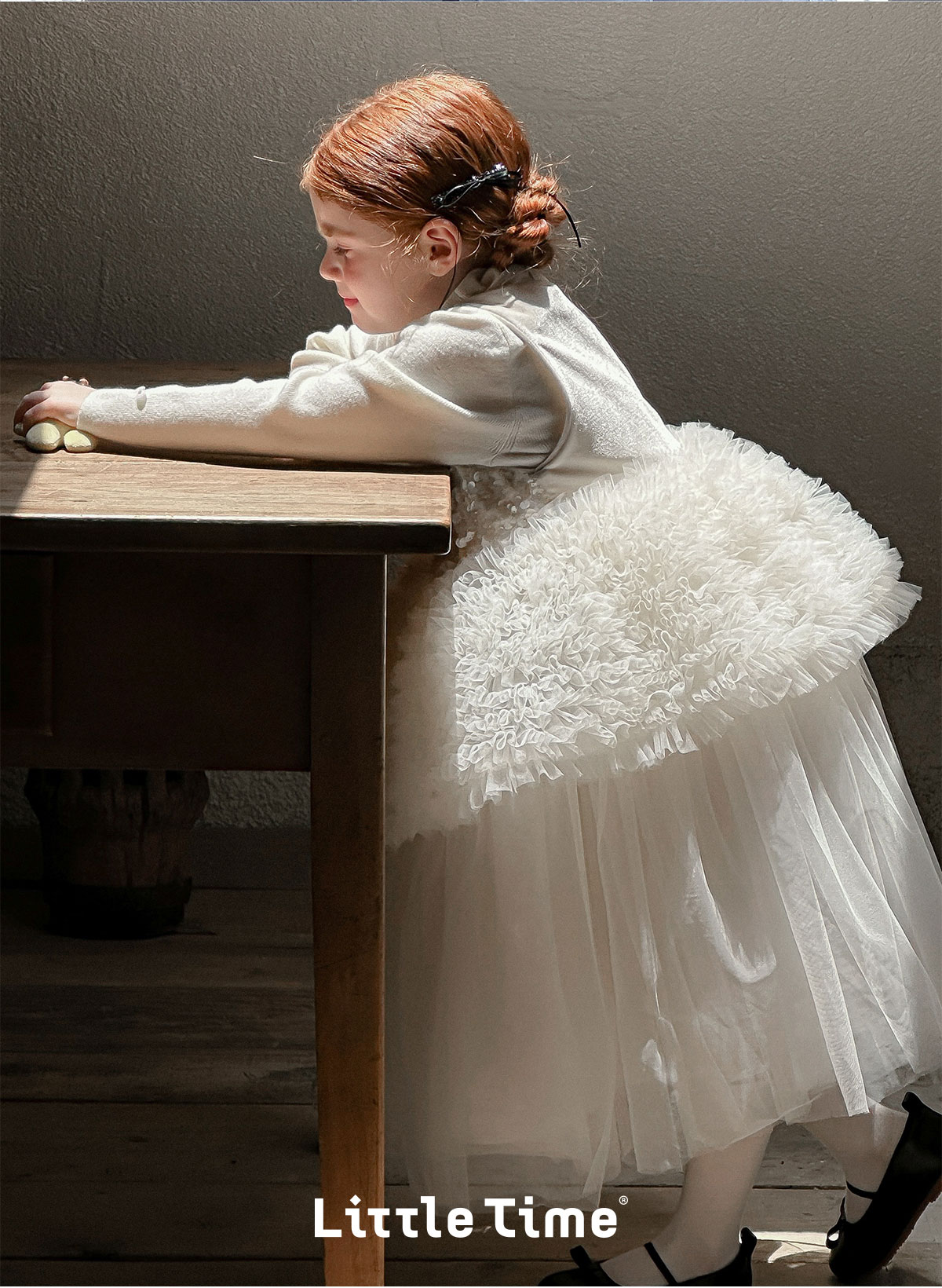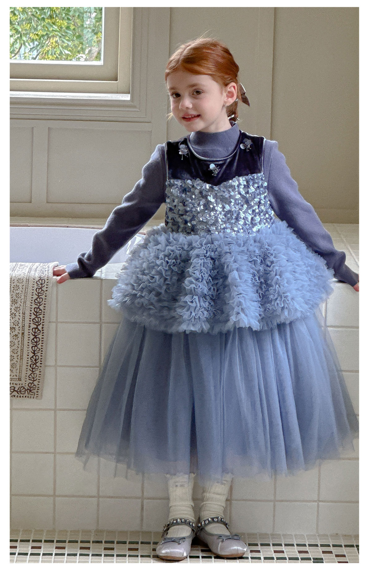 littletime女童连衣裙2025秋冬新款儿童天鹅绒亮片网纱蛋糕公主裙