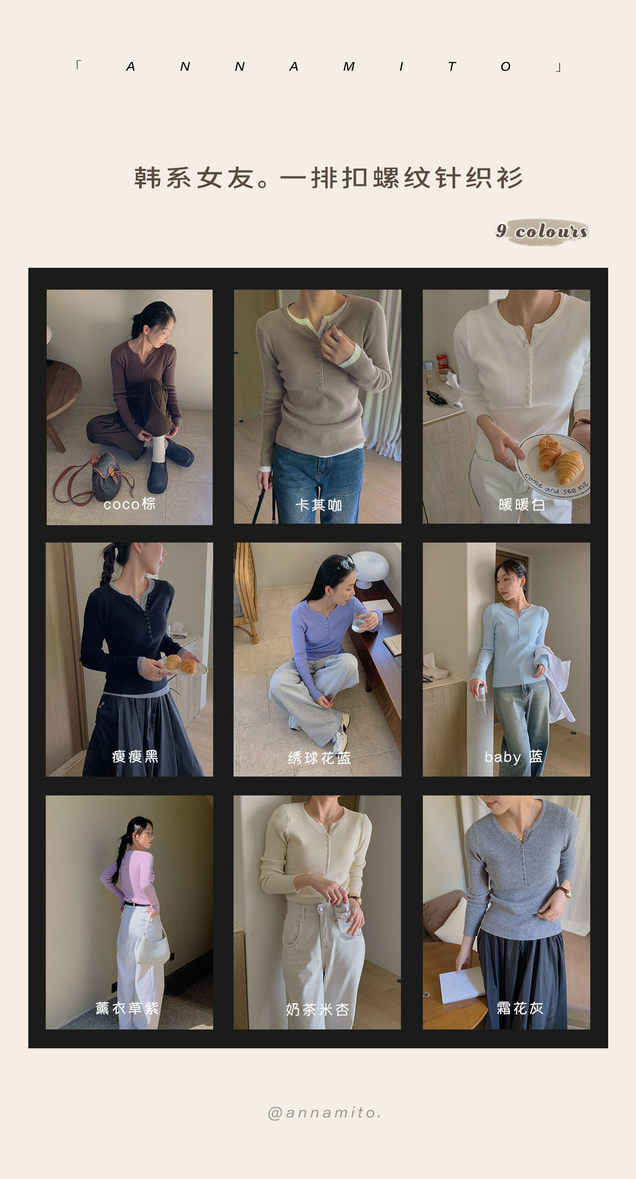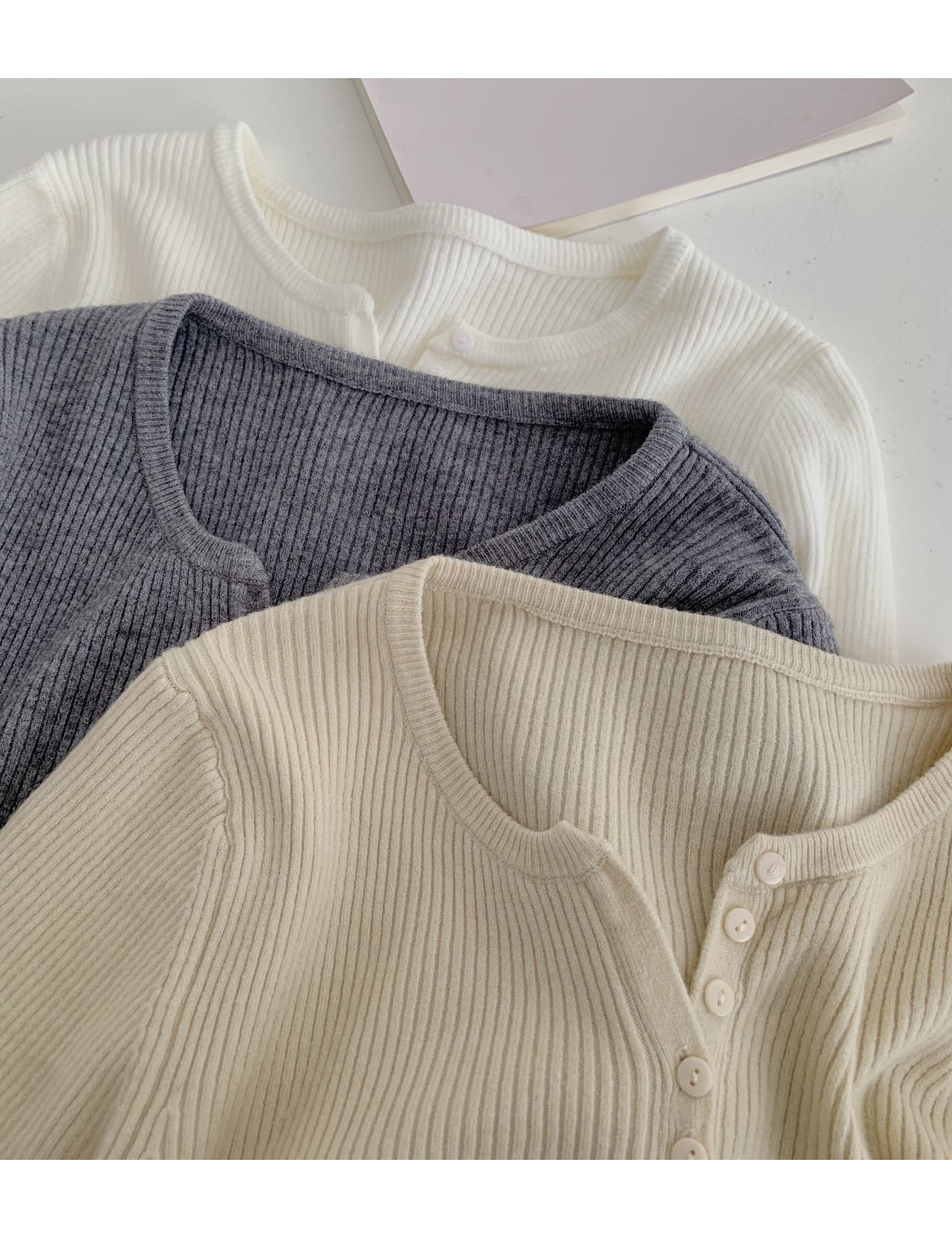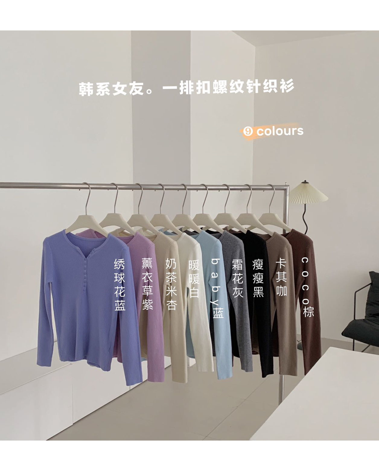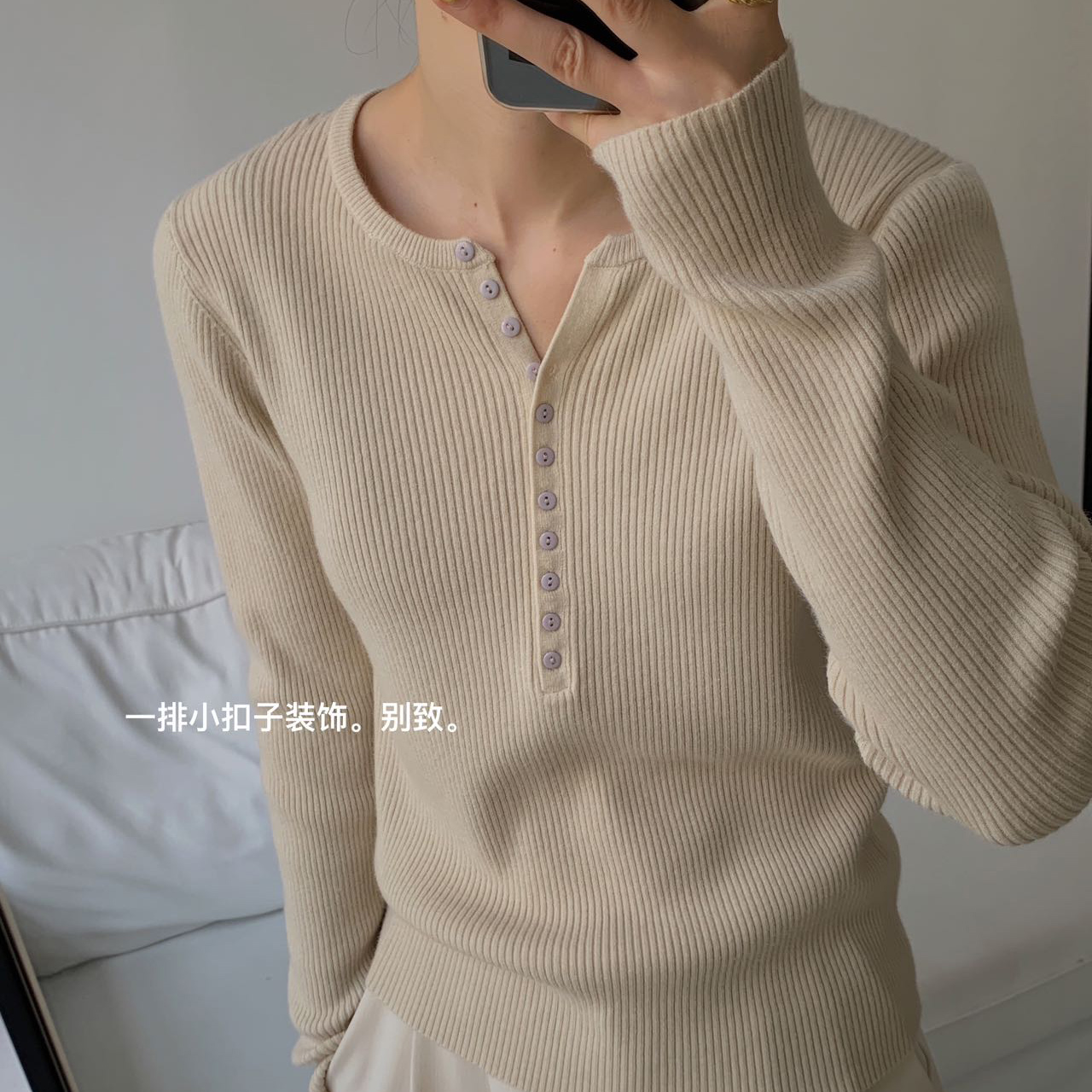 老米优品/ 预售3-5 韩系女友《一排扣螺纹针织衫》知冷知热的针织衫,应对秋日的多变~~ 修身显瘦,气质温柔 MY230823B