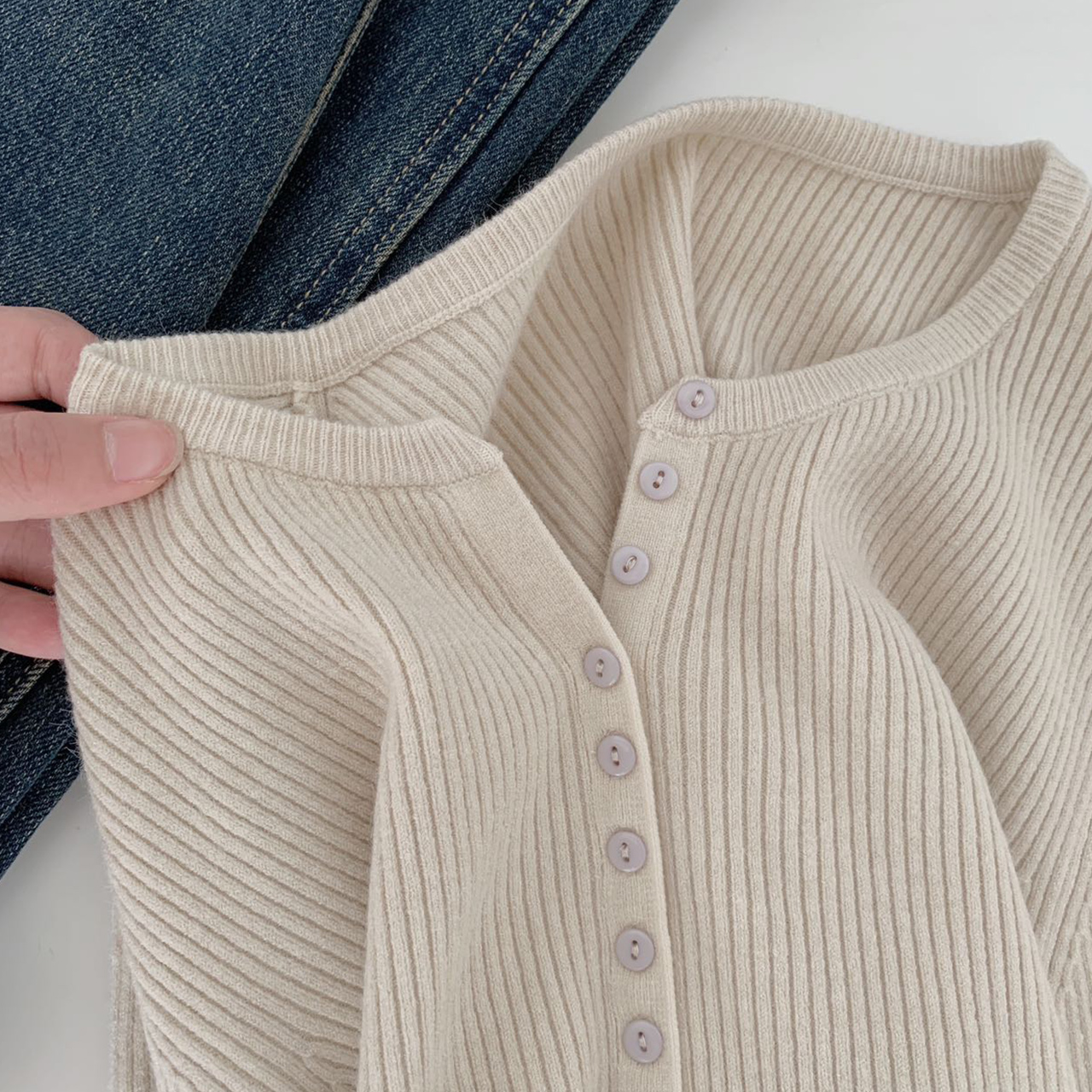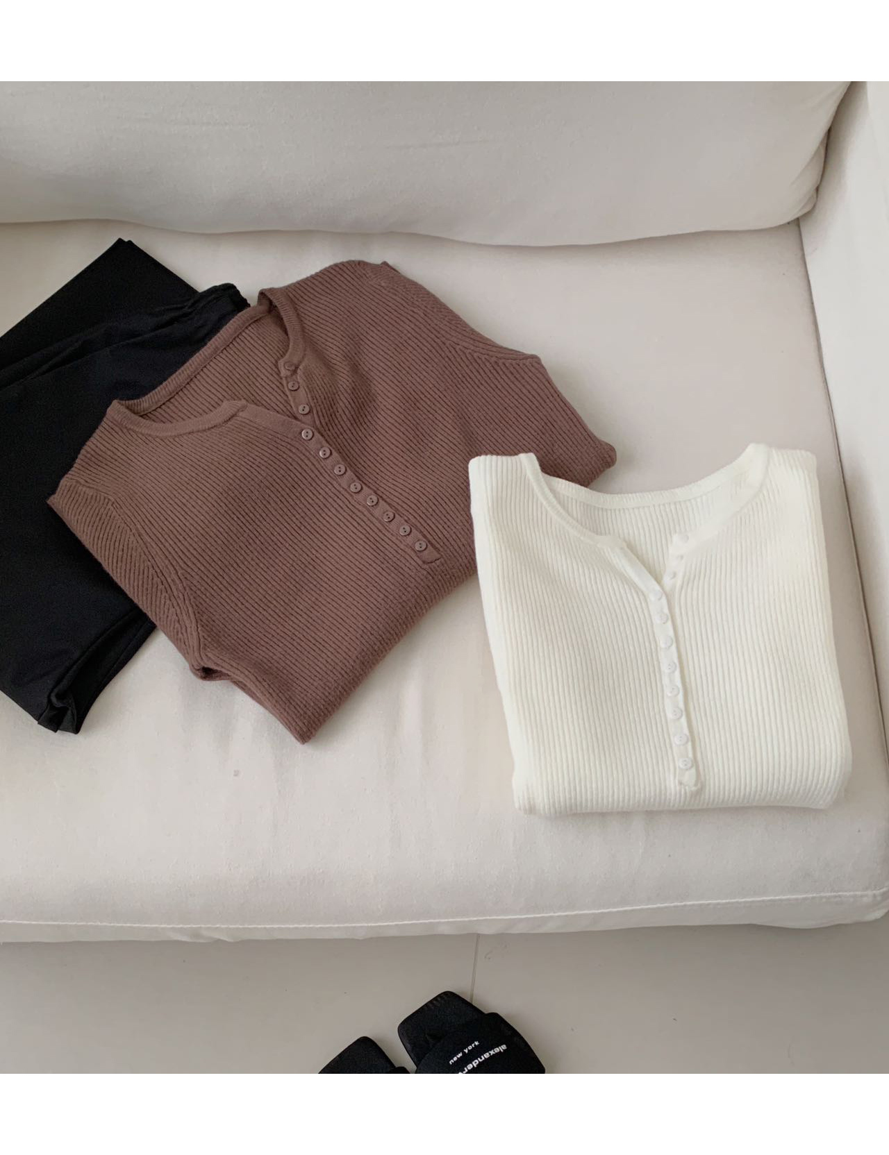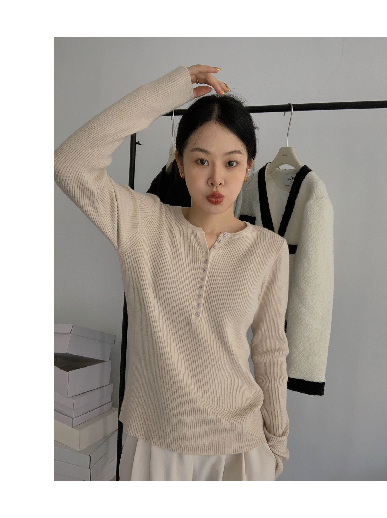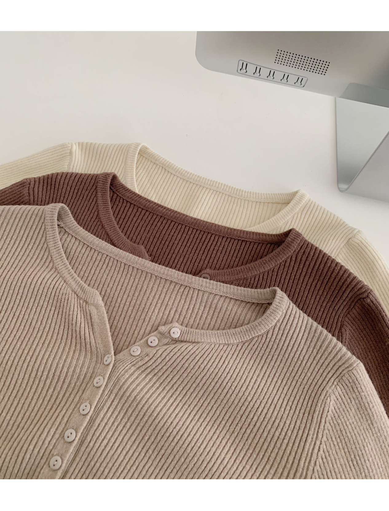 老米优品/ 预售3-5 韩系女友《一排扣螺纹针织衫》知冷知热的针织衫,应对秋日的多变~~ 修身显瘦,气质温柔 MY230823B