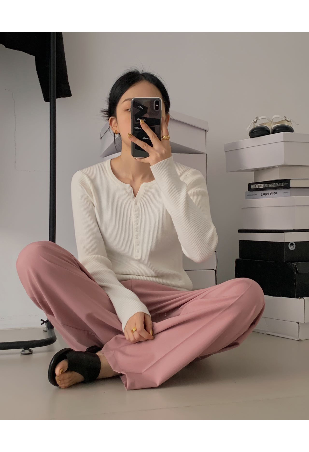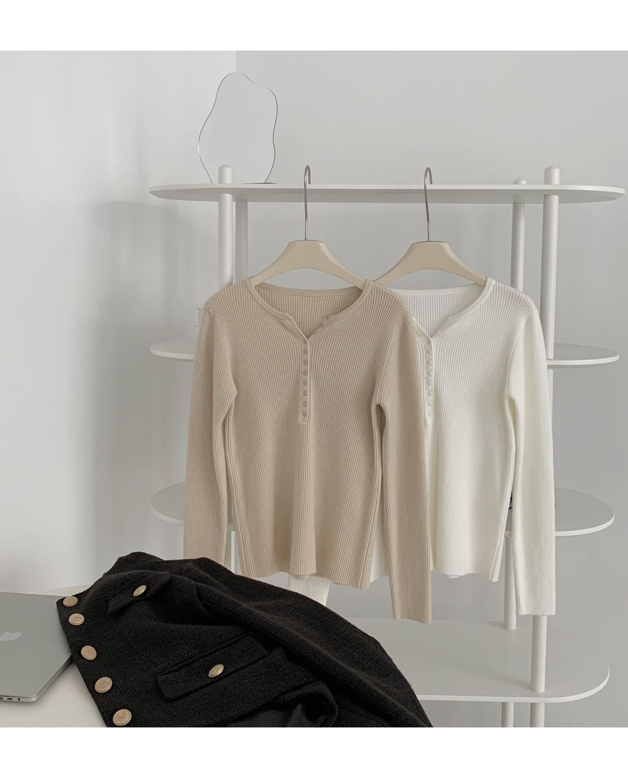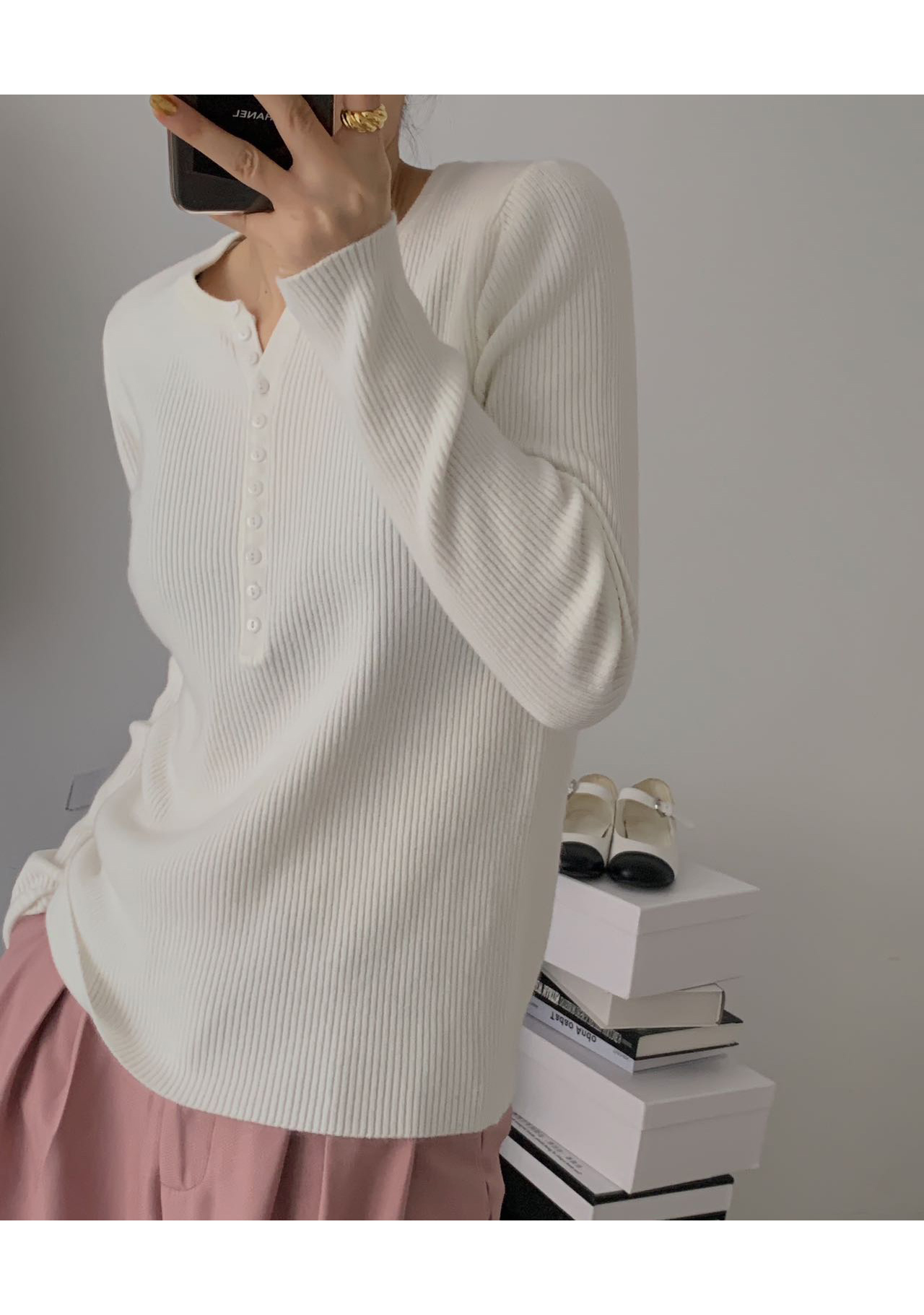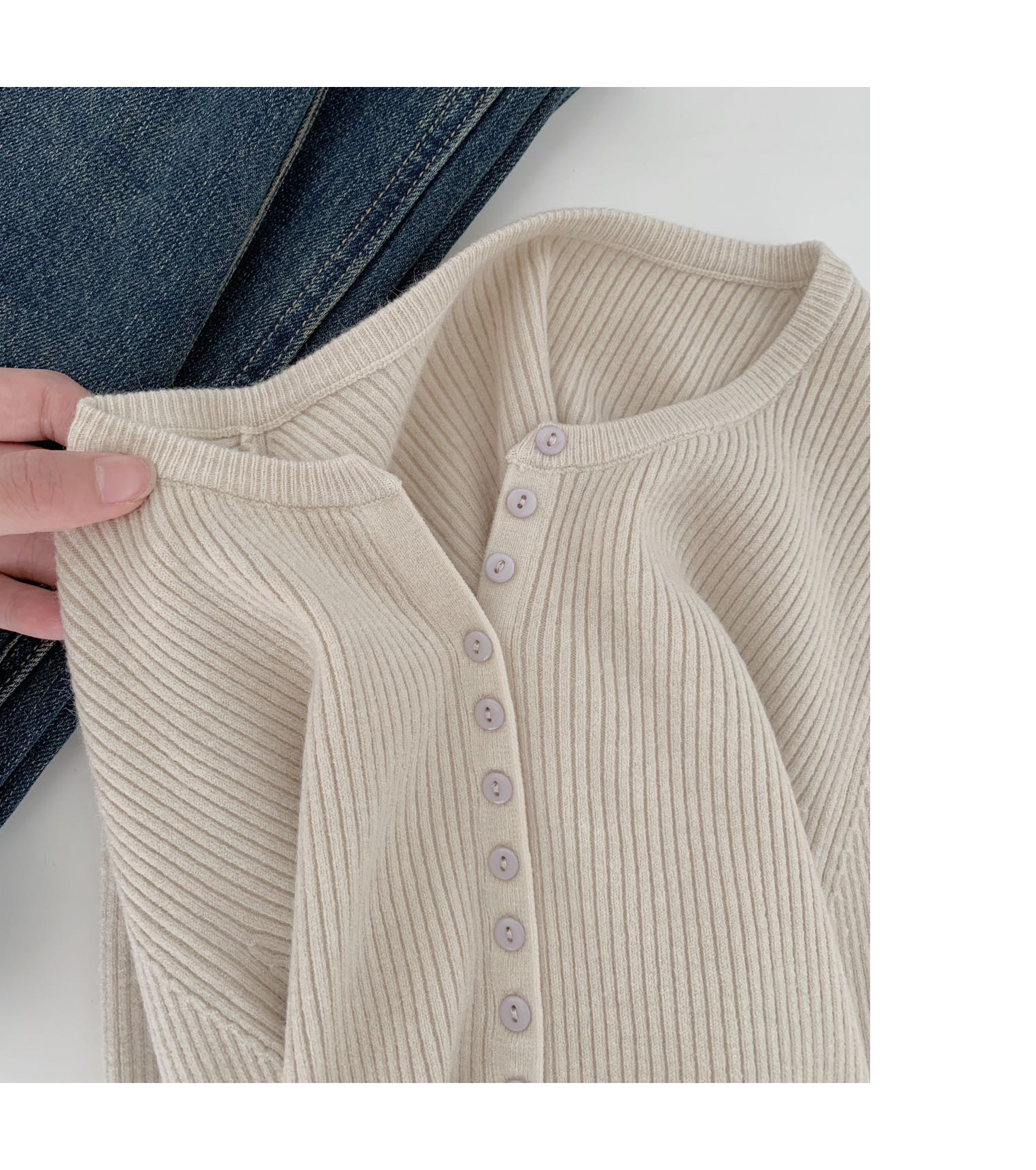 老米优品/ 预售3-5 韩系女友《一排扣螺纹针织衫》知冷知热的针织衫,应对秋日的多变~~ 修身显瘦,气质温柔 MY230823B