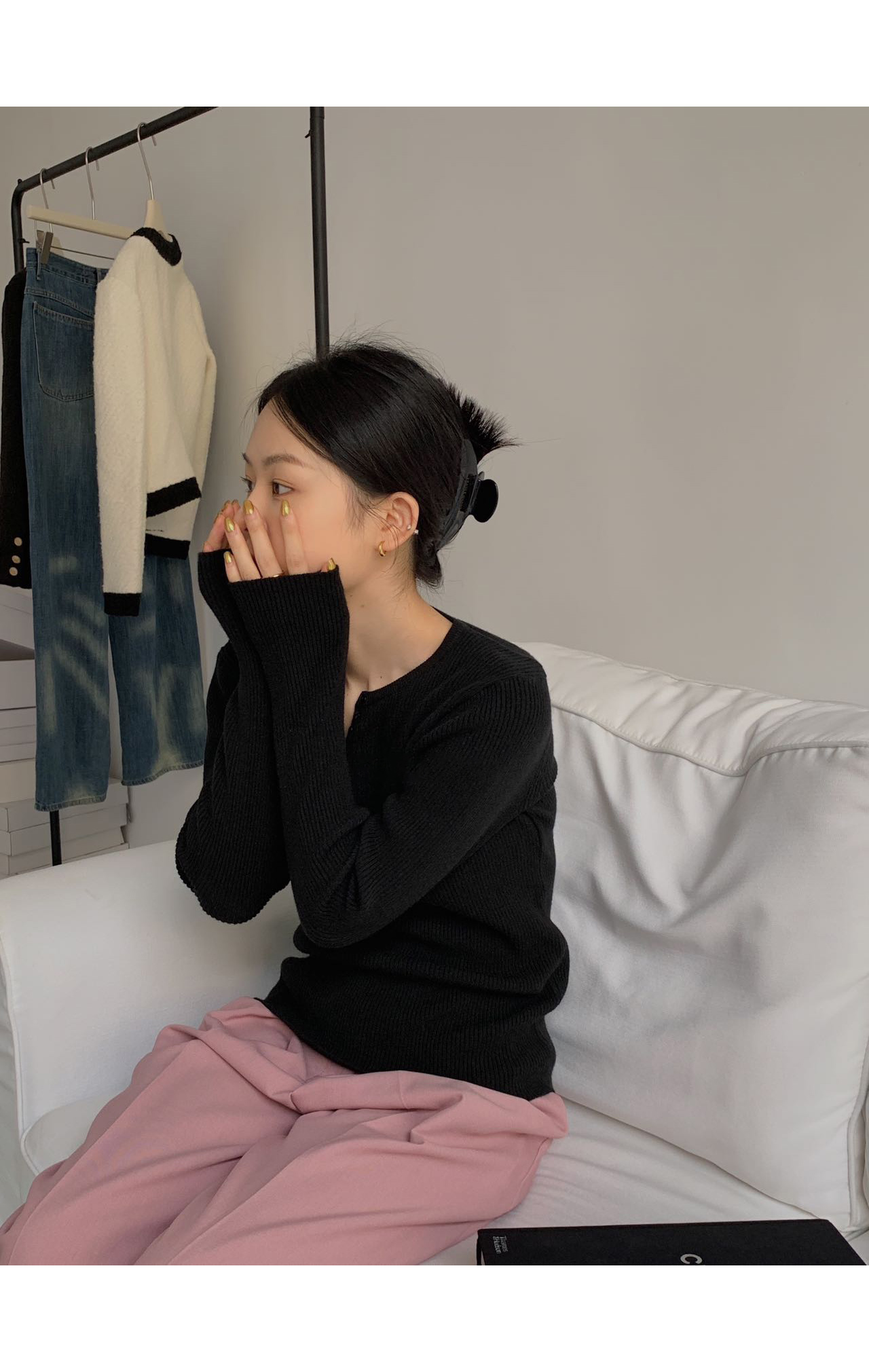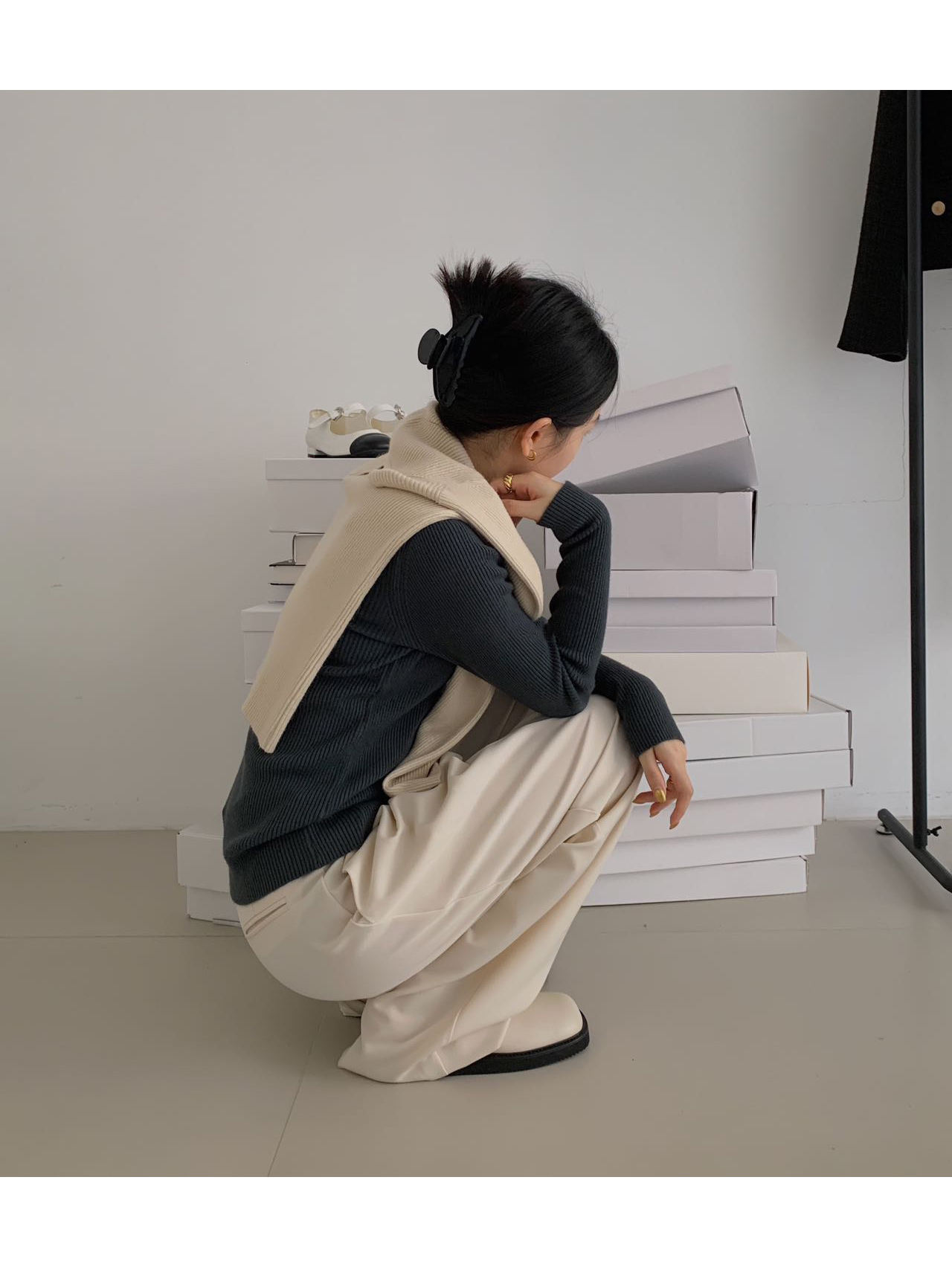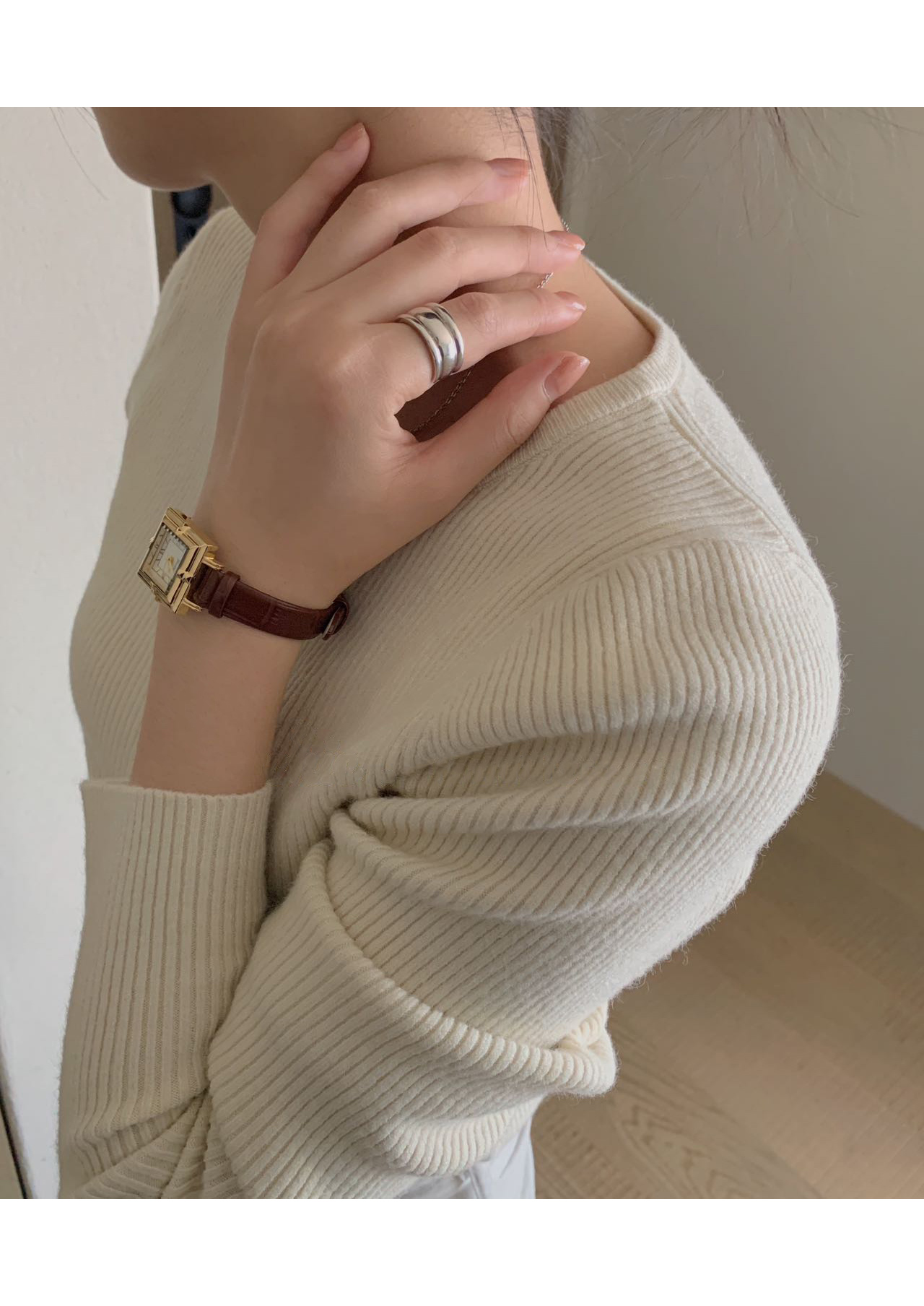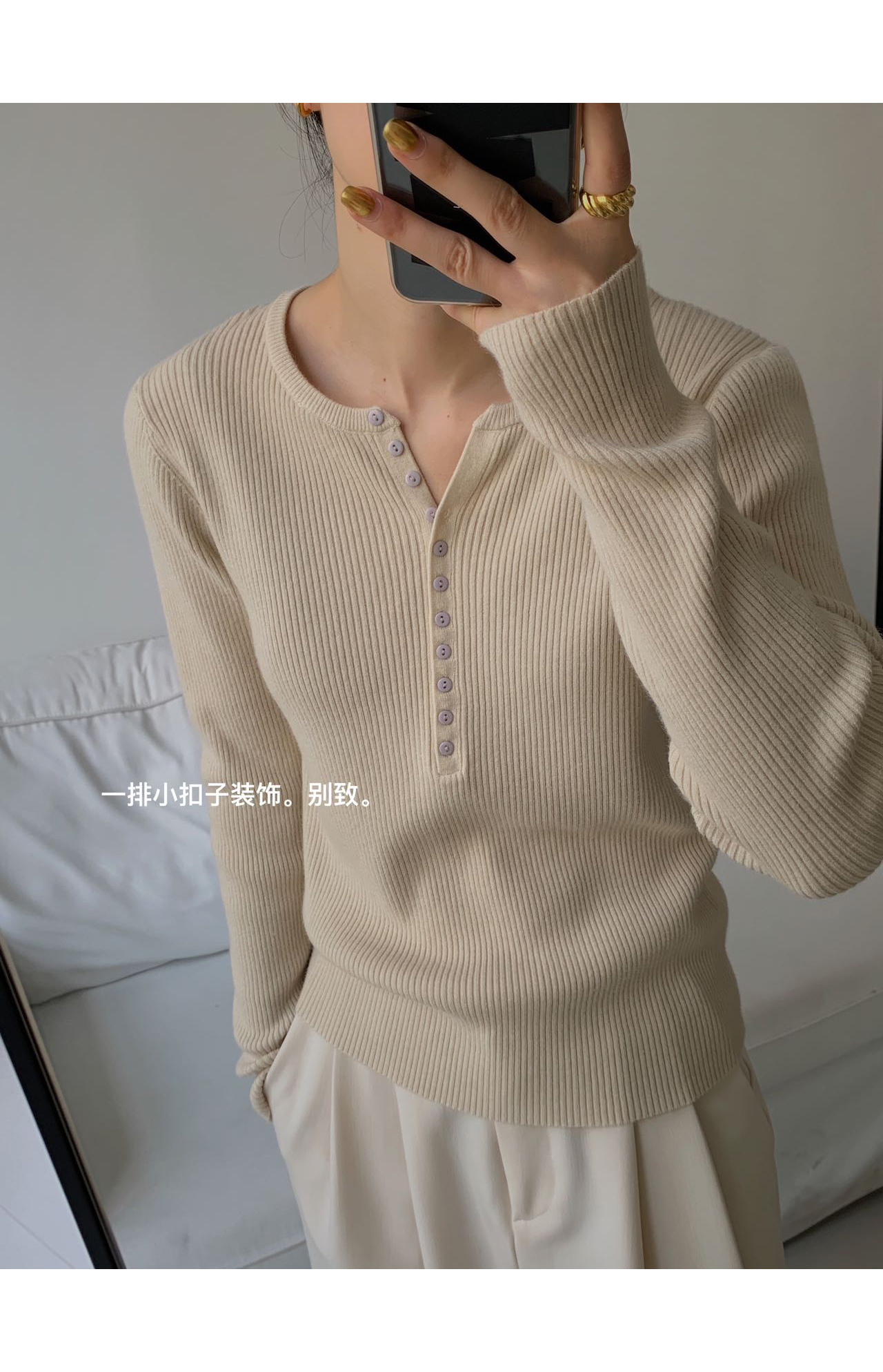 针织衫的肌理感比较强无需过多搭配