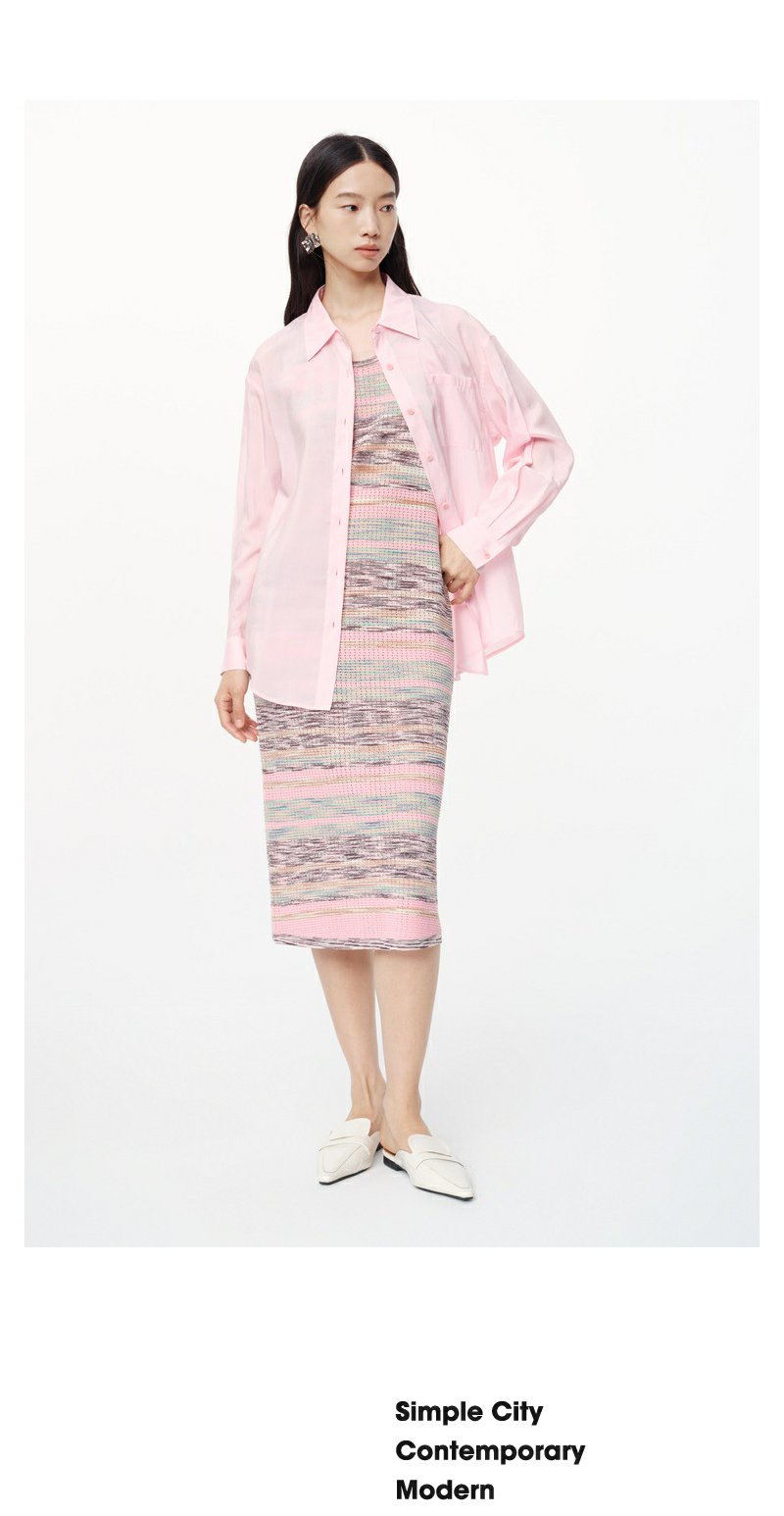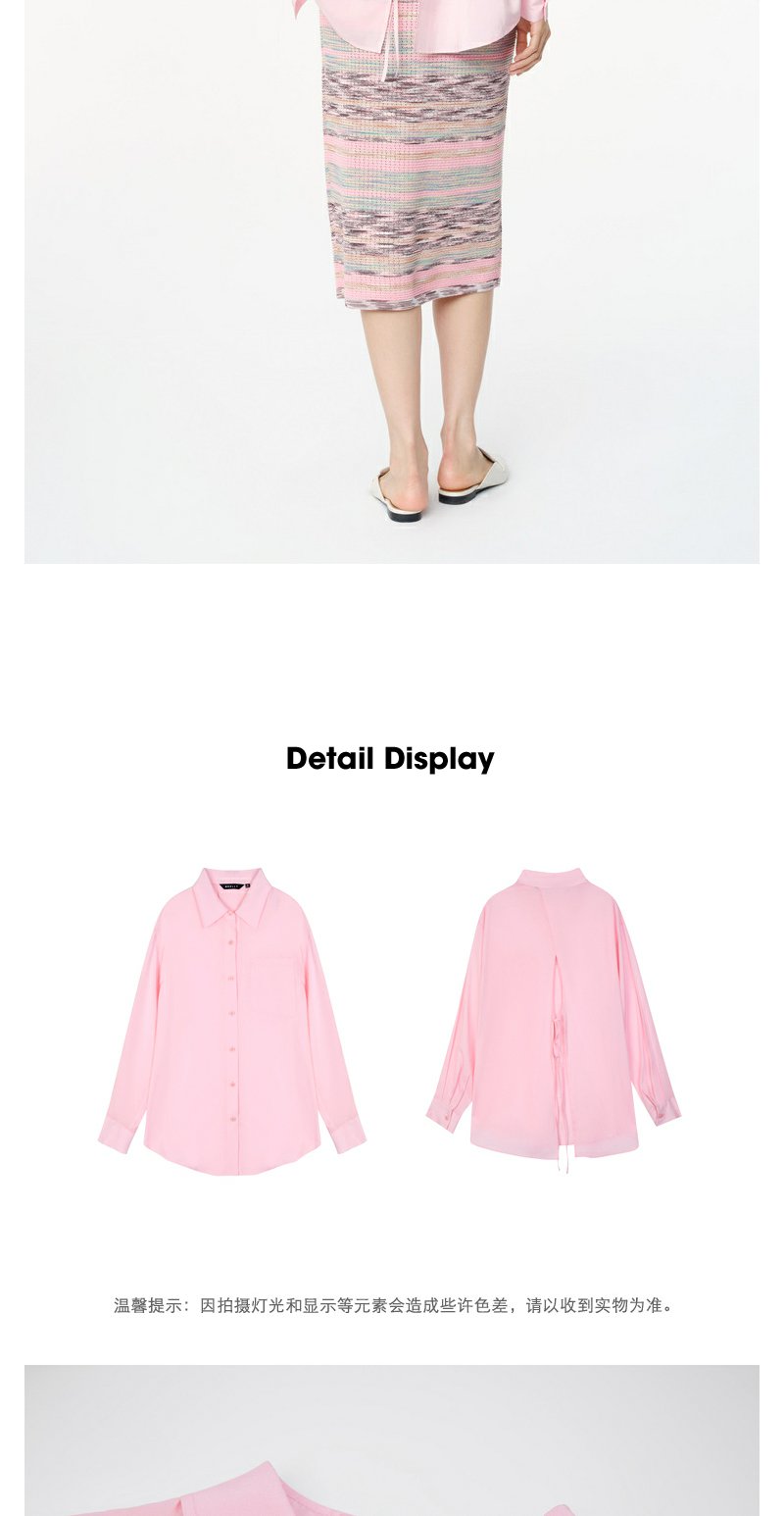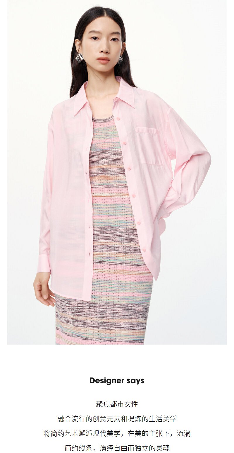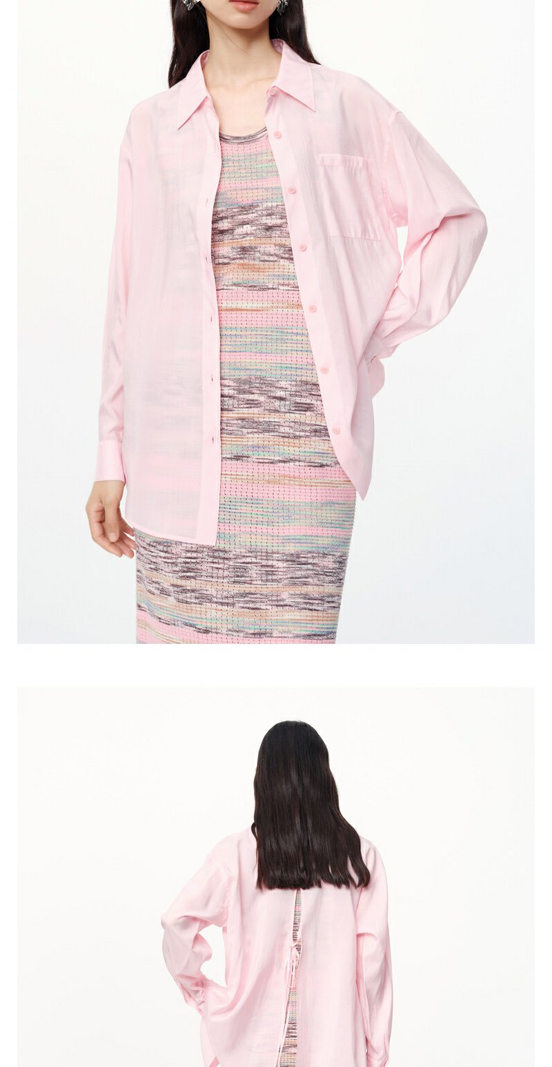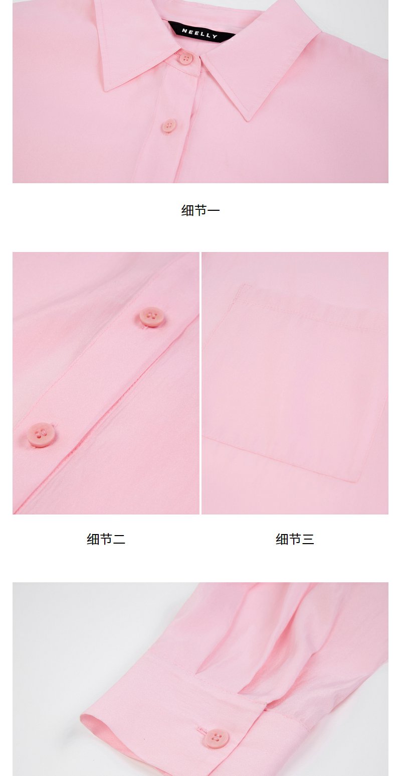 NEELLY纳俪商场同款春新款氛围感粉色减龄长袖衬衫女显白宽松衬衣N25074B04561