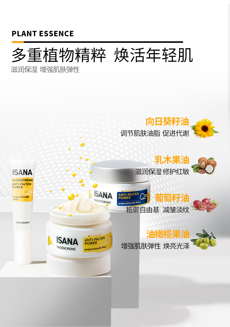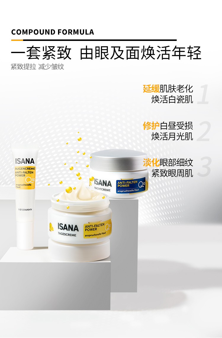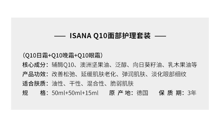 【郑州保税】德国ISANA辅酶Q10紧致套装(日霜50 ml晚霜50ml眼霜15m)-mmj