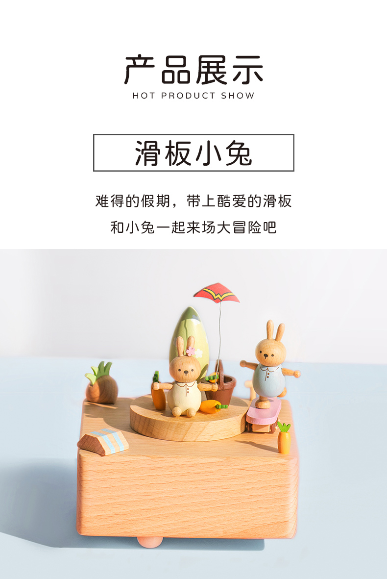 猫的天空之城八音盒《滑板小兔》音乐盒木质生日礼物礼盒生日快乐送女友送闺蜜