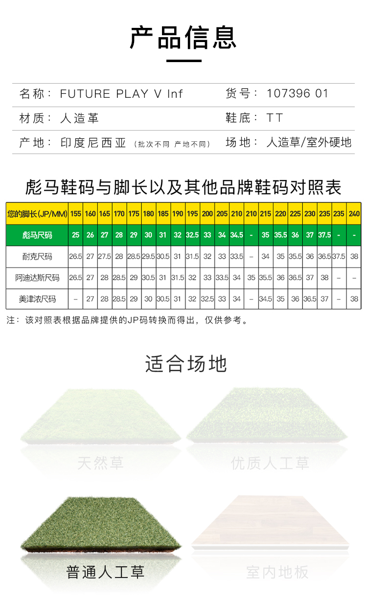 PUMA/彪马FUTURE PLAY入门级TT碎钉青少年魔术贴足球鞋男107396 01