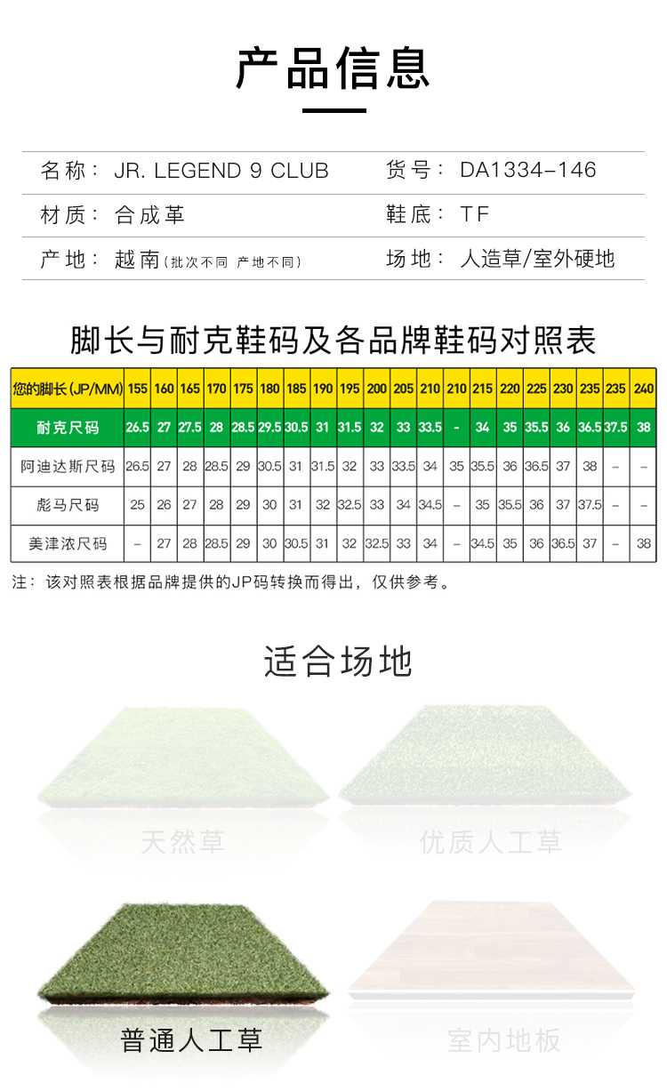 NIKE/耐克传奇9入门级低帮TF碎钉大童款足球鞋男DA1334-146