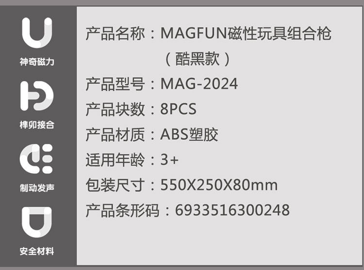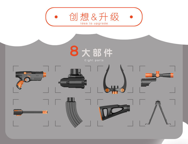 酷彼伴MAGFUN磁力骑士系列MAG-2024/巴雷特+弩/黑橙磁性枪儿童玩具枪组装枪