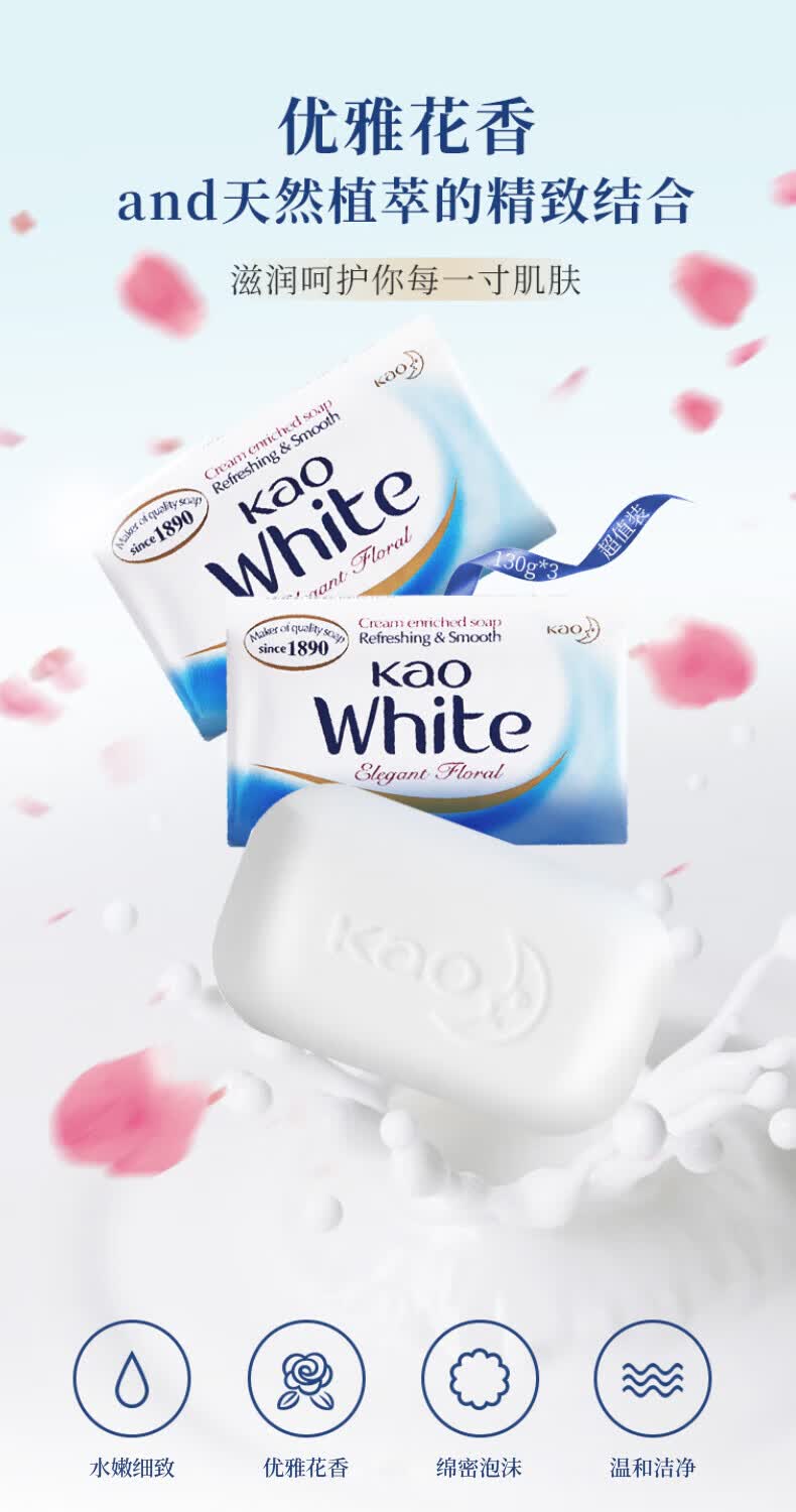 花王优雅花香奶白香皂三块装130g*3/组