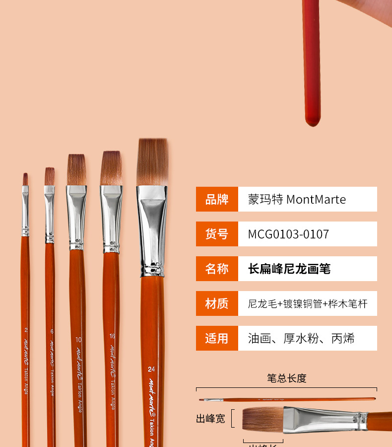 蒙玛特长扁峰尼龙笔文具绘画美术工具