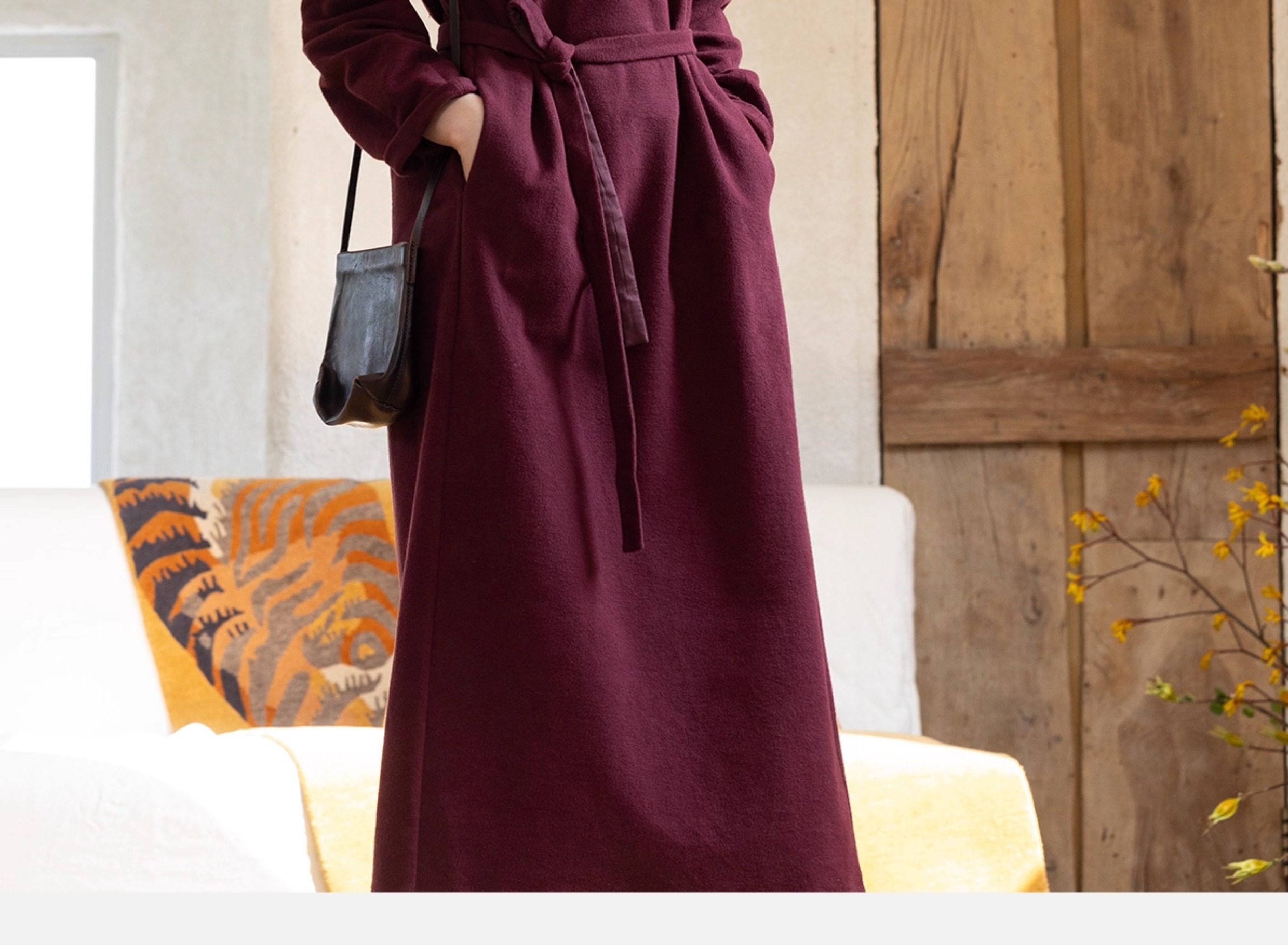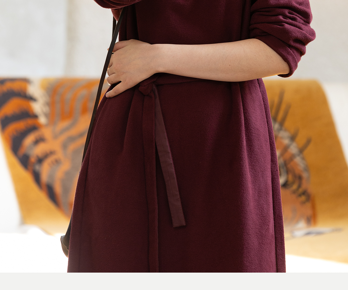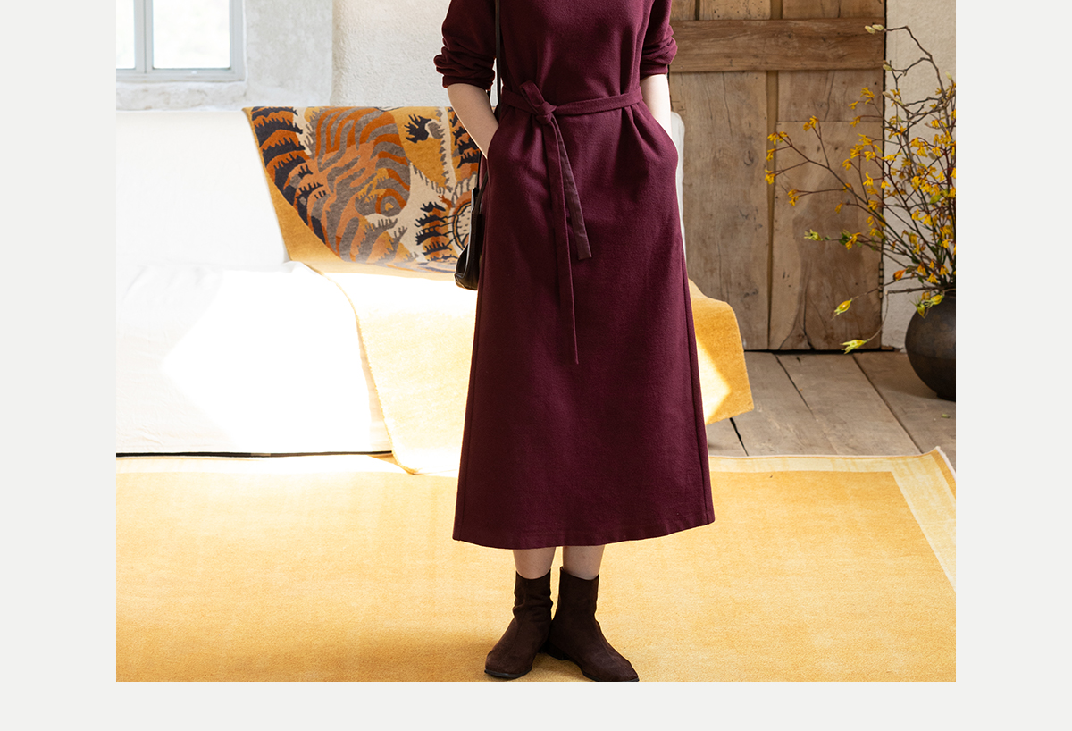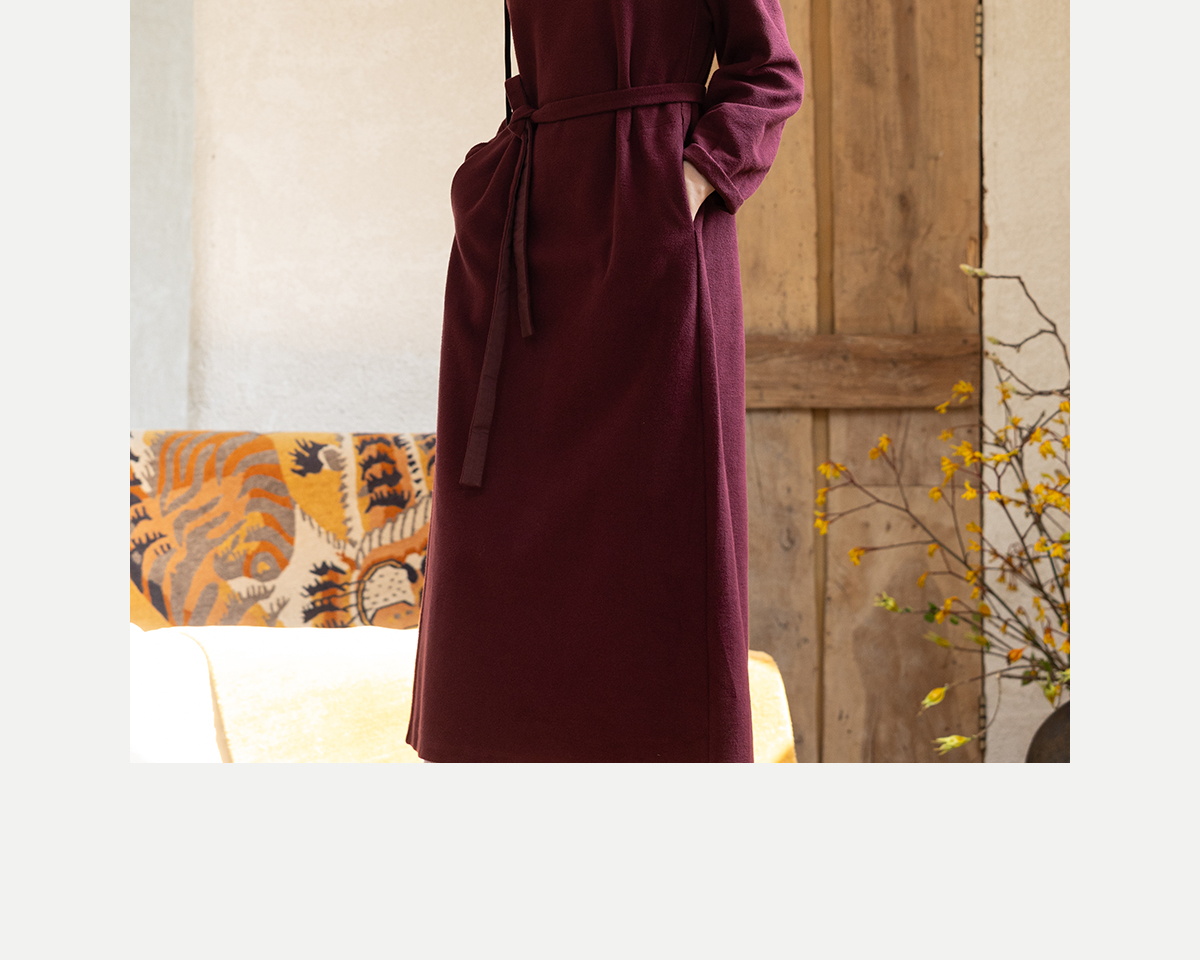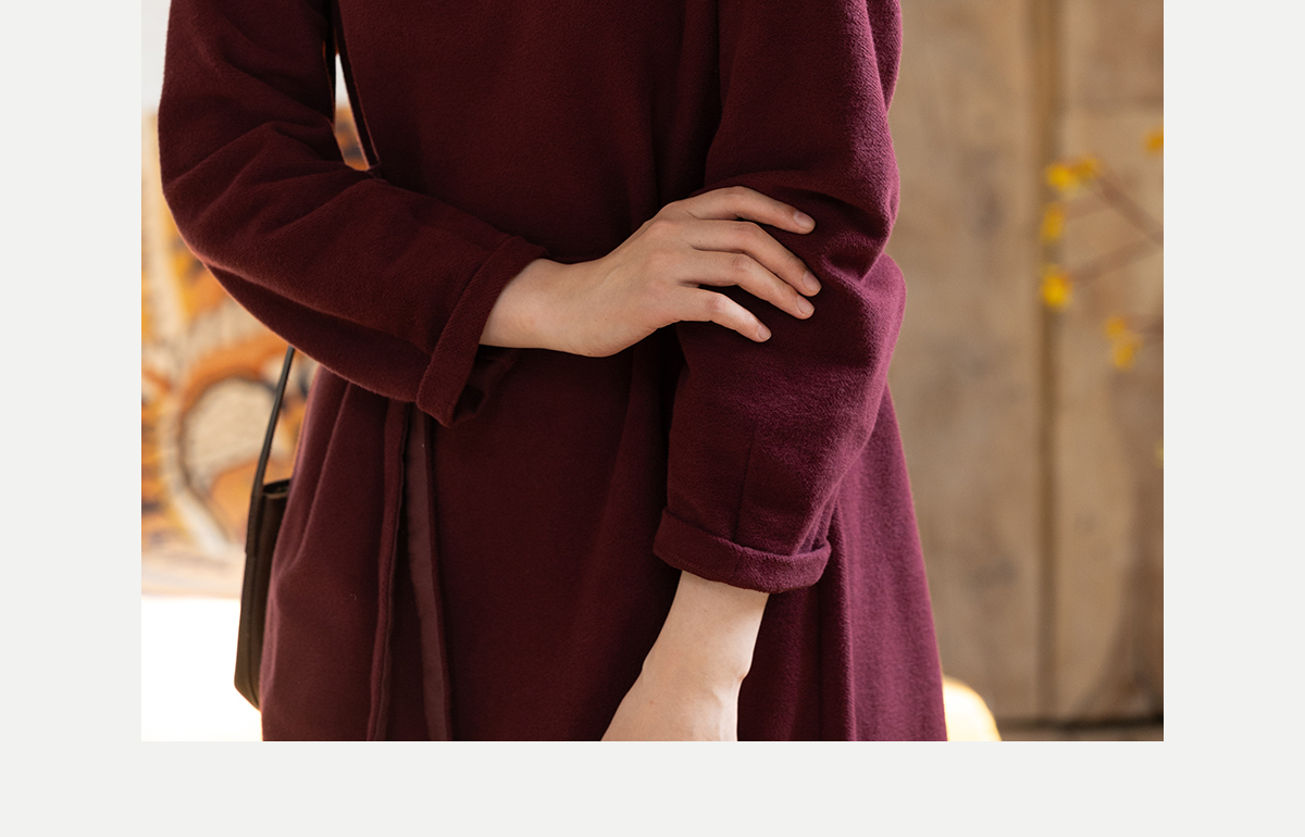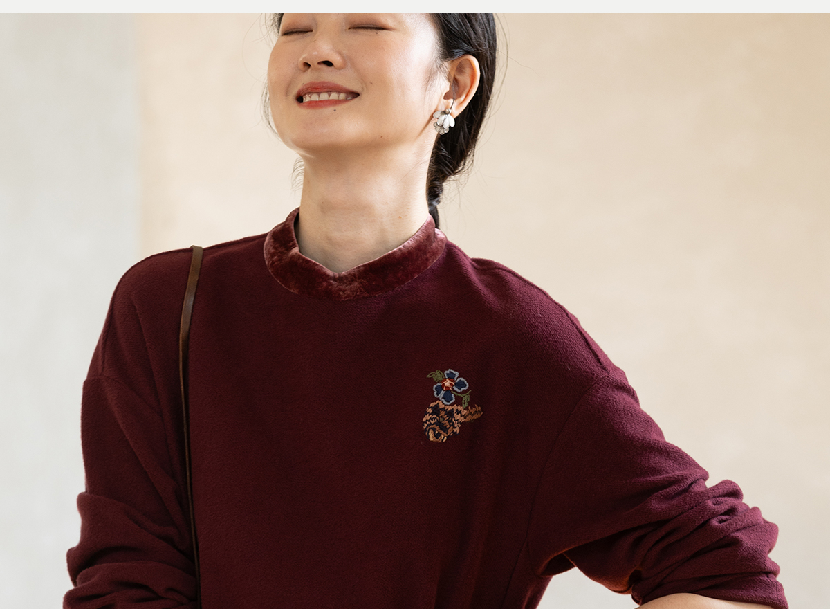 牧衣游原创 手工刺绣纯棉连衣裙冬新款宽松舒适柔软红色长裙 茶韵