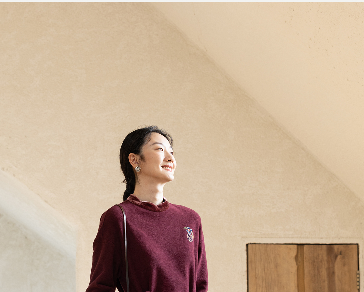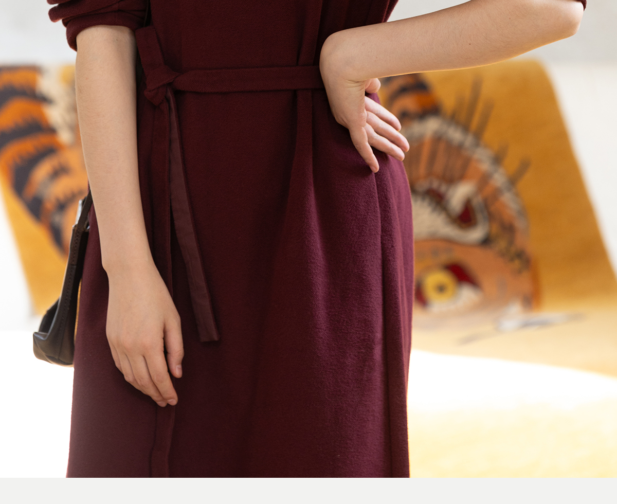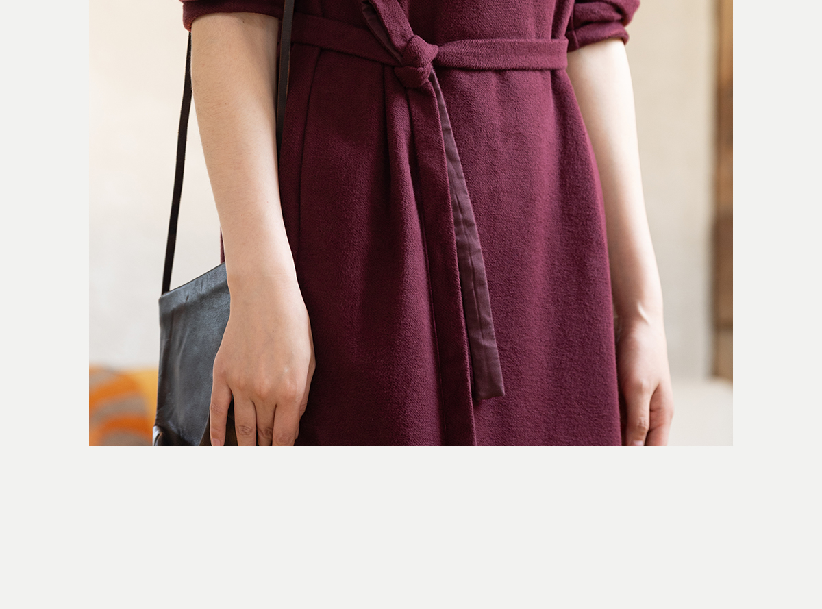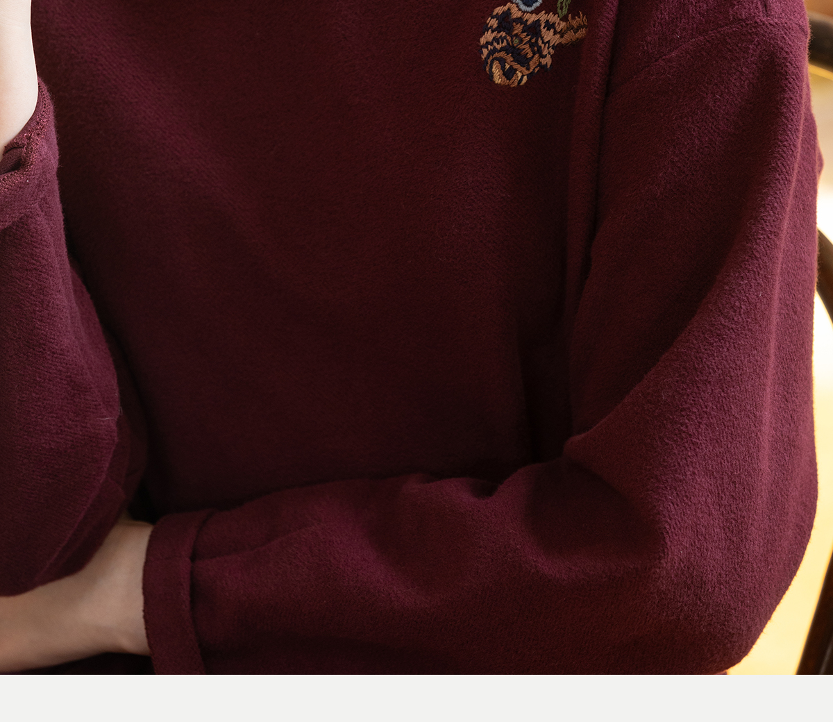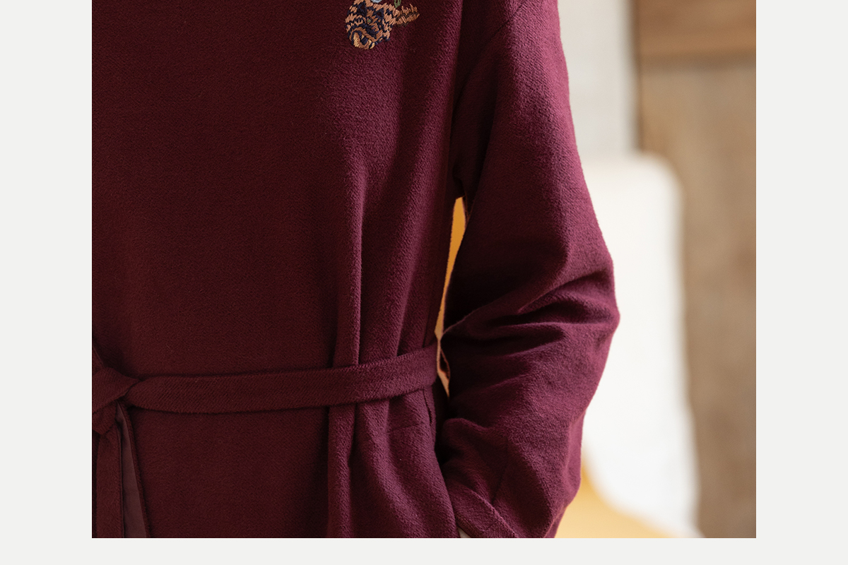 牧衣游原创 手工刺绣纯棉连衣裙冬新款宽松舒适柔软红色长裙 茶韵