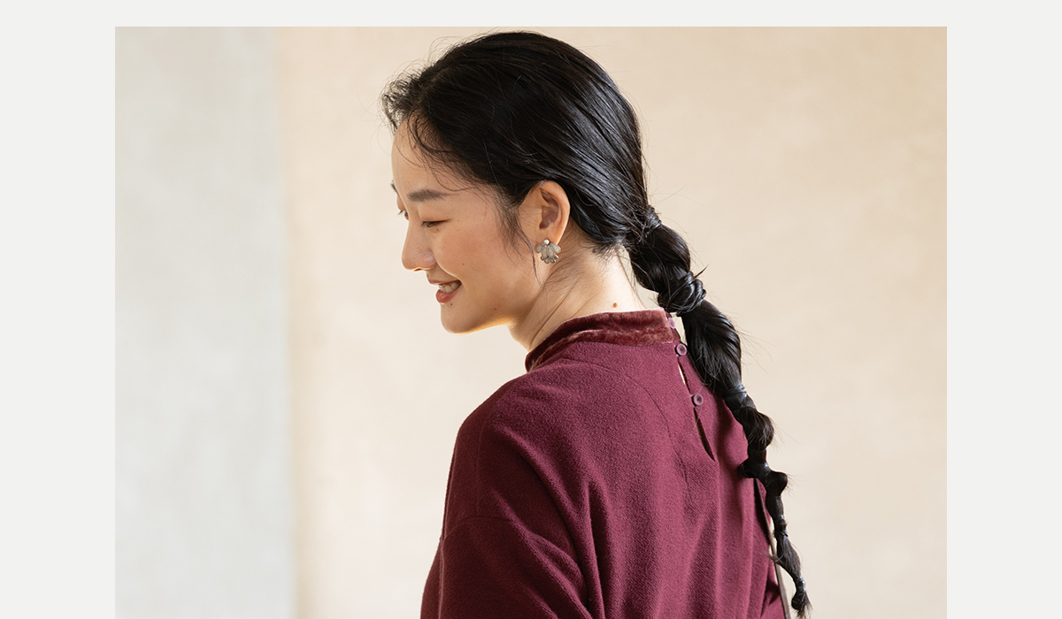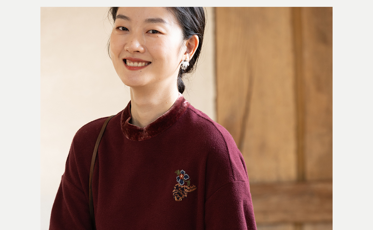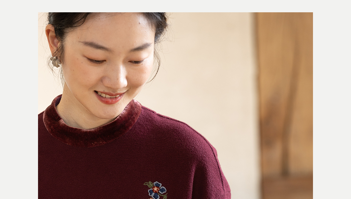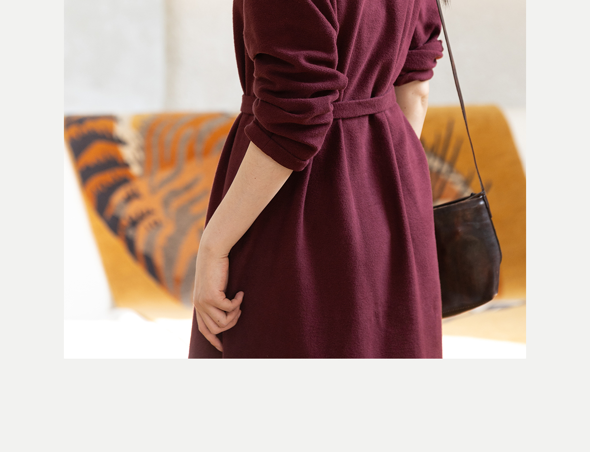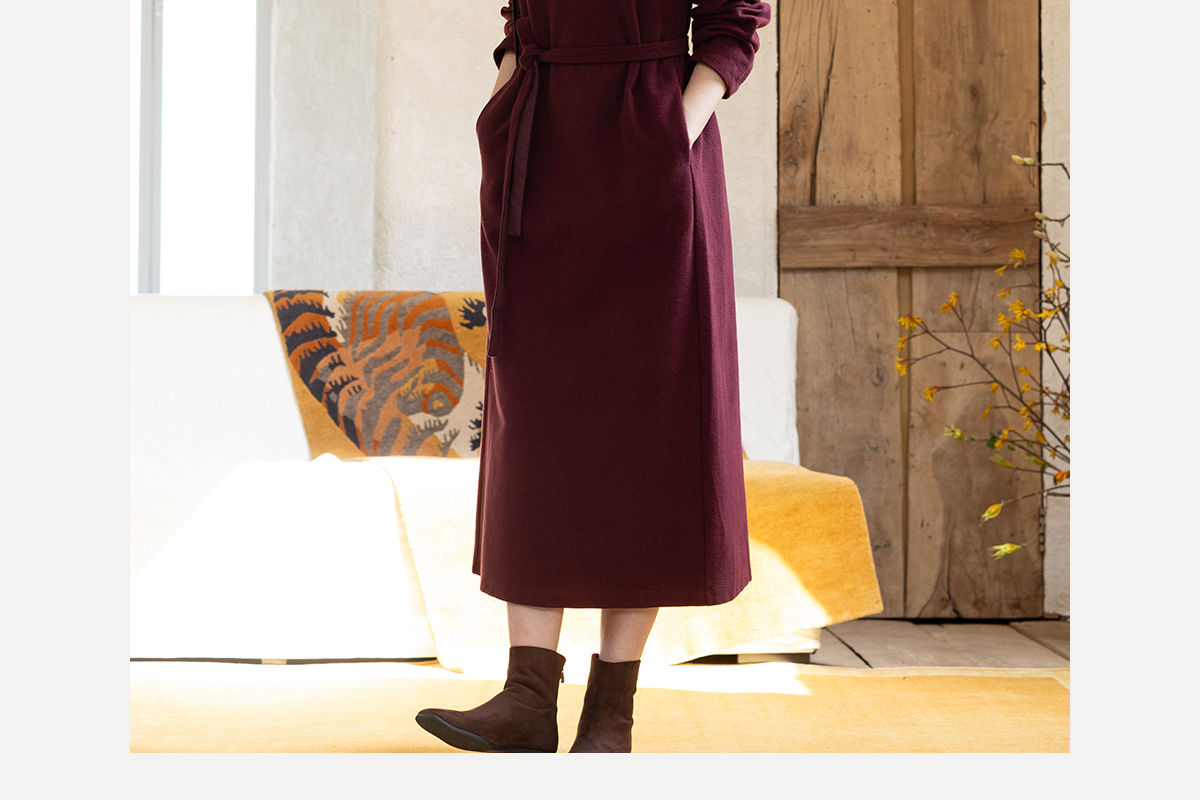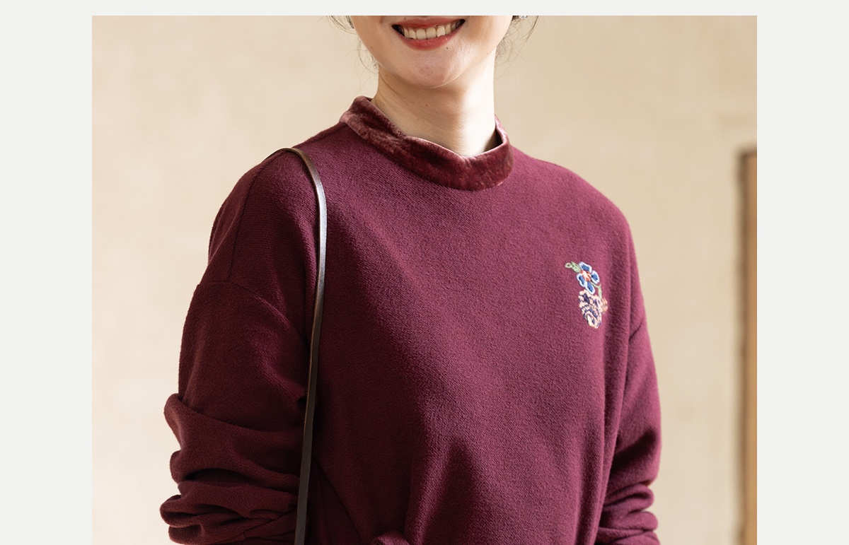 牧衣游原创 手工刺绣纯棉连衣裙冬新款宽松舒适柔软红色长裙 茶韵