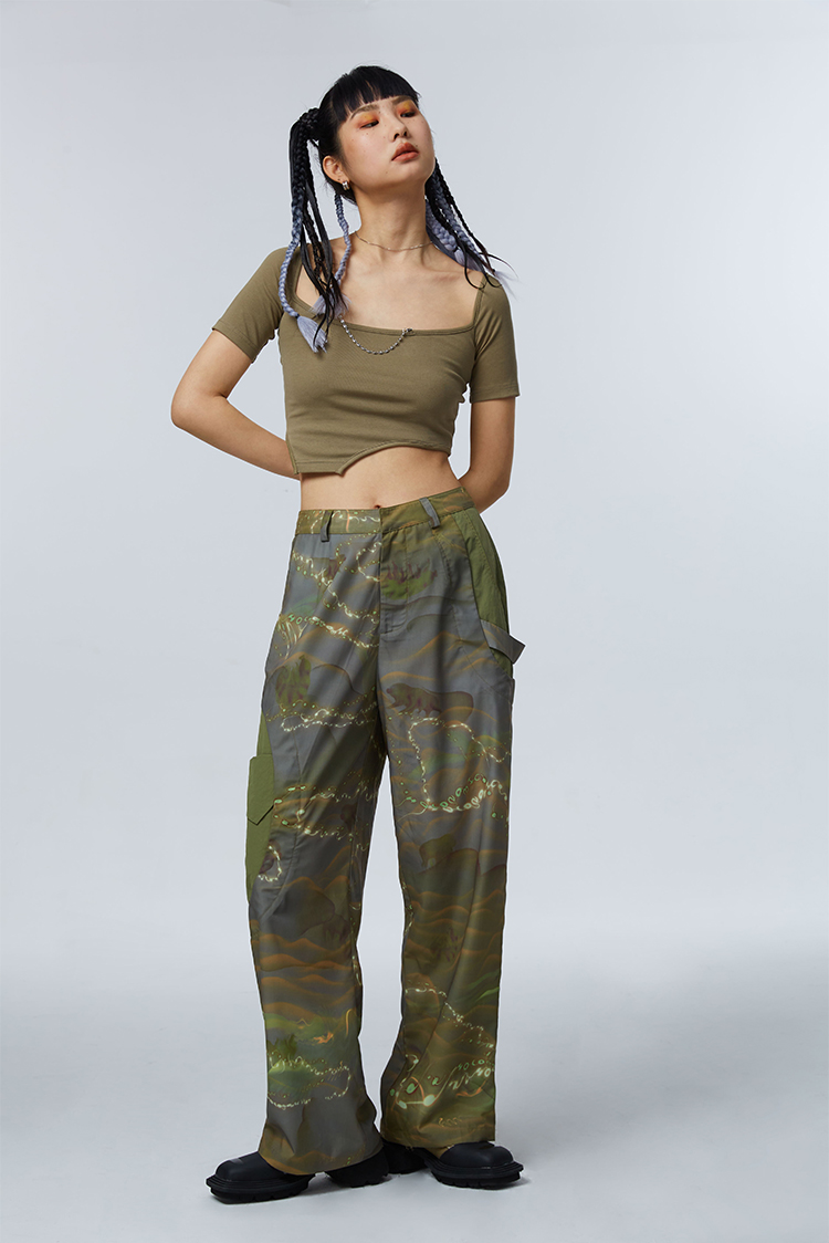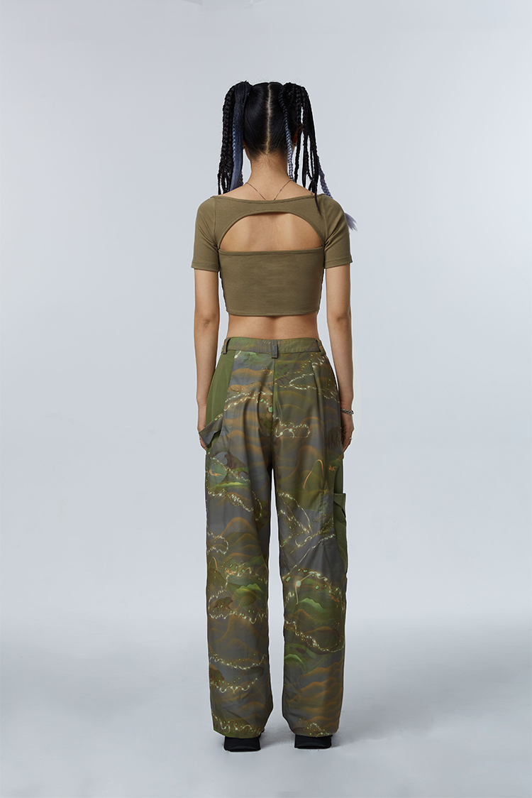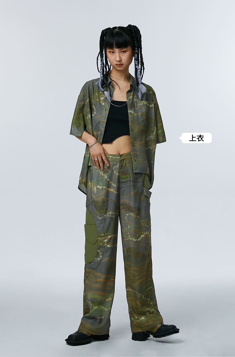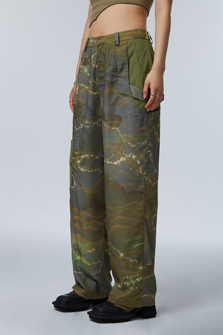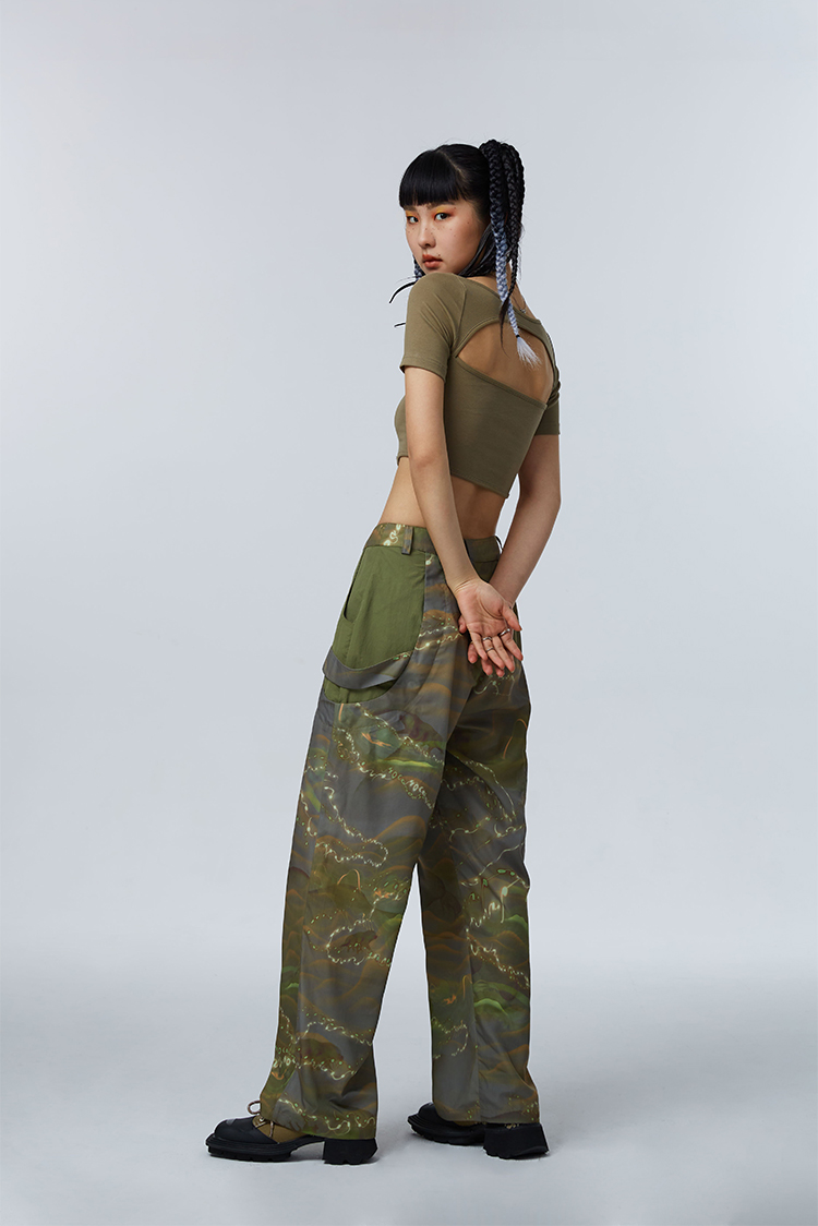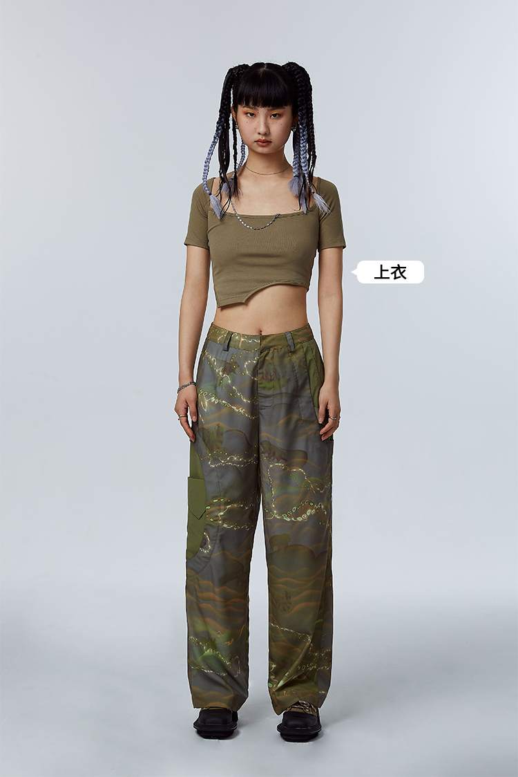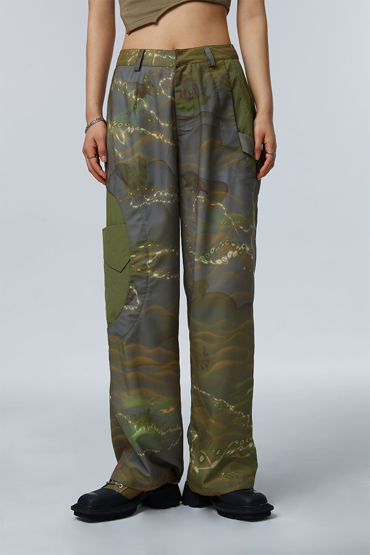 HOLONOMIC「第八大陆」原创解构拼接设计感小众宽松印花阔腿裤