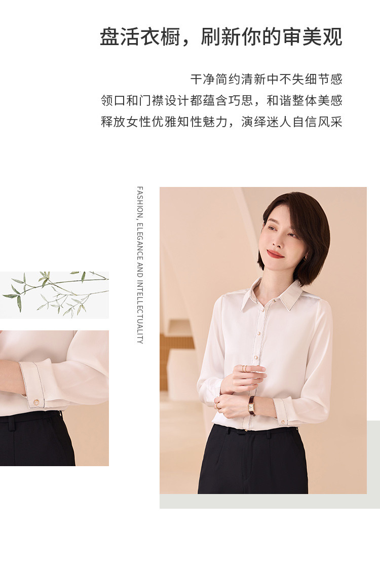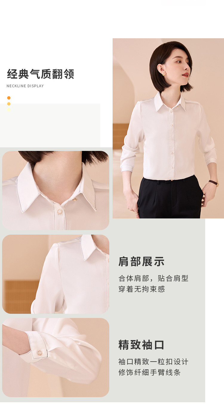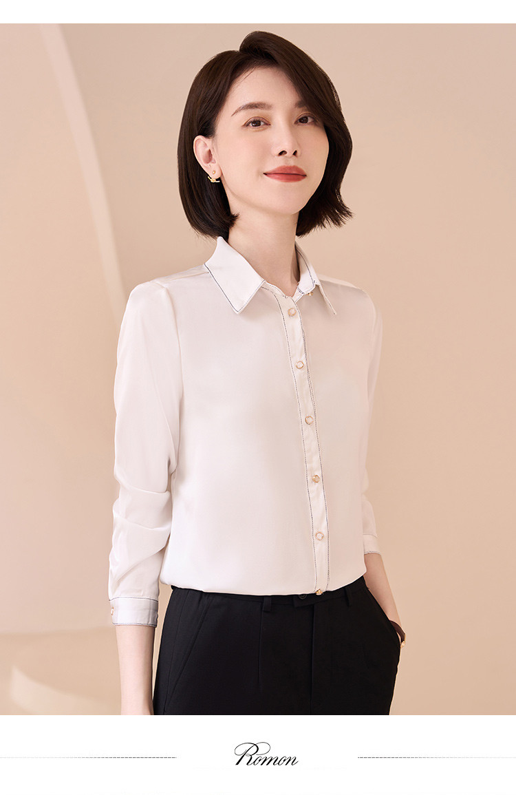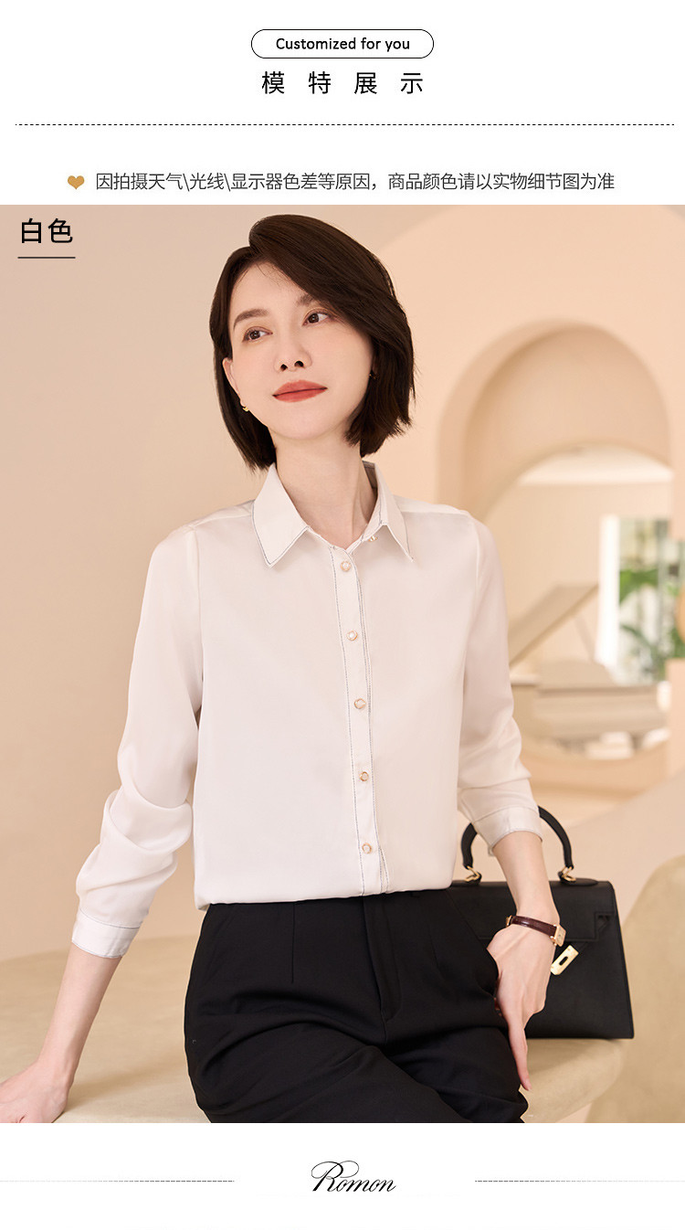 【高定款】罗蒙春秋女士长袖衬衫精致翻领商务通勤洋气质感缎面衬衣女