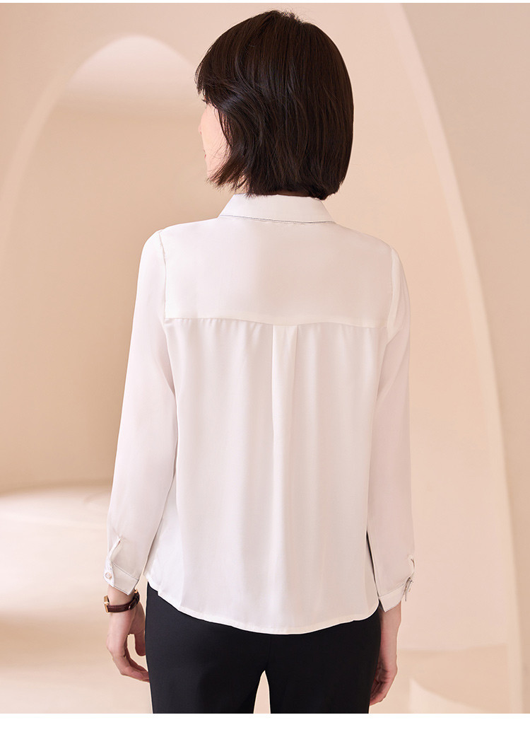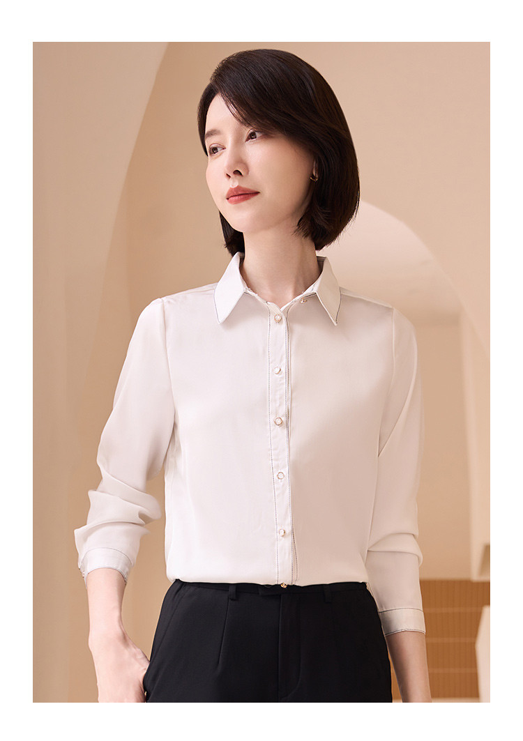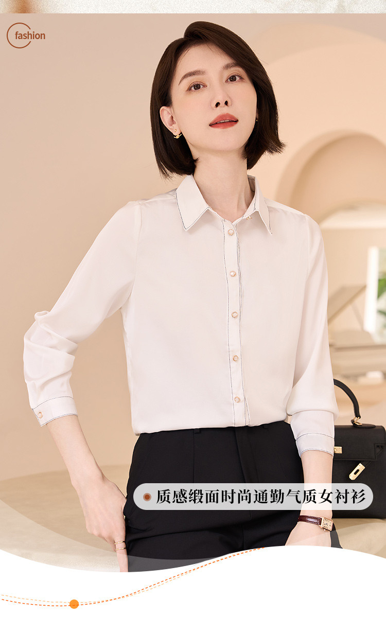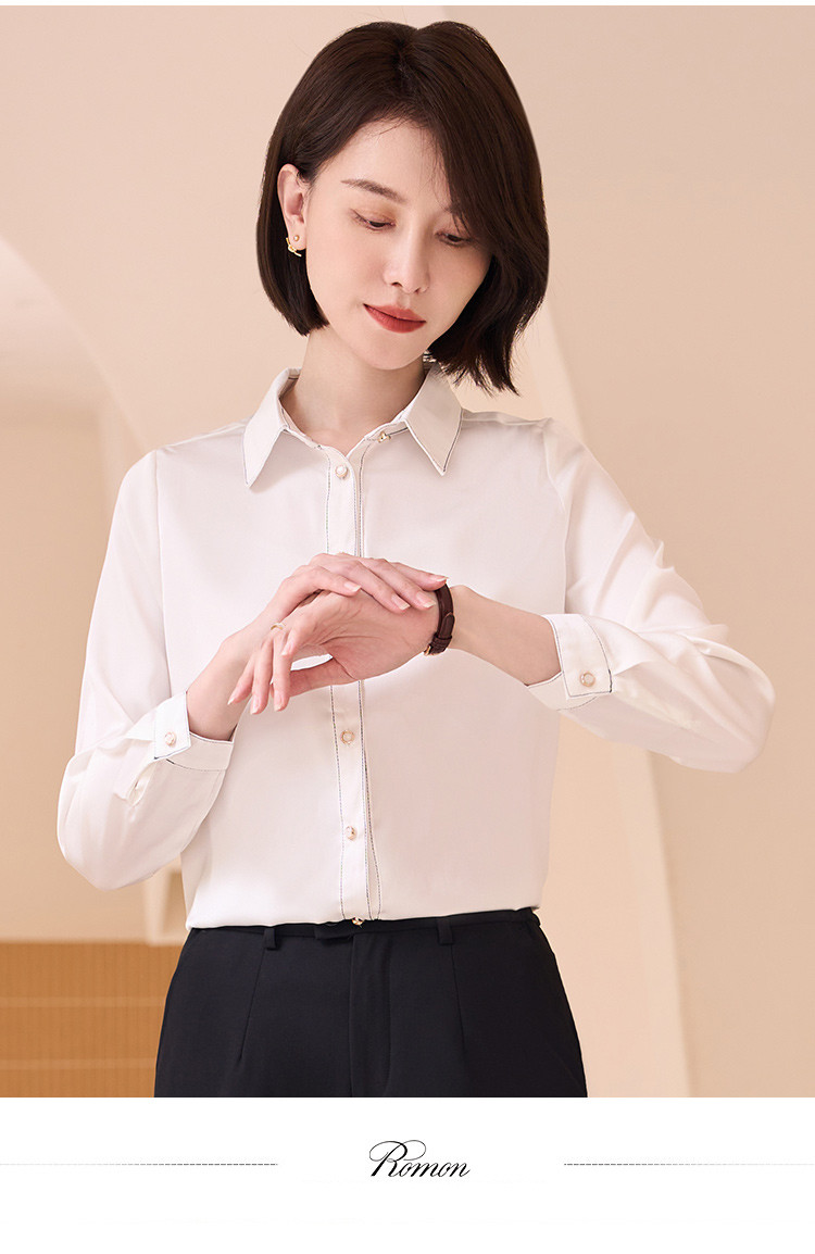 【高定款】罗蒙春秋女士长袖衬衫精致翻领商务通勤洋气质感缎面衬衣女