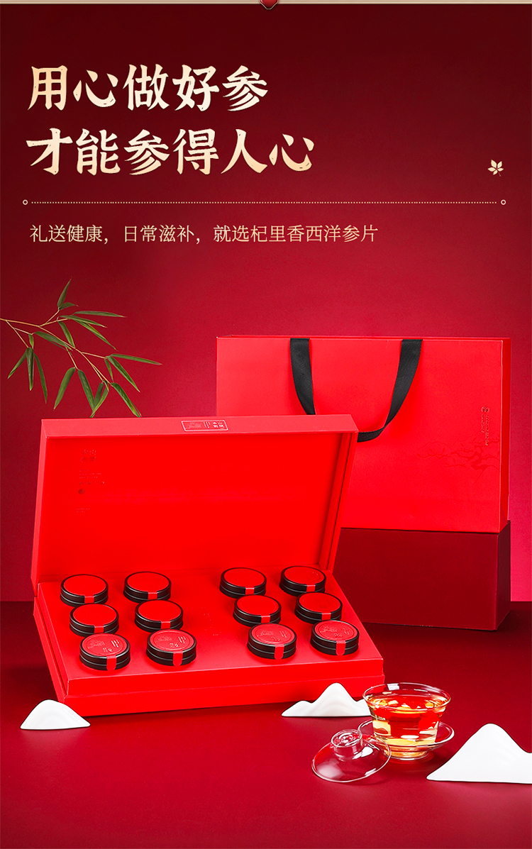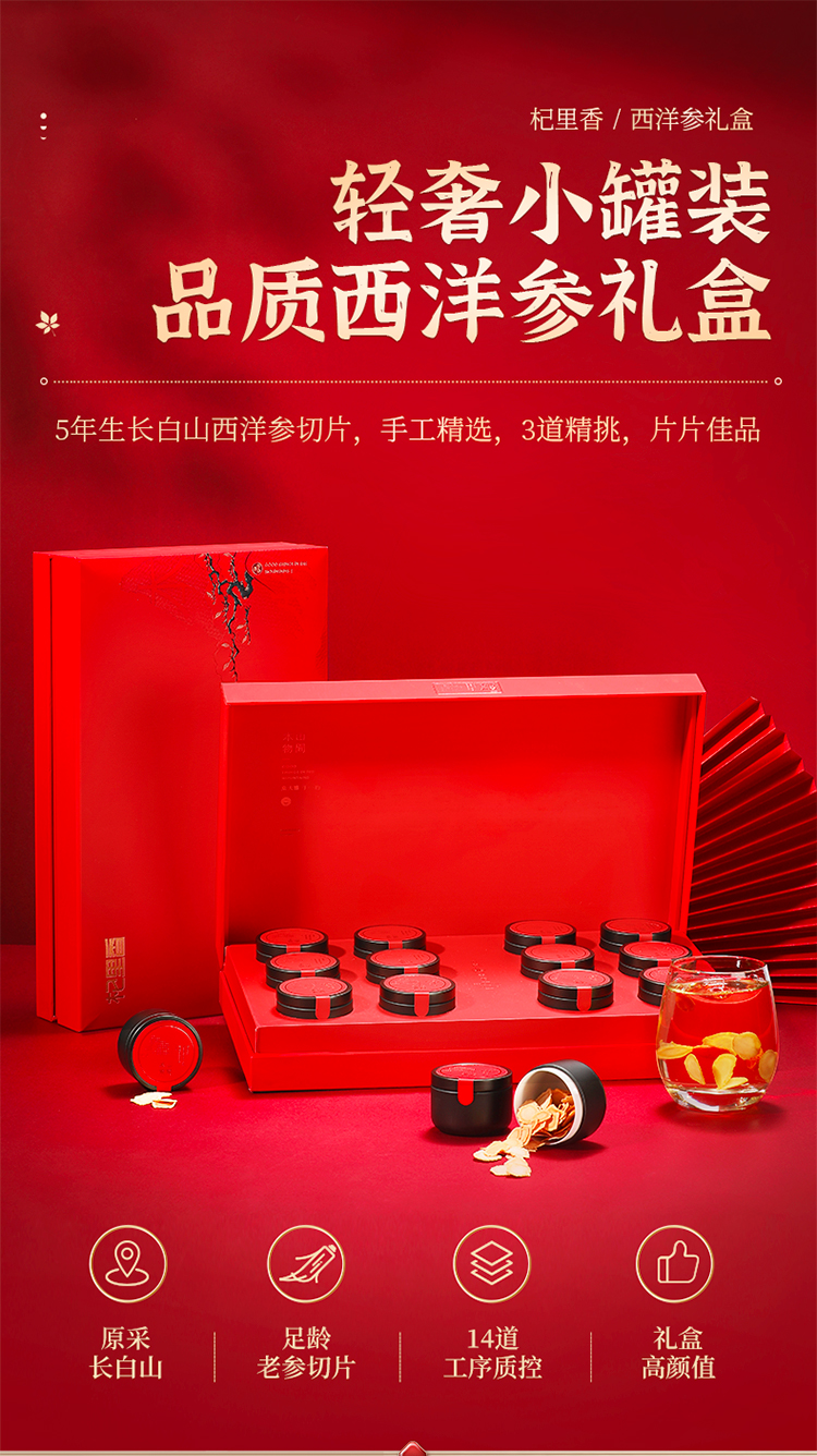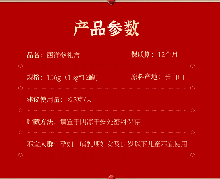 杞里香西洋参礼盒送礼切片小罐装花旗参片官方旗舰店156g(13g*12罐)14-16mm