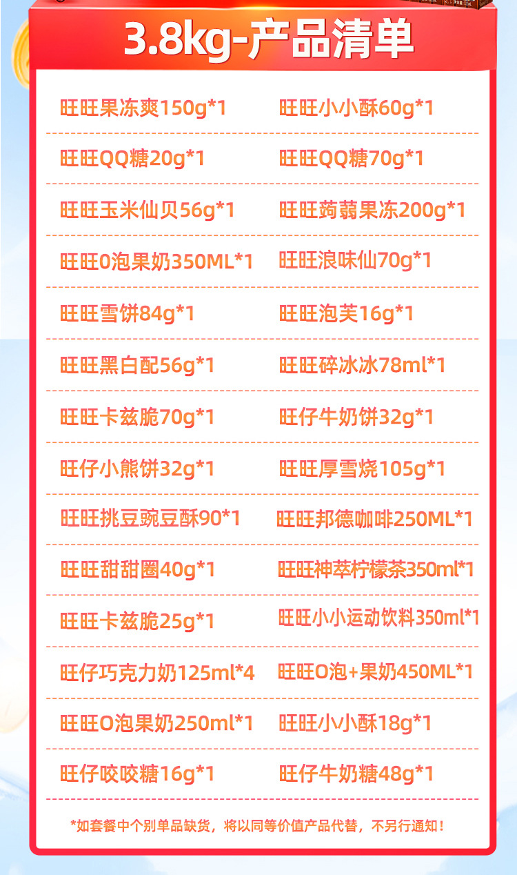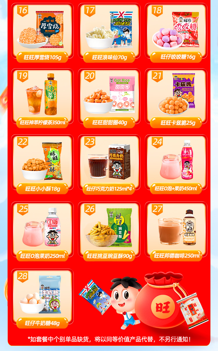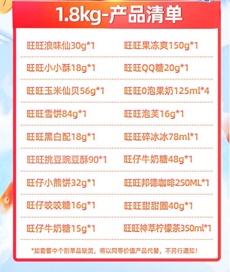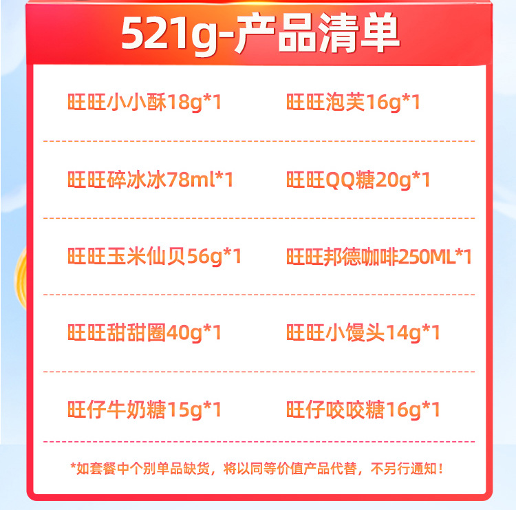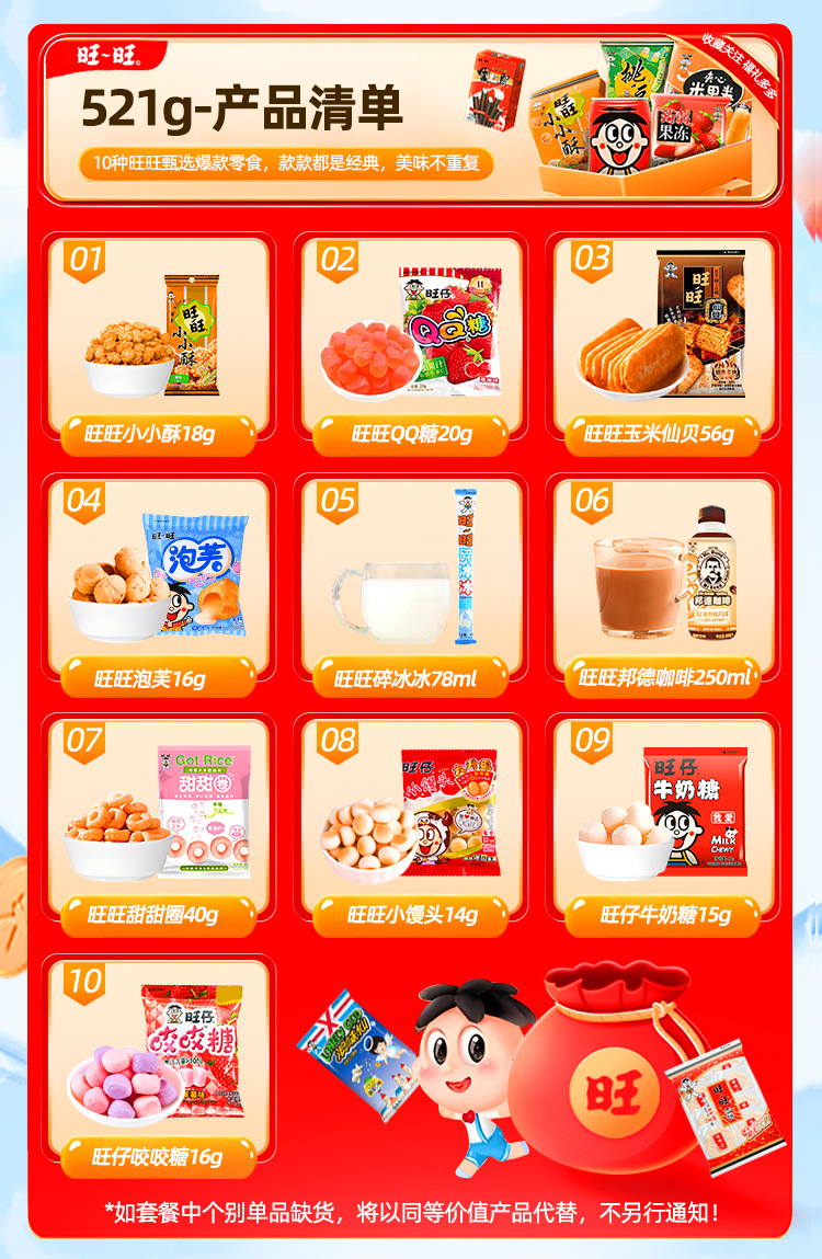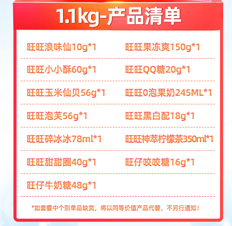 【情感传达,年味十足】新年旺气大飞越,超巨零食伴你过。牛奶雪饼甜心意,旺旺巨型零食大礼包521g,旺仔牛奶雪饼休闲小吃,超值巨型零食大礼包,520过年送女友必备!乐享无价爱的礼盒。