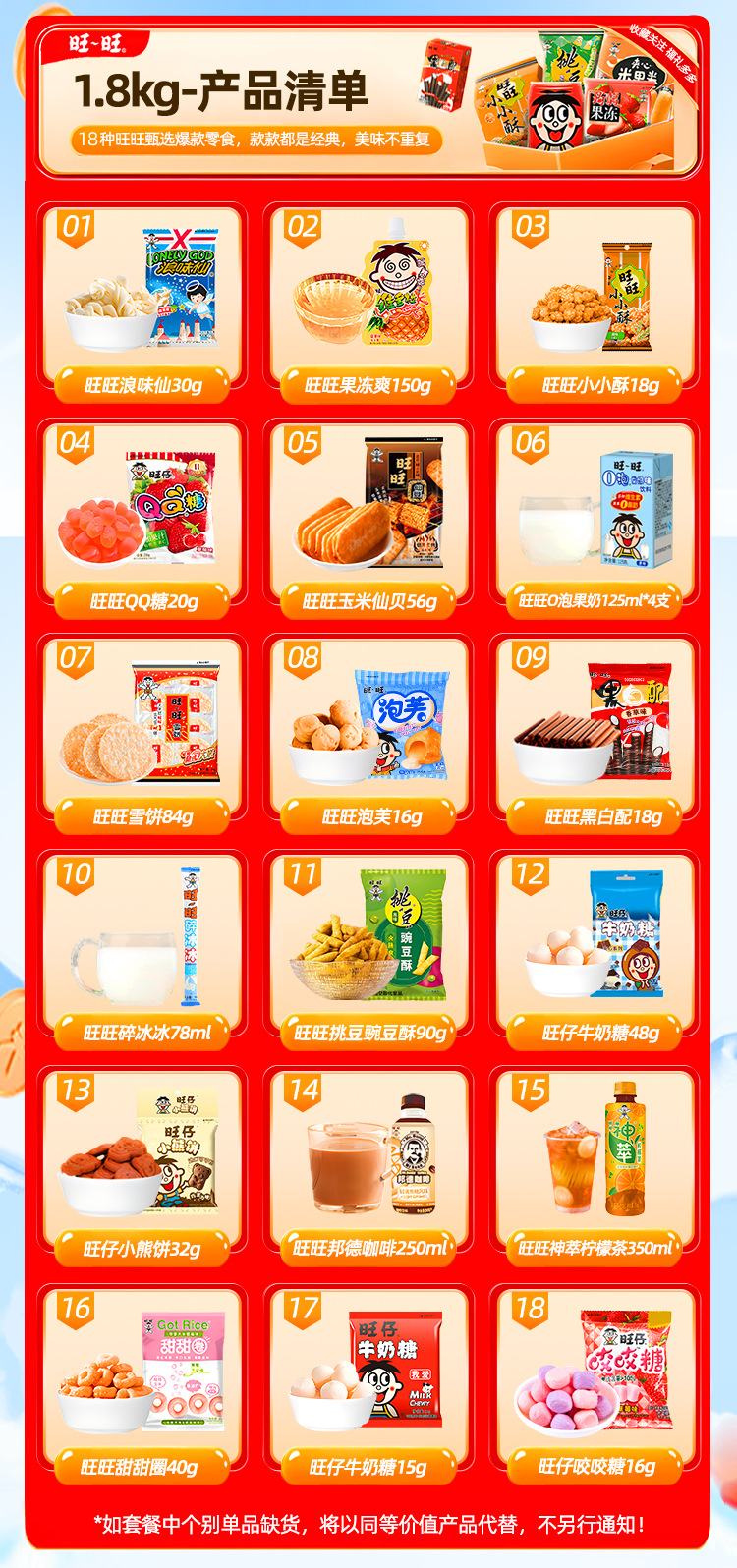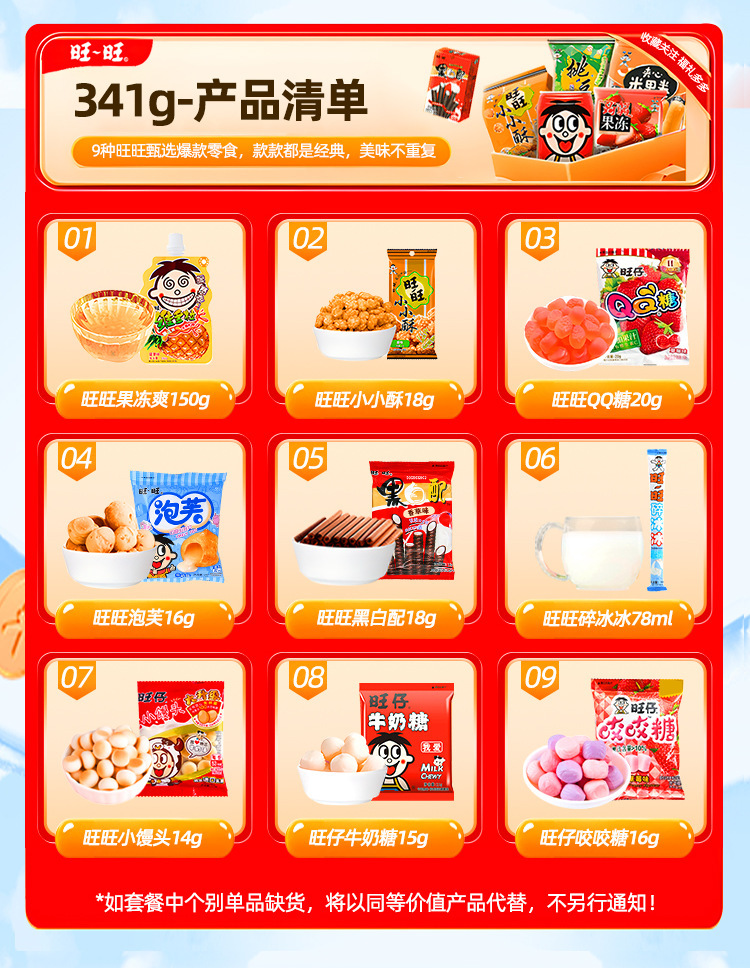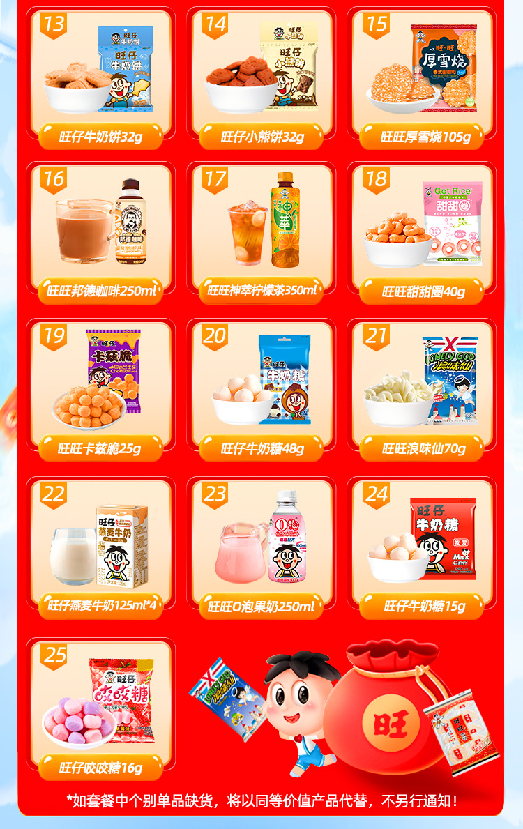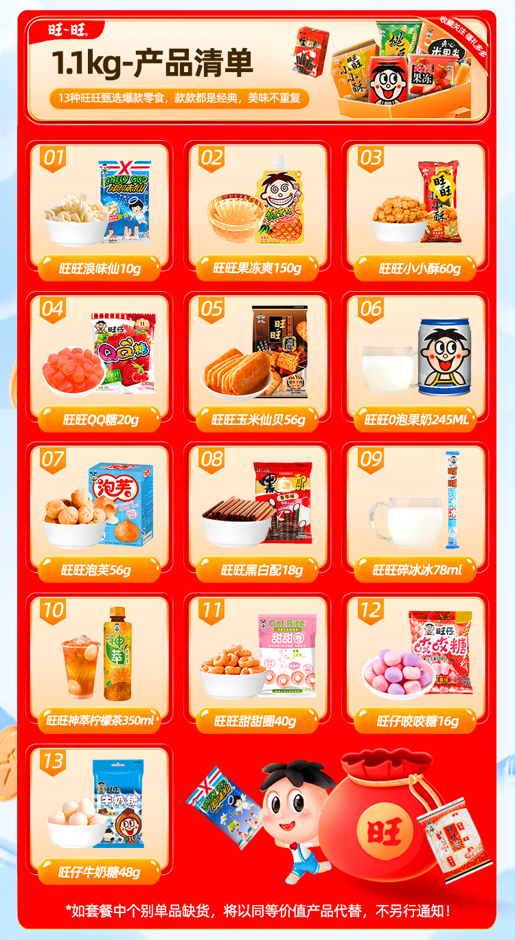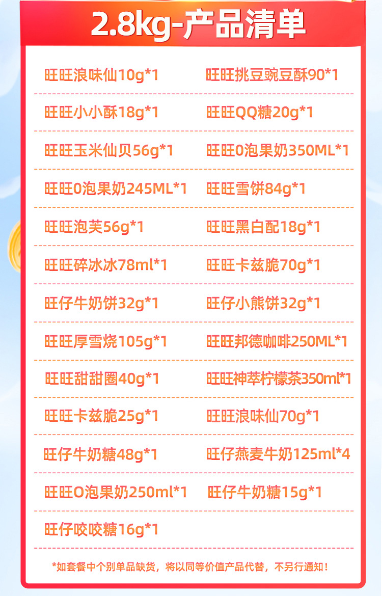 【情感传达,年味十足】新年旺气大飞越,超巨零食伴你过。牛奶雪饼甜心意,旺旺巨型零食大礼包521g,旺仔牛奶雪饼休闲小吃,超值巨型零食大礼包,520过年送女友必备!乐享无价爱的礼盒。