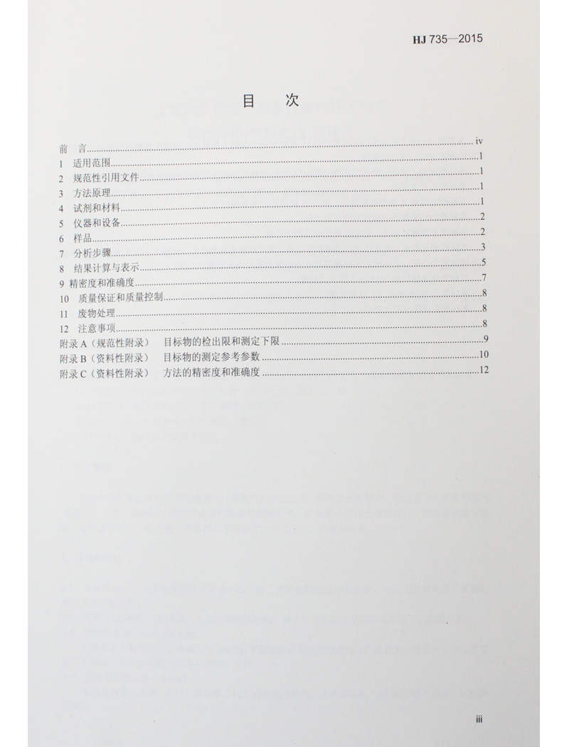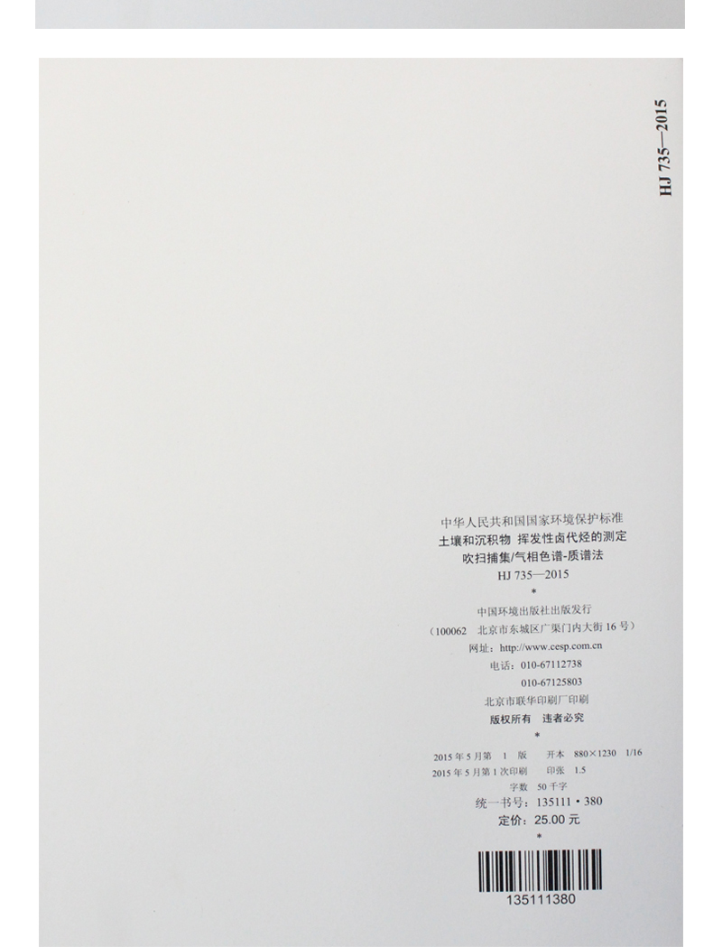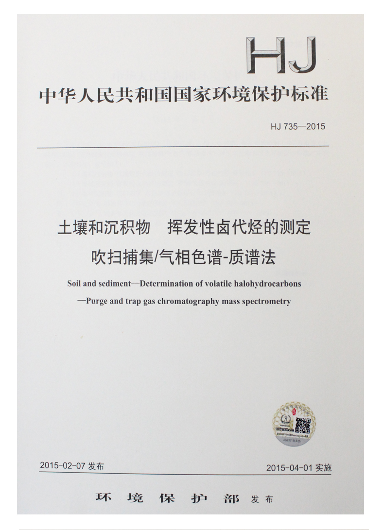 HJ 735-2015 土壤和沉积物 挥发性卤代烃的测定 吹扫捕集/气相色谱-质谱法 国标环境保护135111380