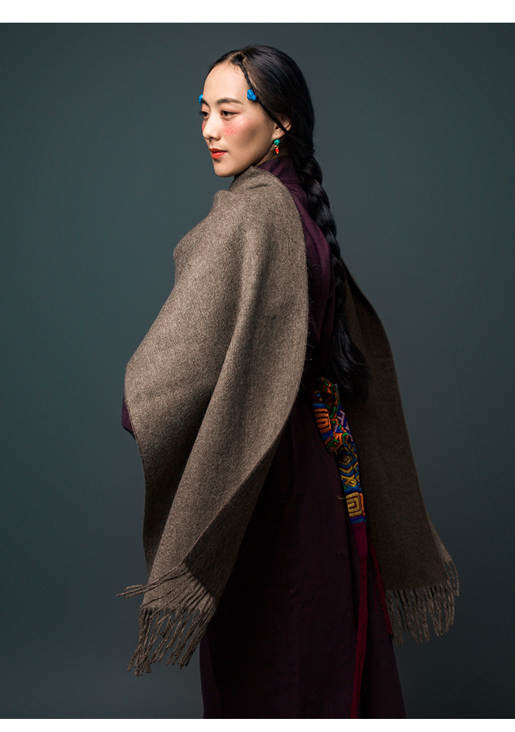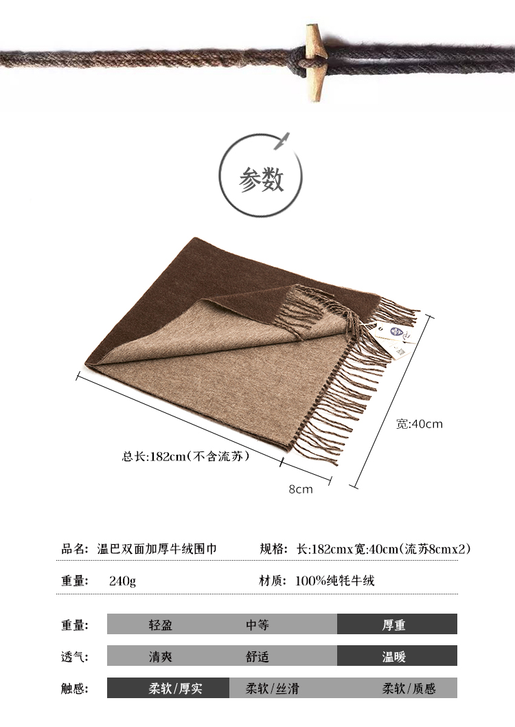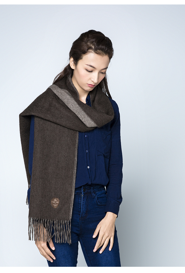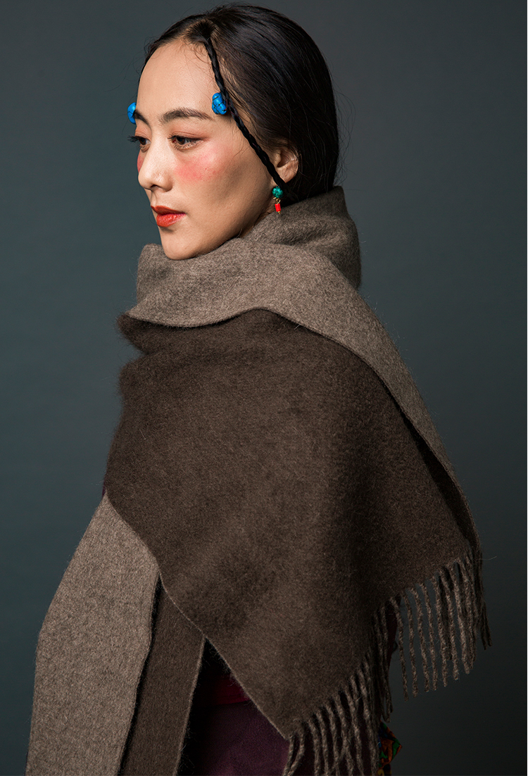 【牦牛本色】100%牦牛绒双色双面围巾(深牦牛原色+浅牦牛原色)藏式喜马拉雅风