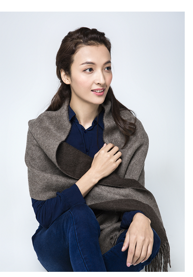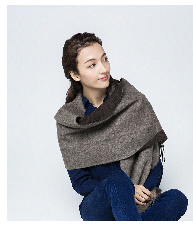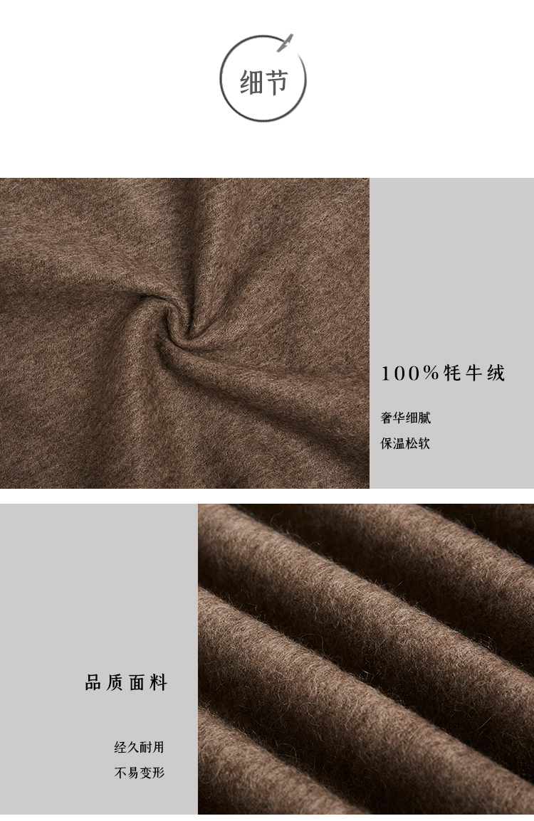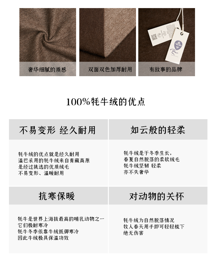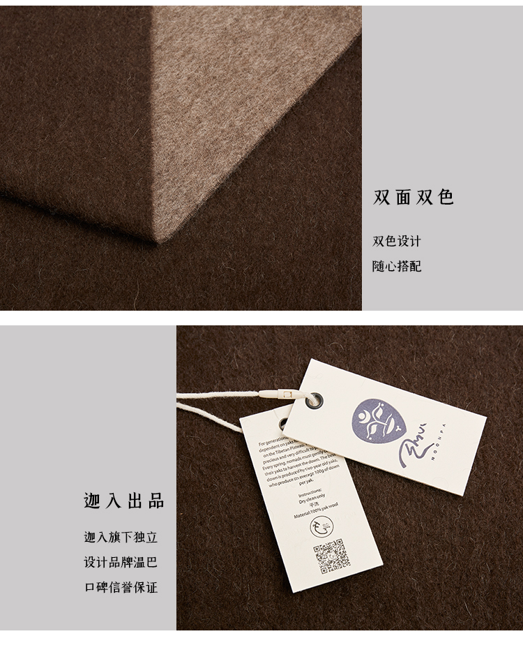 【牦牛本色】100%牦牛绒双色双面围巾(深牦牛原色+浅牦牛原色)藏式喜马拉雅风