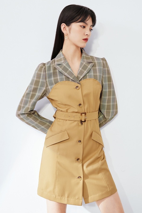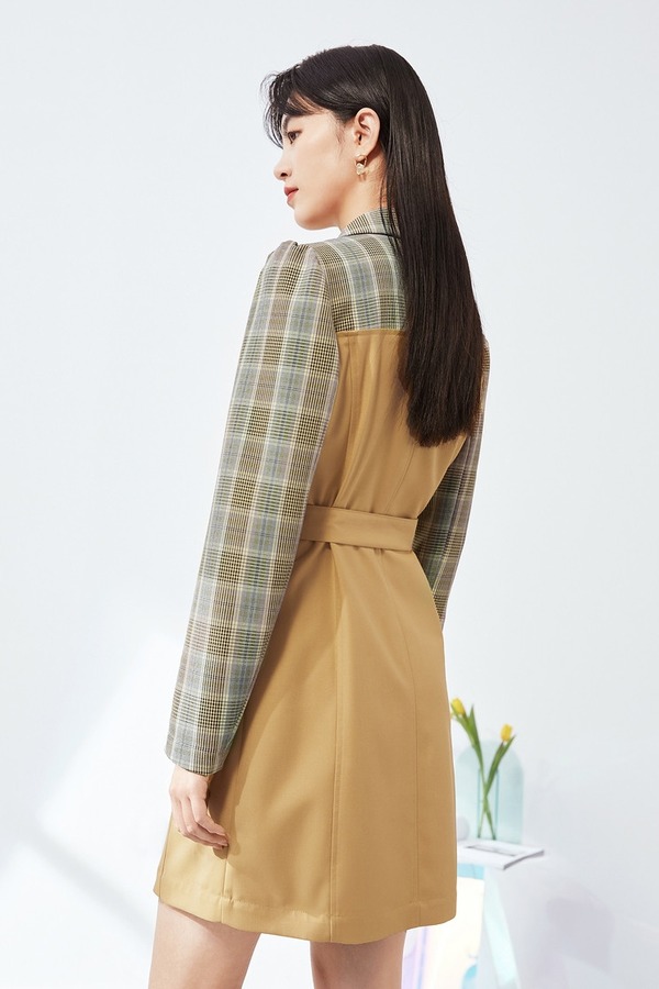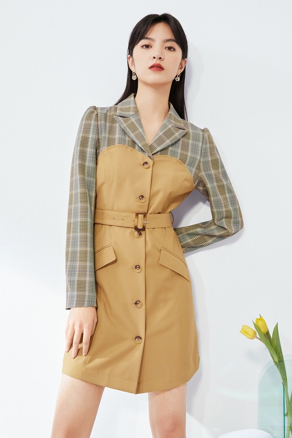 Eifini伊芙丽 法式复古小众收腰显瘦气质西装连衣裙 15325
